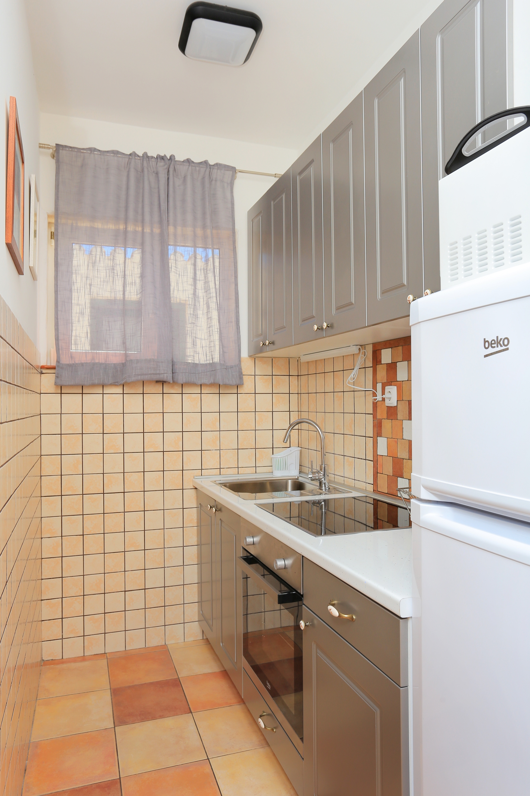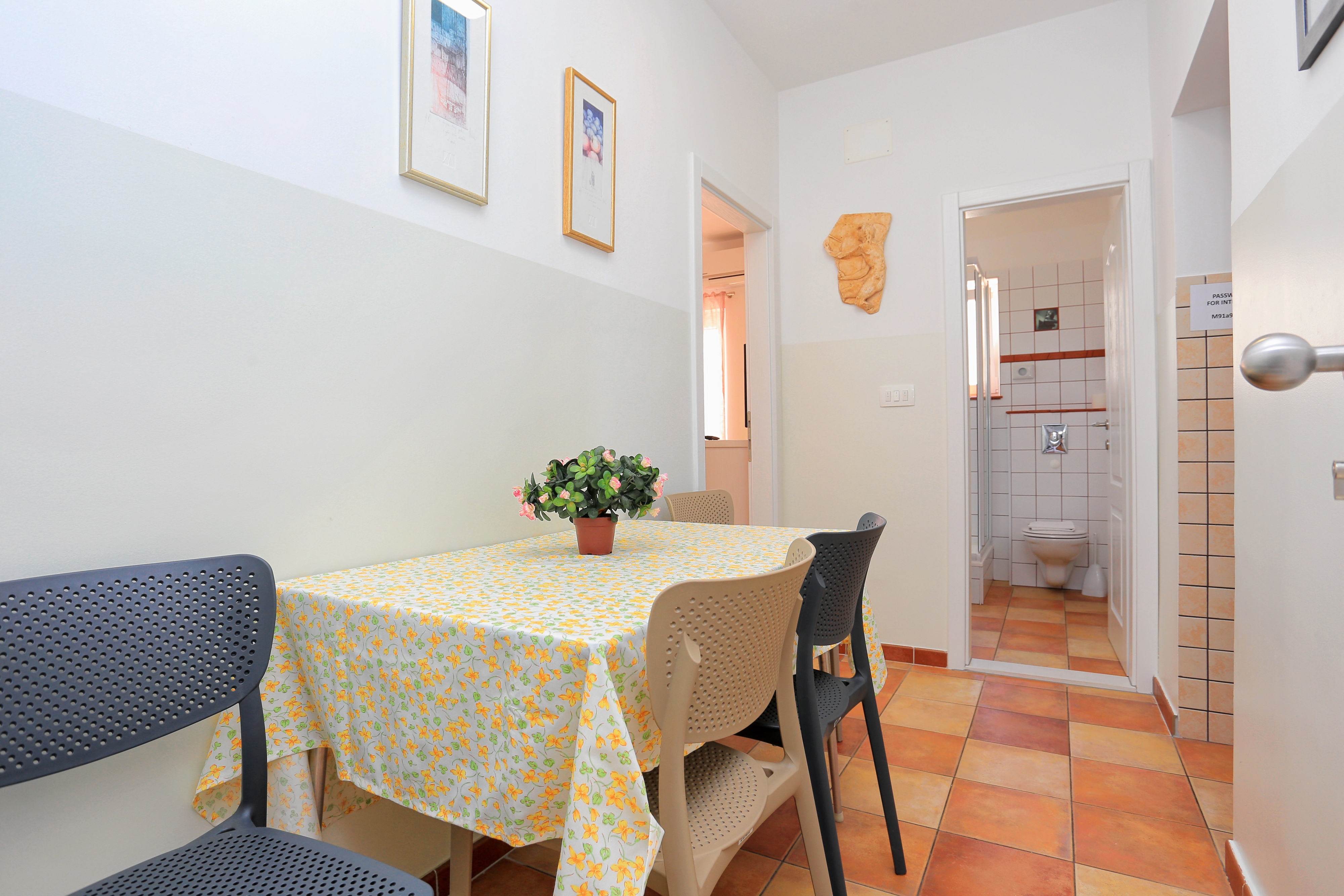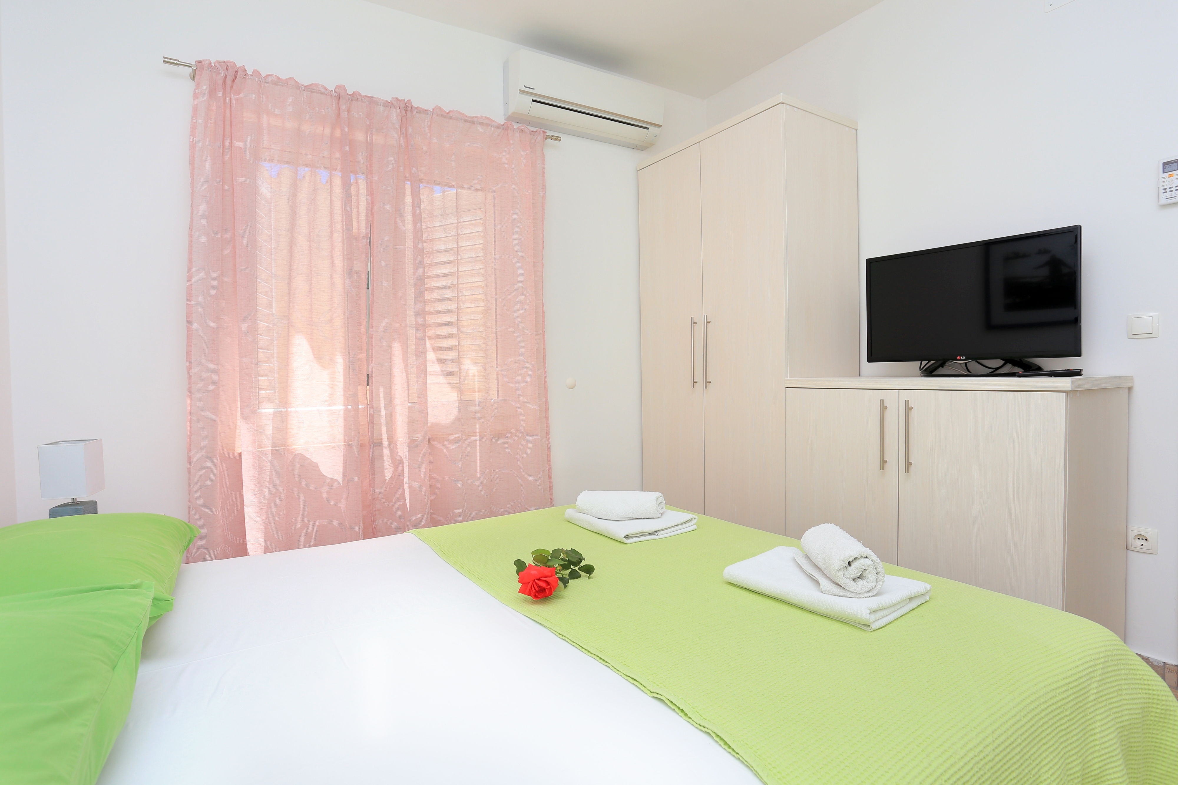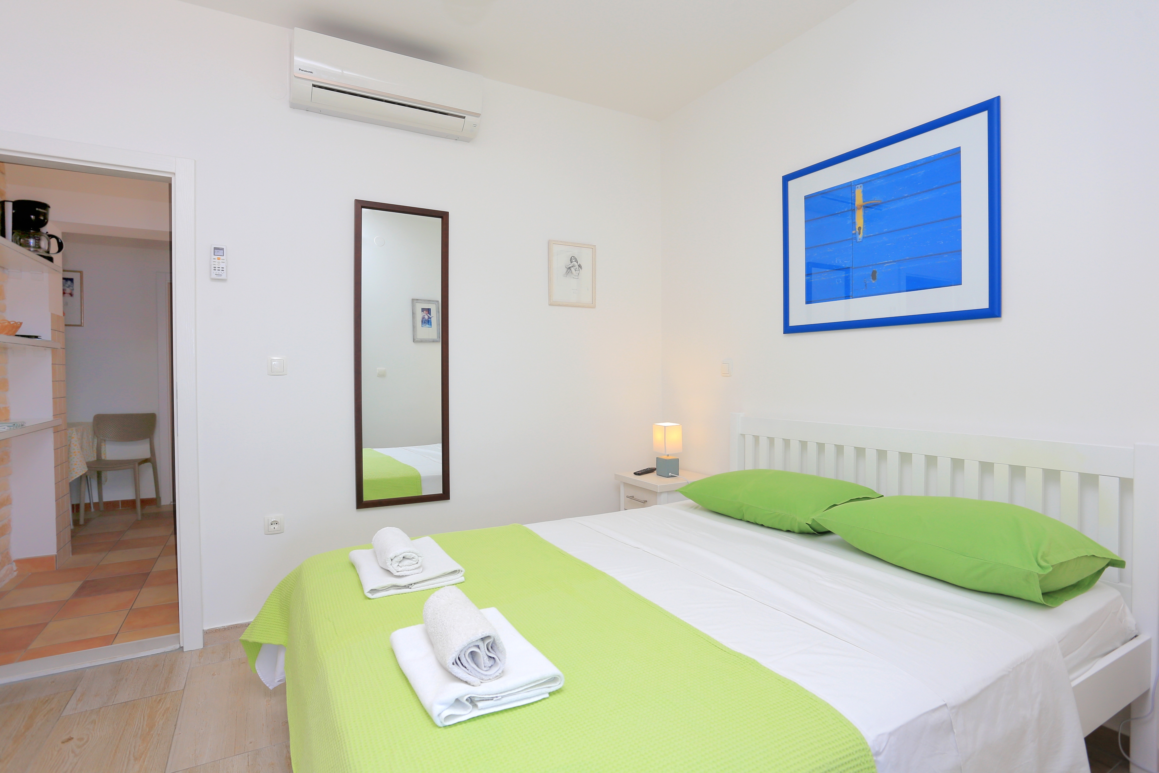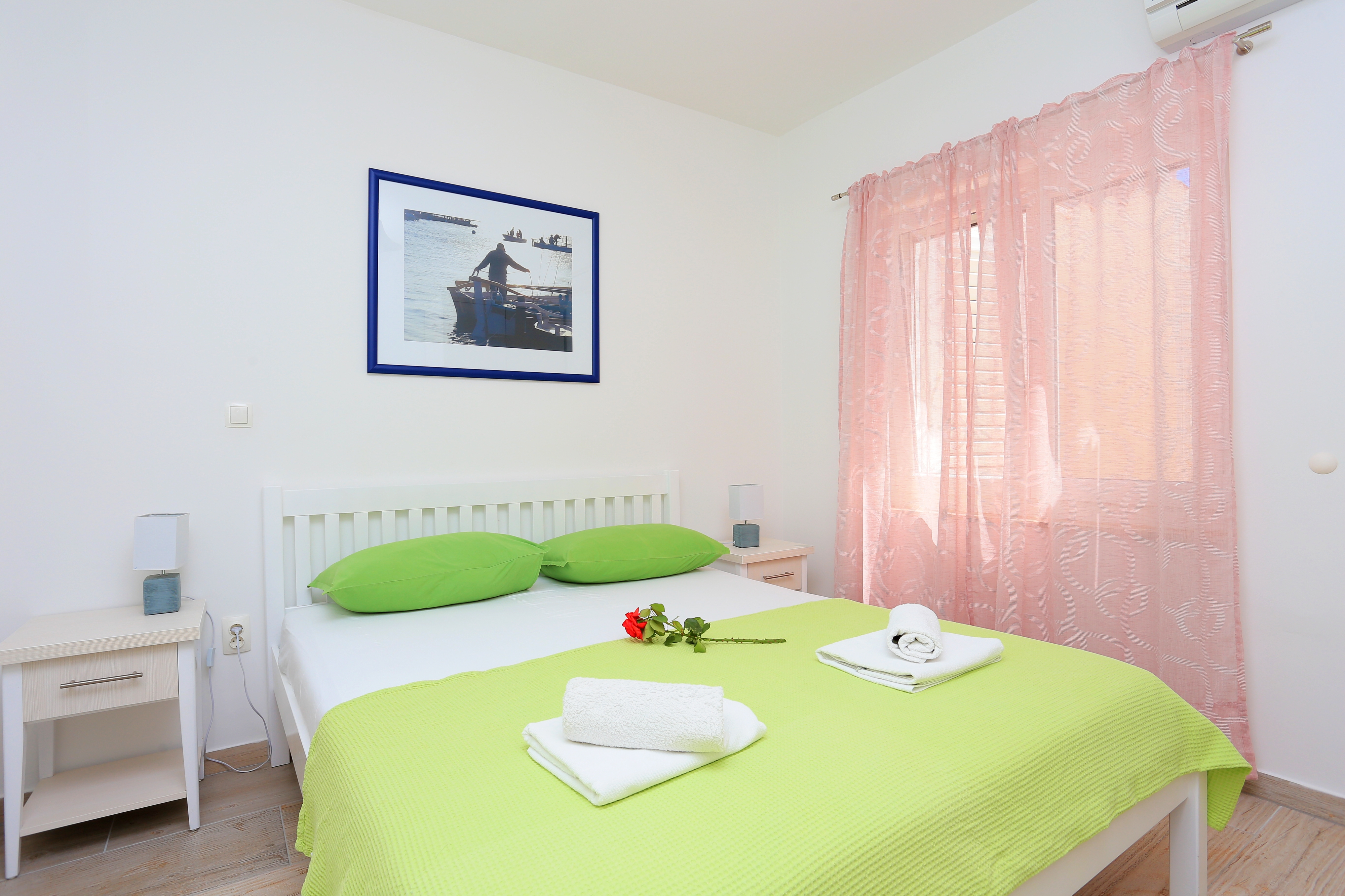 Apartment can accommodate 4 guests. Beds are situated in 2 sleeping rooms, within 40m2. Guests can use a private terrace to enjoy the warm summer evenings. The apartment offers the sea view. INCLUDED IN THE PRICE: tourist tax, final cleaning, air-conditioning, parking, internet, boat mooring, baby cot, iron, ironing board, hairdryer, sunshade, sunchairs. OBLIGATORY ADDITIONAL COSTS: short stay fee (surcharge depending on a number of booked nights: 30% - 1, 20% - 2, 10% - 3). The availability of additional services for your chosen dates of stay, as well as their prices (if none are listed) must be checked ahead of time. Any additional services not shown in the price calculation are payable directly to the property owner and only if used by the visitor. Discounts to the base price: free day 28=25 (for stays of 28 days or more, we give you 3 days free of charge for the stay until 31122026).
