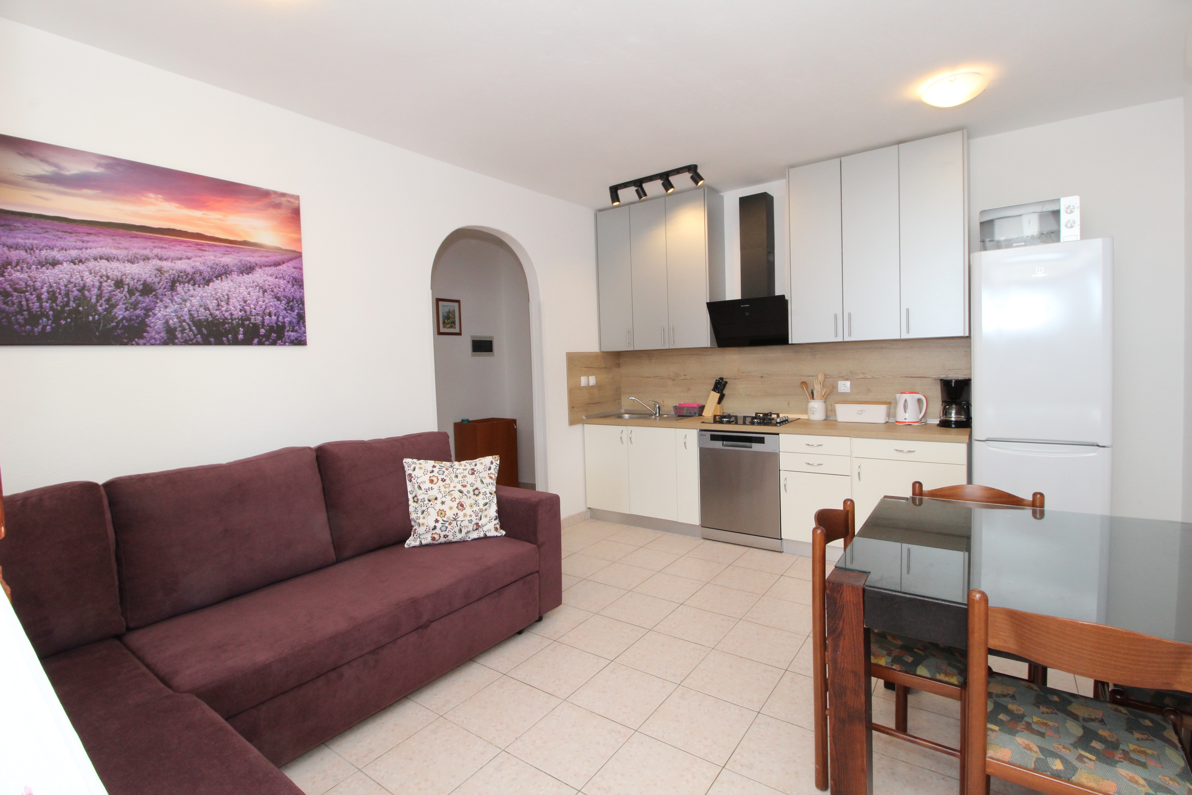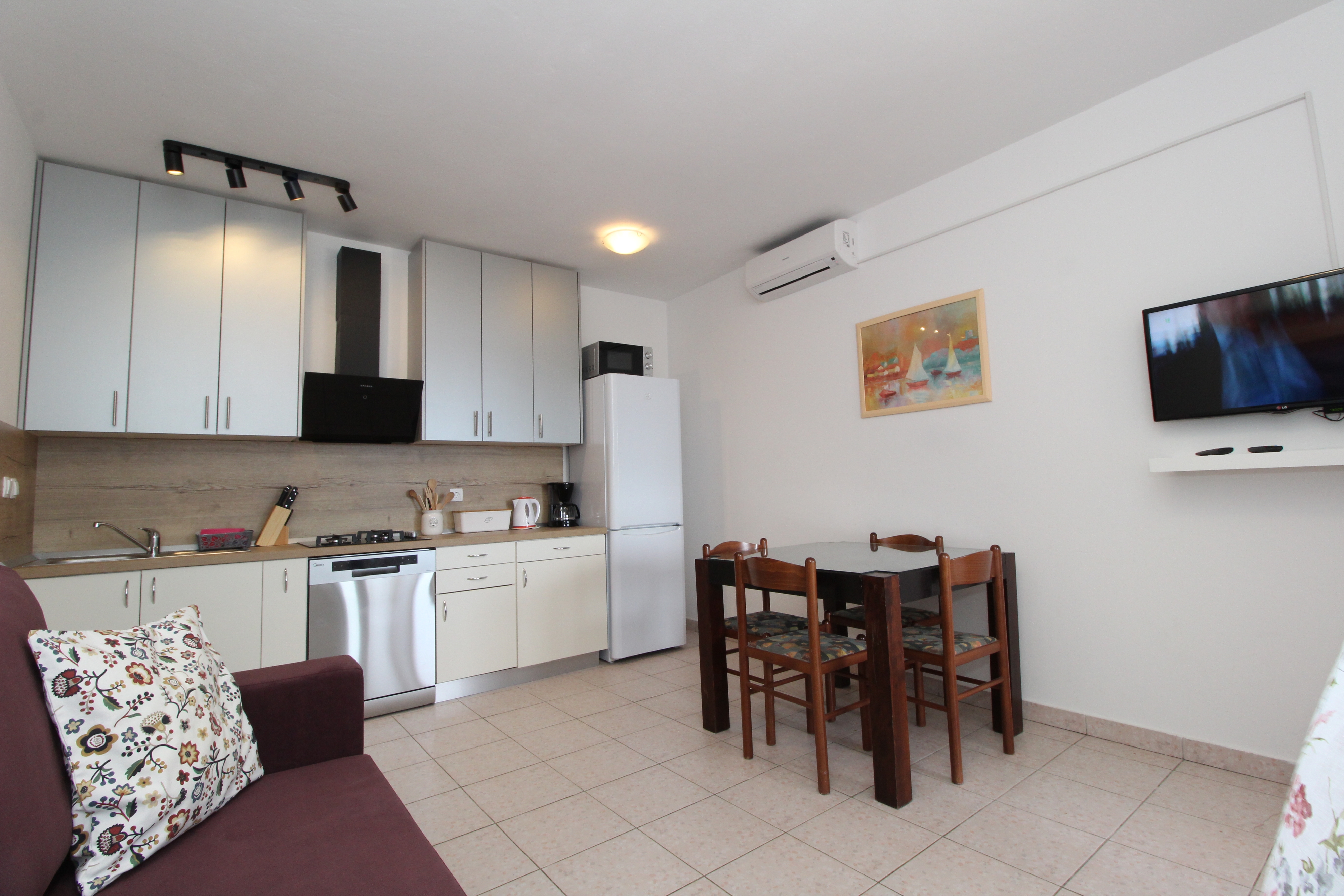 Apartment can accommodate 4 guests. Beds are situated in 1 sleeping rooms, but also in the living room, within 37m2. Guests can use a private terrace to enjoy the warm summer evenings. The apartment offers the sea view. Food can be prepared using barbecue which is shared with other guests too. INCLUDED IN THE PRICE: tourist tax, final cleaning, air-conditioning, parking, internet, laundry, baby cot, iron, ironing board, hairdryer. OBLIGATORY ADDITIONAL COSTS: short stay fee (surcharge depending on a number of booked nights: 30% - 1, 20% - 2, 10% - 3). OPTIONAL ADDITIONAL COSTS: boat (€200.00 per night). The availability of additional services for your chosen dates of stay, as well as their prices (if none are listed) must be checked ahead of time. Any additional services not shown in the price calculation are payable directly to the property owner and only if used by the visitor.