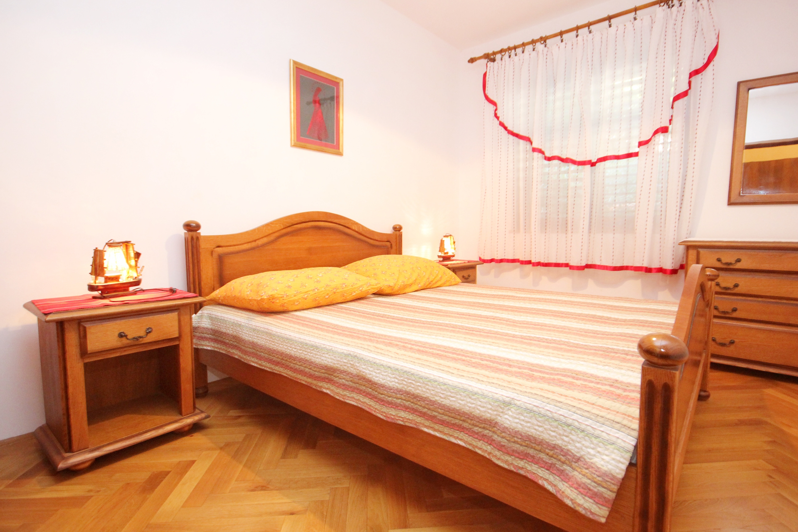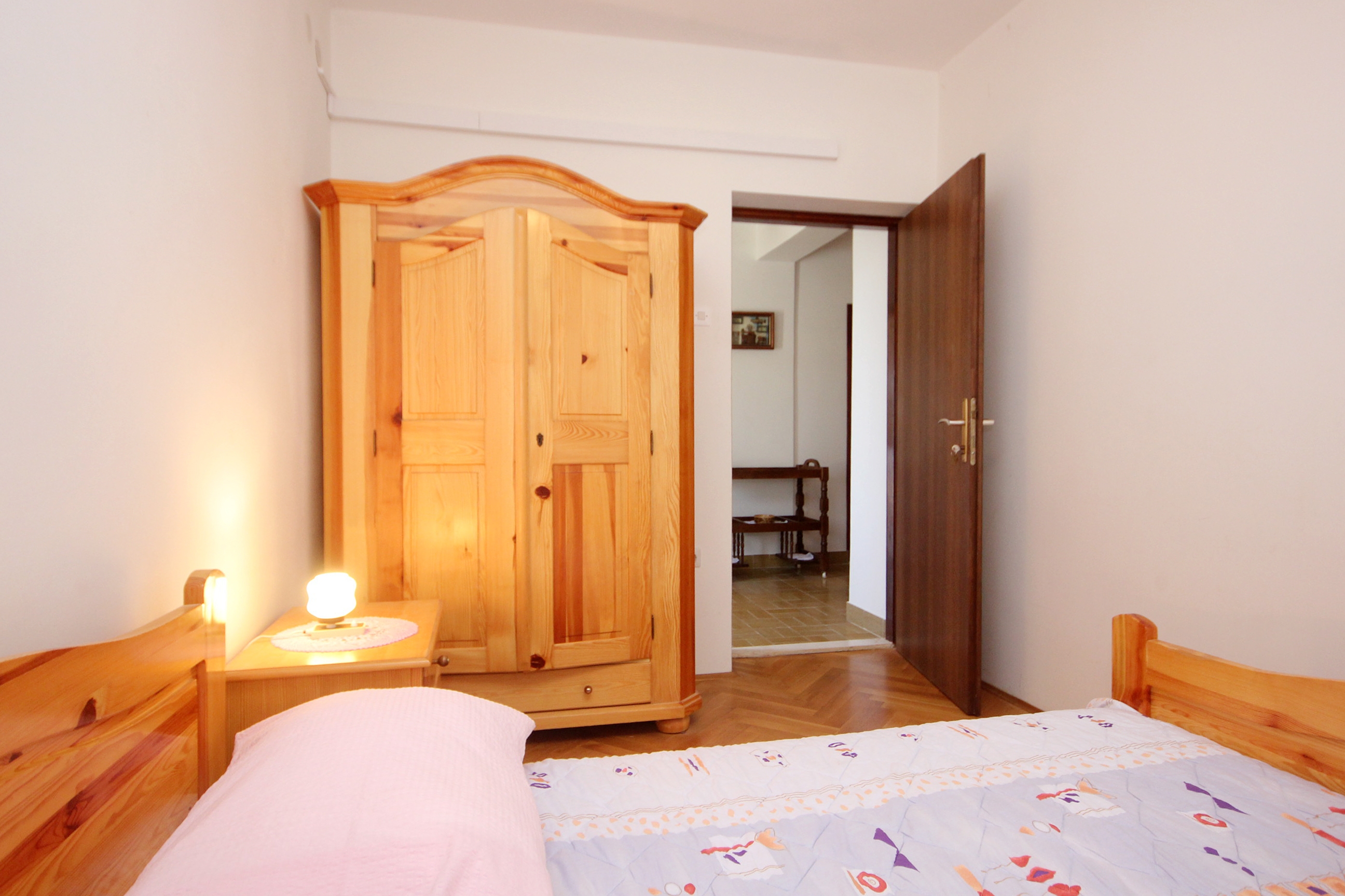 Apartment can accommodate 6 guests. Beds are situated in 3 sleeping rooms, within 64m2. Guests can use a private balcony to enjoy the warm summer evenings. The apartment offers the sea view. Food can be prepared using barbecue which is shared with other guests too. This accommodation unit welcomes pets at an additional charge. INCLUDED IN THE PRICE: tourist tax, final cleaning, parking, internet, iron, ironing board, hairdryer, portable barbecue, sunshade. OPTIONAL ADDITIONAL COSTS: air-conditioning (€7.00 per night), pets (€5.00 per night). The availability of additional services for your chosen dates of stay, as well as their prices (if none are listed) must be checked ahead of time. Any additional services not shown in the price calculation are payable directly to the property owner and only if used by the visitor.