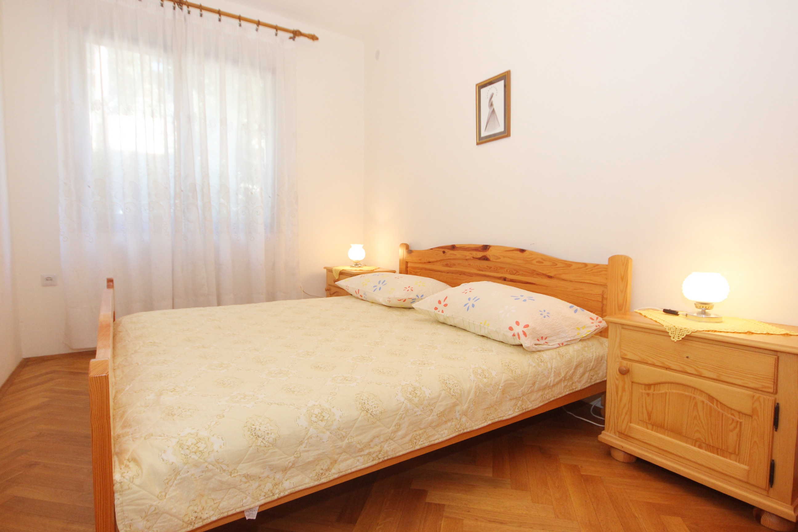 House 9355 in the town of Pag, Pag - Kvarner has accommodation units of type Apartment (2) and is 20 m away from the sea. The nearest beach to this accommodation is a pebble beach. The house is categorized as "Facilities near a beach". Other guests will most likely be present in the house during your holiday. During your holiday, your hosts will also be present in the house. The house owner is under no obligation to accept additional persons and pets that were not stated in the reservation request and it is necessary to report them in advance.AMENITIES Infield (Well-kept), Courtyard (400m2, Area suitable for children, Sitting area), Parking lot (Number of parking spaces: 4, Distance from the house: In the courtyard), WiFi Internet, Hairdryer, Iron, Ironing board, Portable barbecue, Sunshade LOCATION AND ACCESS Facility is situated near a local road Local road between the property and the beach The property is located by the beach Car access possible: Yes The facility is situated in relatively quiet surroundings The facility is partly surrounded by vegetation DISTANCES Sea: 20 m Beach: 20 m Center: 1.5 km Shop: 1 km Urgent medical care: 1.7 km Pharmacy: 1.7 km Exchange office: 1 km ATMBank machine: 750 m Tourist info: 1.5 km
