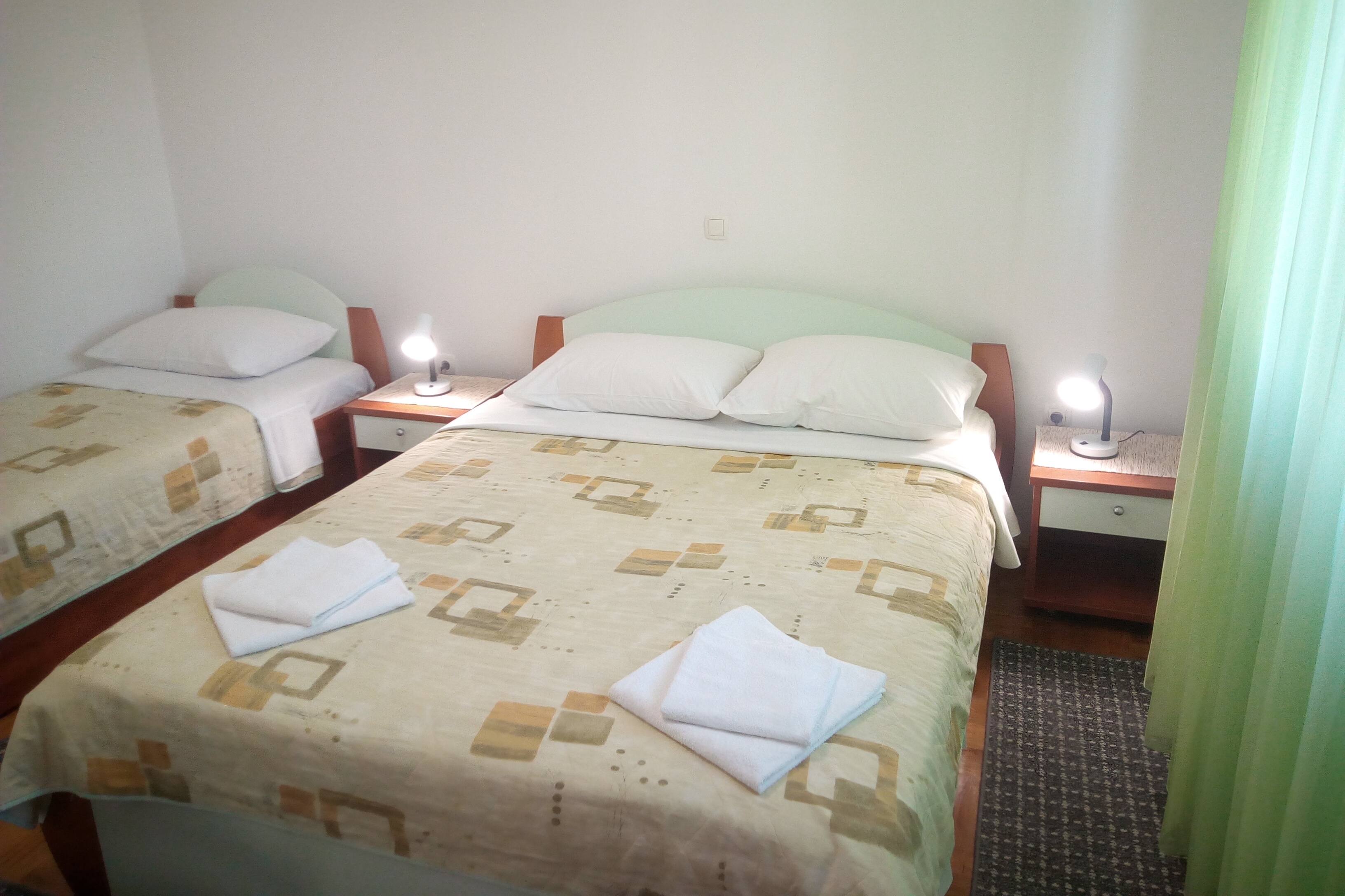 Apartment can accommodate 5 guests. Beds are situated in 1 sleeping rooms, but also in the living room, within 43m2. Guests can use a private balcony to enjoy the warm summer evenings. The apartment offers the sea view. Food can be prepared using barbecue which is shared with other guests too. INCLUDED IN THE PRICE: tourist tax, final cleaning, air-conditioning, parking, internet, iron, ironing board, hairdryer, portable barbecue. The availability of additional services for your chosen dates of stay, as well as their prices (if none are listed) must be checked ahead of time. Any additional services not shown in the price calculation are payable directly to the property owner and only if used by the visitor.