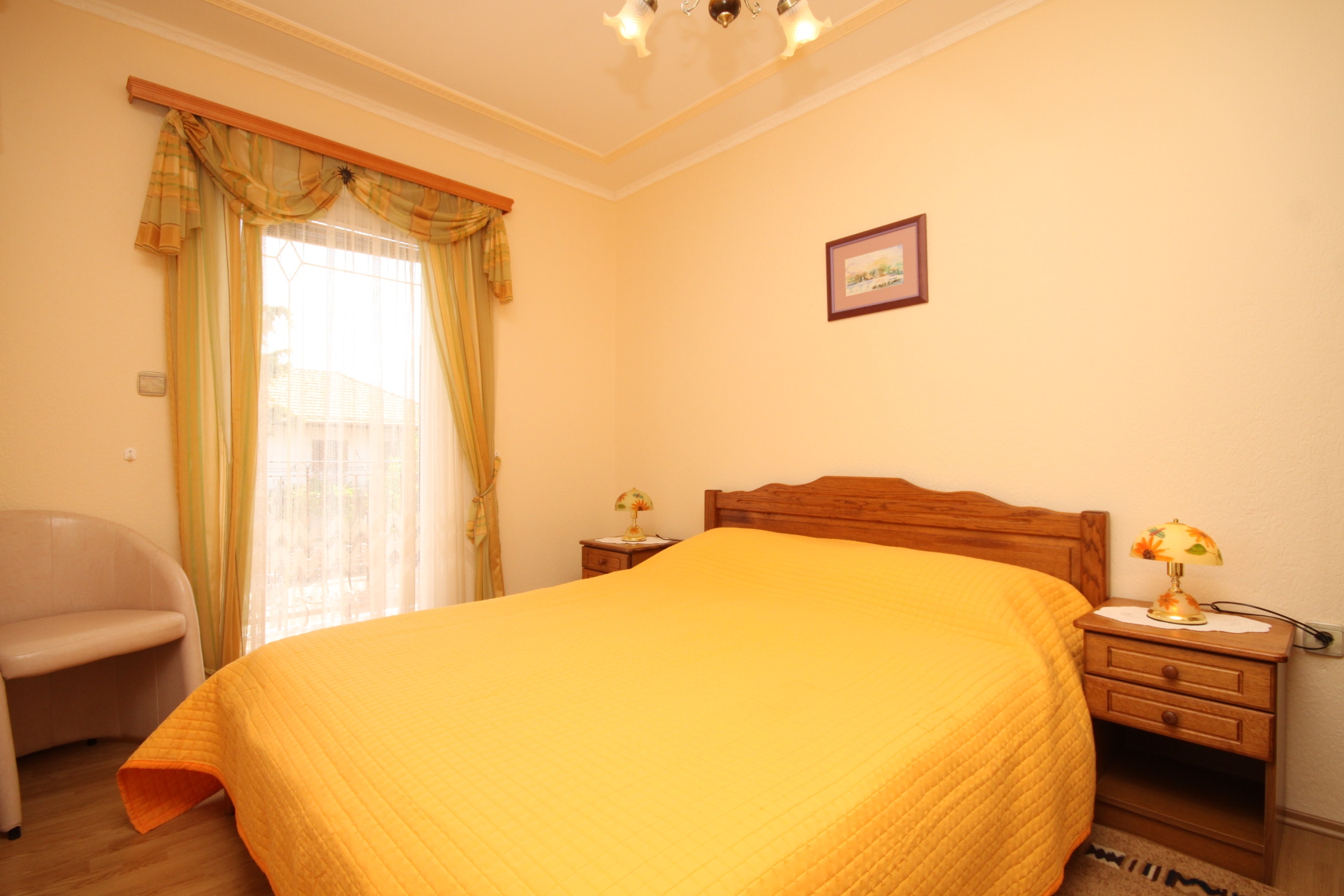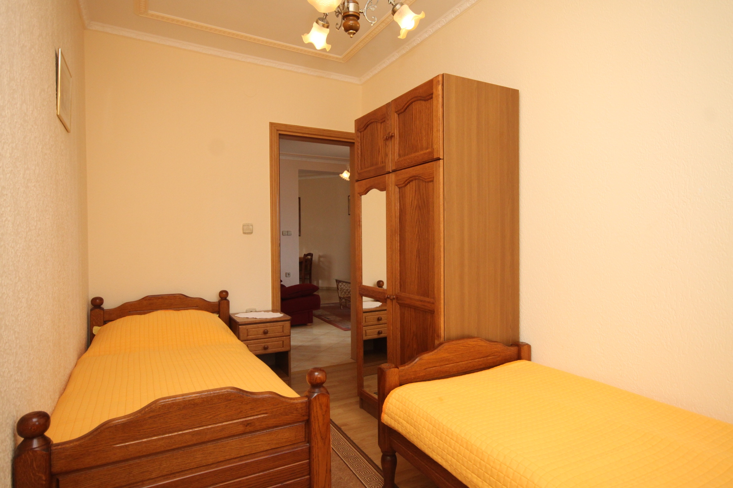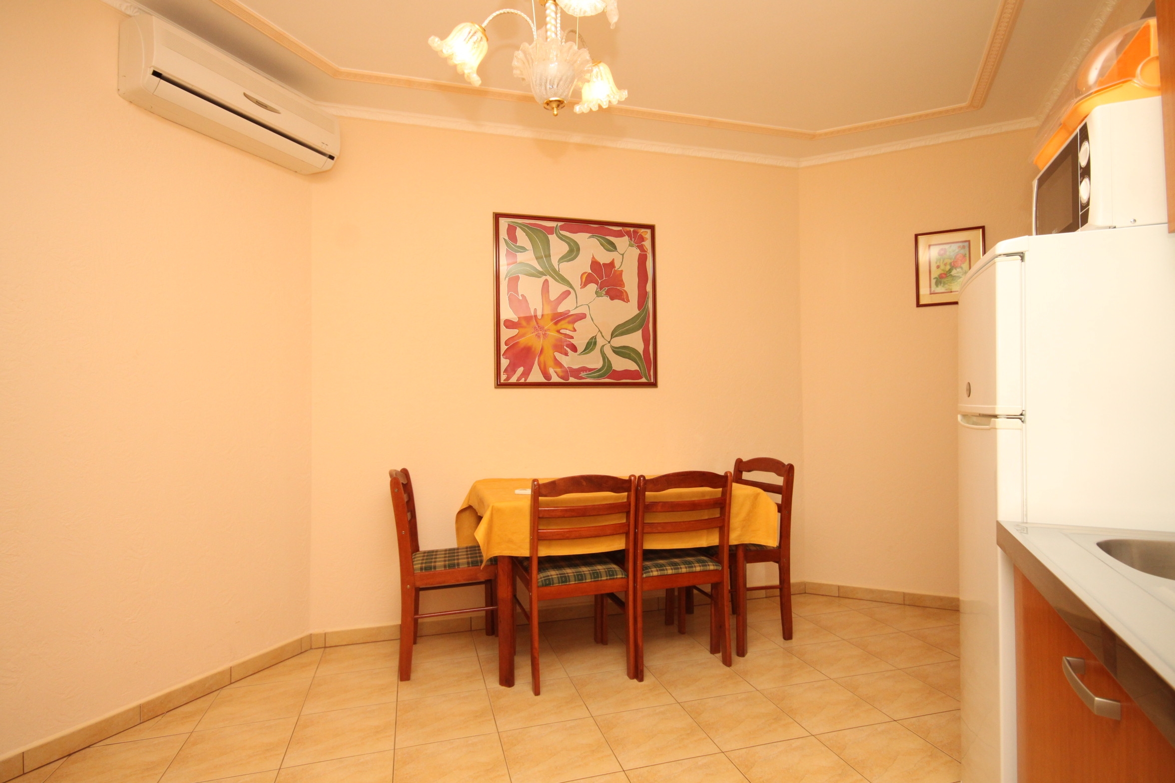 Apartment can accommodate 5 guests. Beds are situated in 2 sleeping rooms, but also in the living room, within 48m2. Guests can use a private terrace to enjoy the warm summer evenings. The apartment offers the sea view. Food can be prepared using barbecue which is shared with other guests too. INCLUDED IN THE PRICE: final cleaning, air-conditioning, parking, internet, iron, ironing board, hairdryer, sunchairs. OBLIGATORY ADDITIONAL COSTS: tourist tax (adults €0.93 - €1.50 nightperson, discount for children aged 12 - 17), short stay fee (surcharge depending on a number of booked nights: 30% - 1, 20% - 2, 10% - 3). OPTIONAL ADDITIONAL COSTS: additional bed (€10.00 per night). The availability of additional services for your chosen dates of stay, as well as their prices (if none are listed) must be checked ahead of time. Any additional services not shown in the price calculation are payable directly to the property owner and only if used by the visitor.