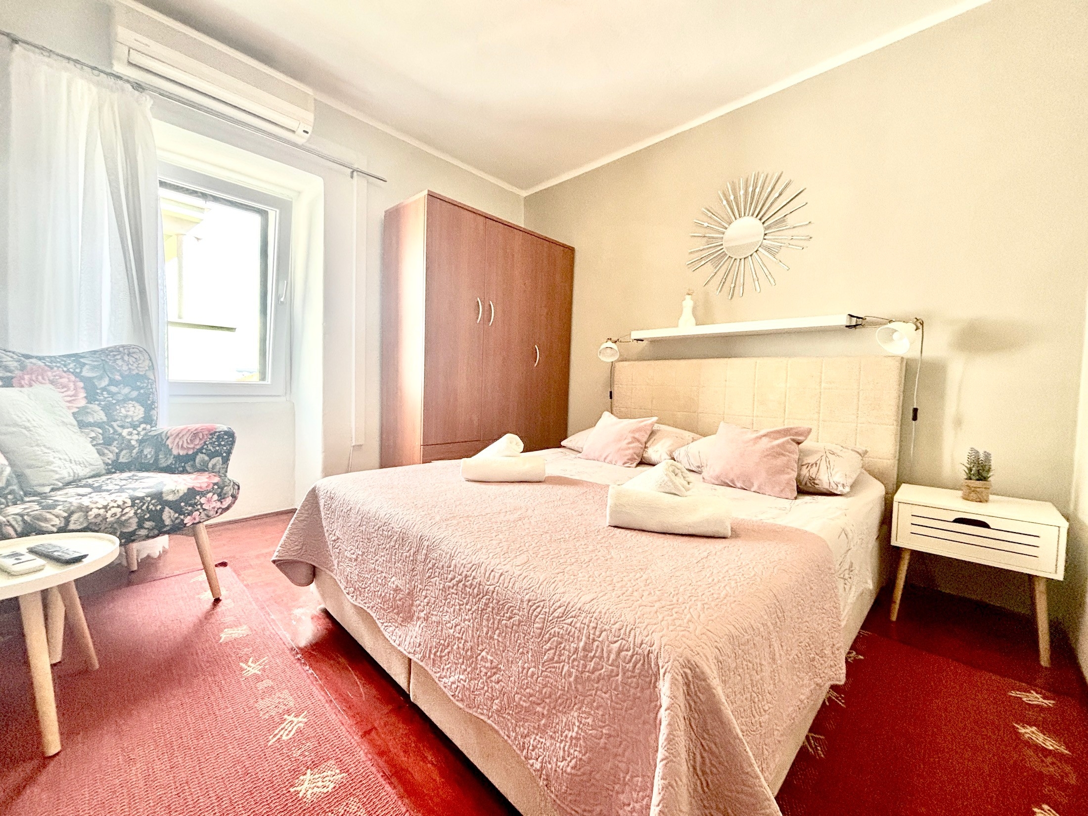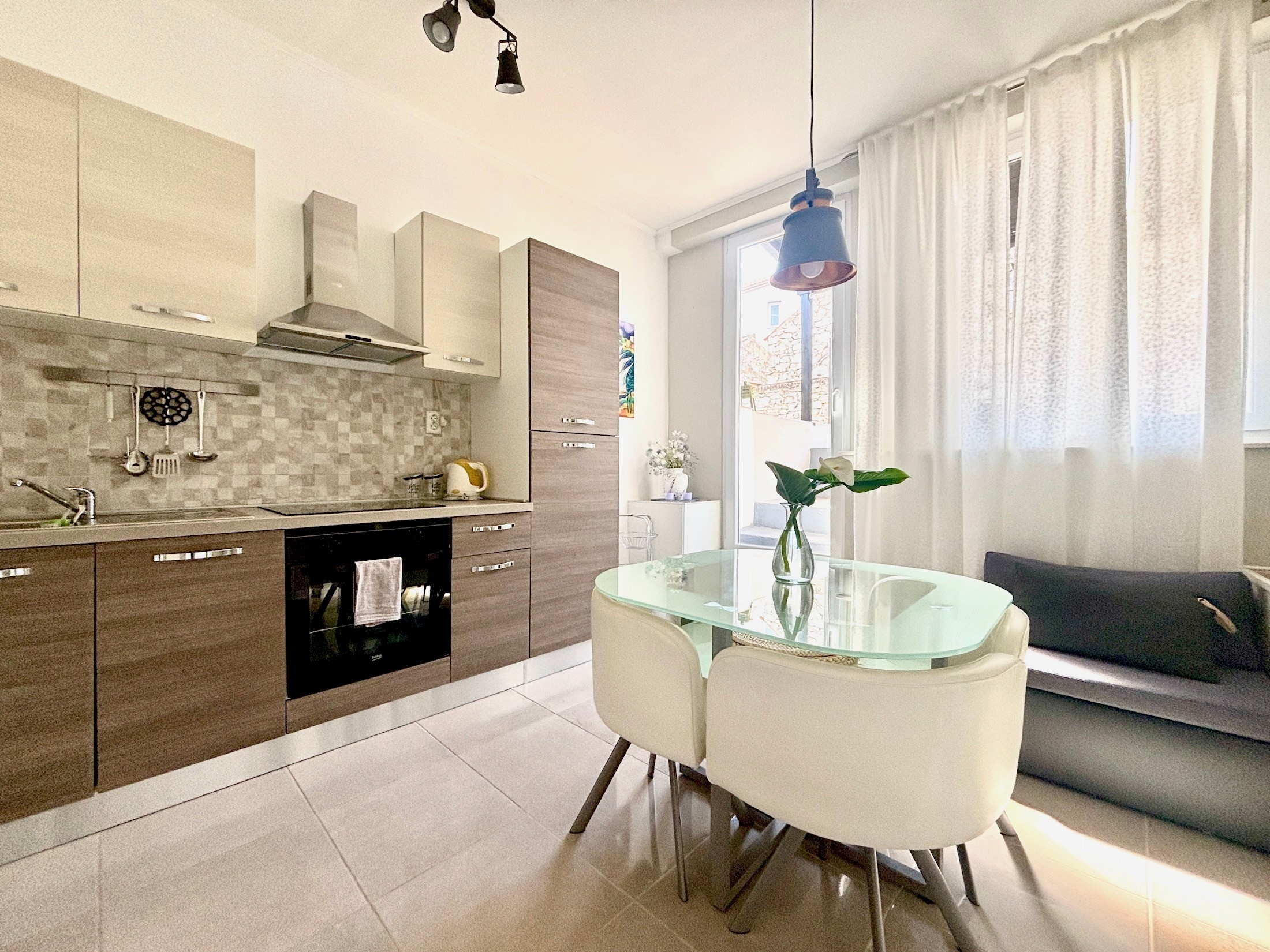 Apartment can accommodate 3 guests. Beds are situated in 1 sleeping rooms, but also in the dining room, within 35m2. Guests can use a private terrace to enjoy the warm summer evenings. Food can be prepared using barbecue which is shared with other guests too. INCLUDED IN THE PRICE: tourist tax, final cleaning, air-conditioning, internet, iron, ironing board, hairdryer. The availability of additional services for your chosen dates of stay, as well as their prices (if none are listed) must be checked ahead of time. Any additional services not shown in the price calculation are payable directly to the property owner and only if used by the visitor.