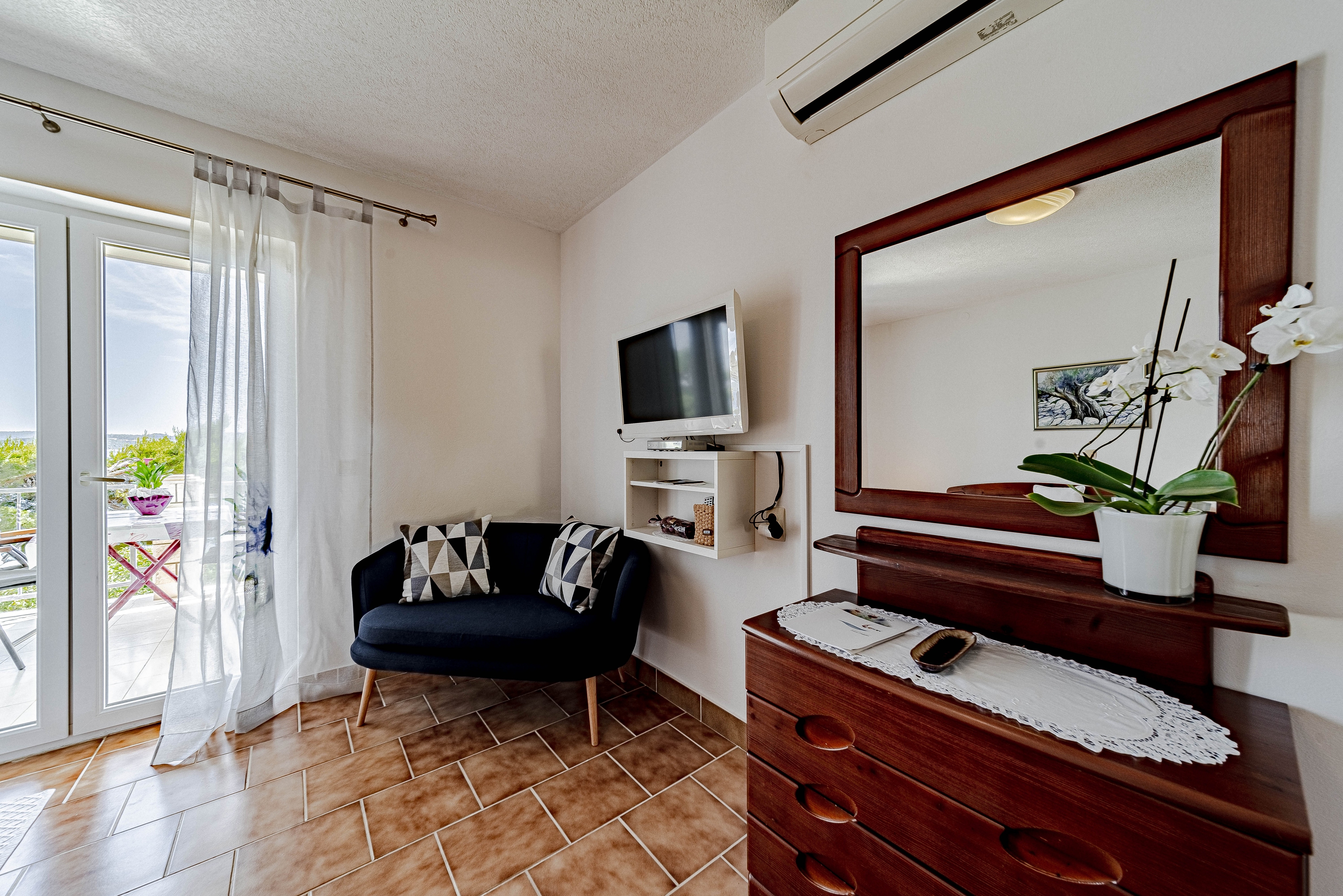 Apartment can accommodate 4 guests. Beds are situated in 2 sleeping rooms, within 50m2. Guests can use a private terrace to enjoy the warm summer evenings. The apartment offers the sea view. Food can be prepared using barbecue which is shared with other guests too. INCLUDED IN THE PRICE: tourist tax, final cleaning, air-conditioning, parking, internet, boat mooring, baby cot, iron, ironing board, hairdryer, sunshade. The availability of additional services for your chosen dates of stay, as well as their prices (if none are listed) must be checked ahead of time. Any additional services not shown in the price calculation are payable directly to the property owner and only if used by the visitor. Discounts to the base price: free day 14=13 (for reservations of 14 or more days you get one free day for the stay until 31122026).