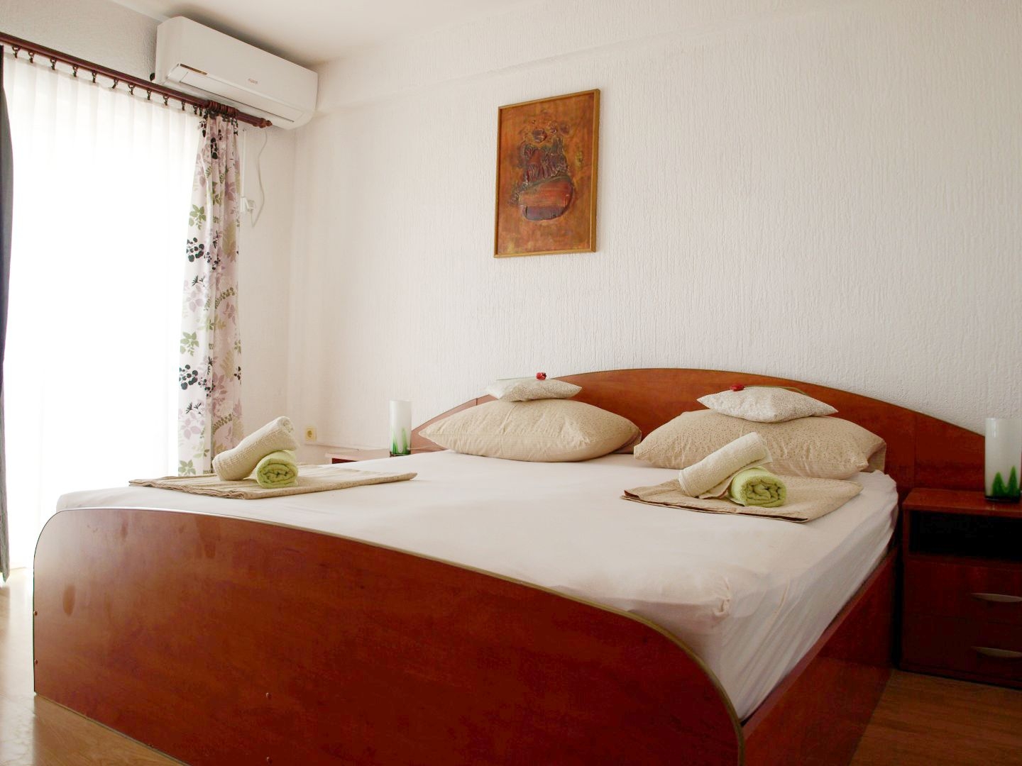 Apartment can accommodate 4 guests. Beds are situated in 1 sleeping rooms, but also in the dining room, within 30m2. Guests can use a private terrace to enjoy the warm summer evenings. The apartment offers the sea view. Food can be prepared using barbecue which is shared with other guests too. INCLUDED IN THE PRICE: tourist tax, final cleaning, air-conditioning, parking, internet, baby cot, iron, ironing board, hairdryer. OBLIGATORY ADDITIONAL COSTS: short stay fee (surcharge depending on a number of booked nights: 30% - 1, 20% - 2, 10% - 3). The availability of additional services for your chosen dates of stay, as well as their prices (if none are listed) must be checked ahead of time. Any additional services not shown in the price calculation are payable directly to the property owner and only if used by the visitor.