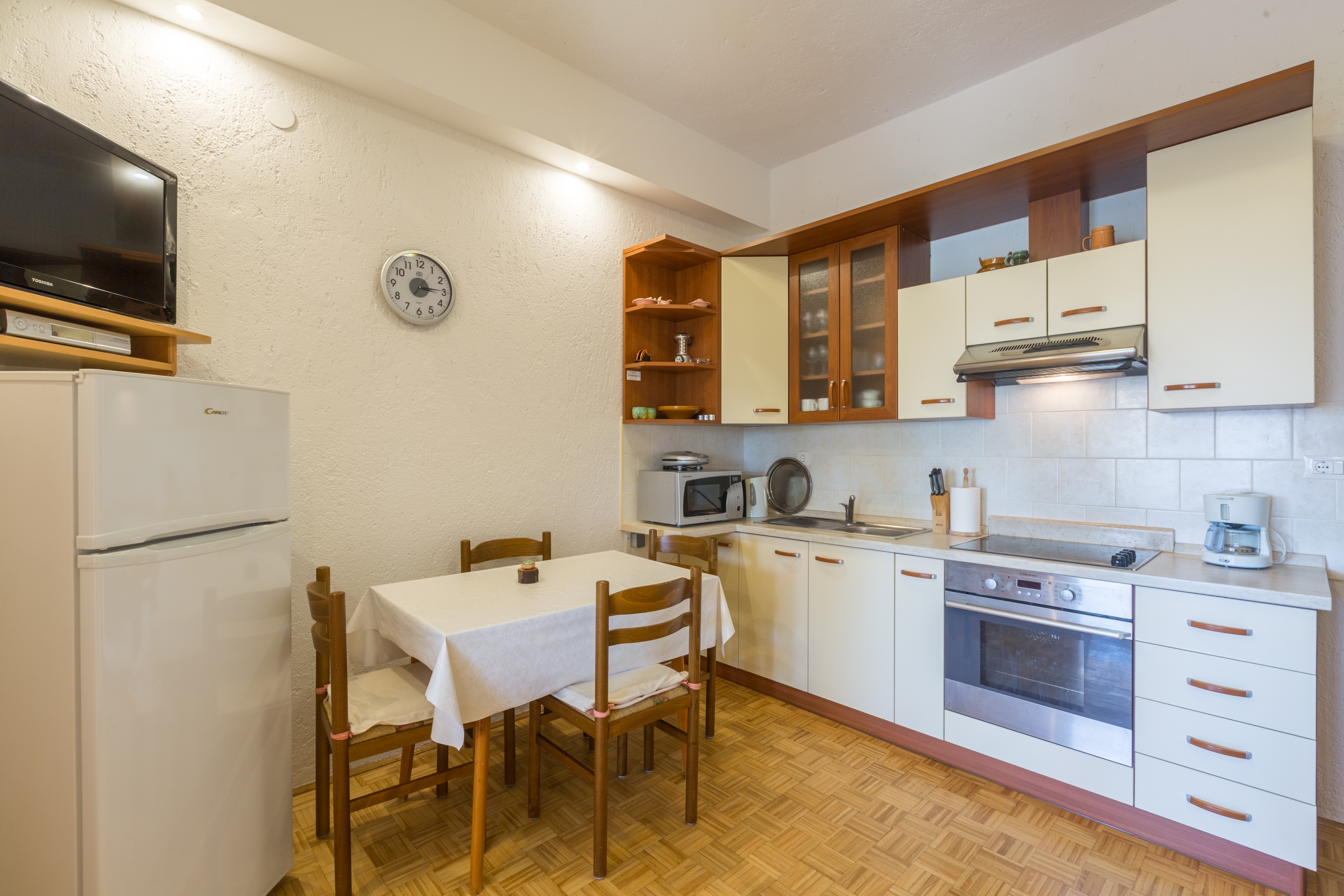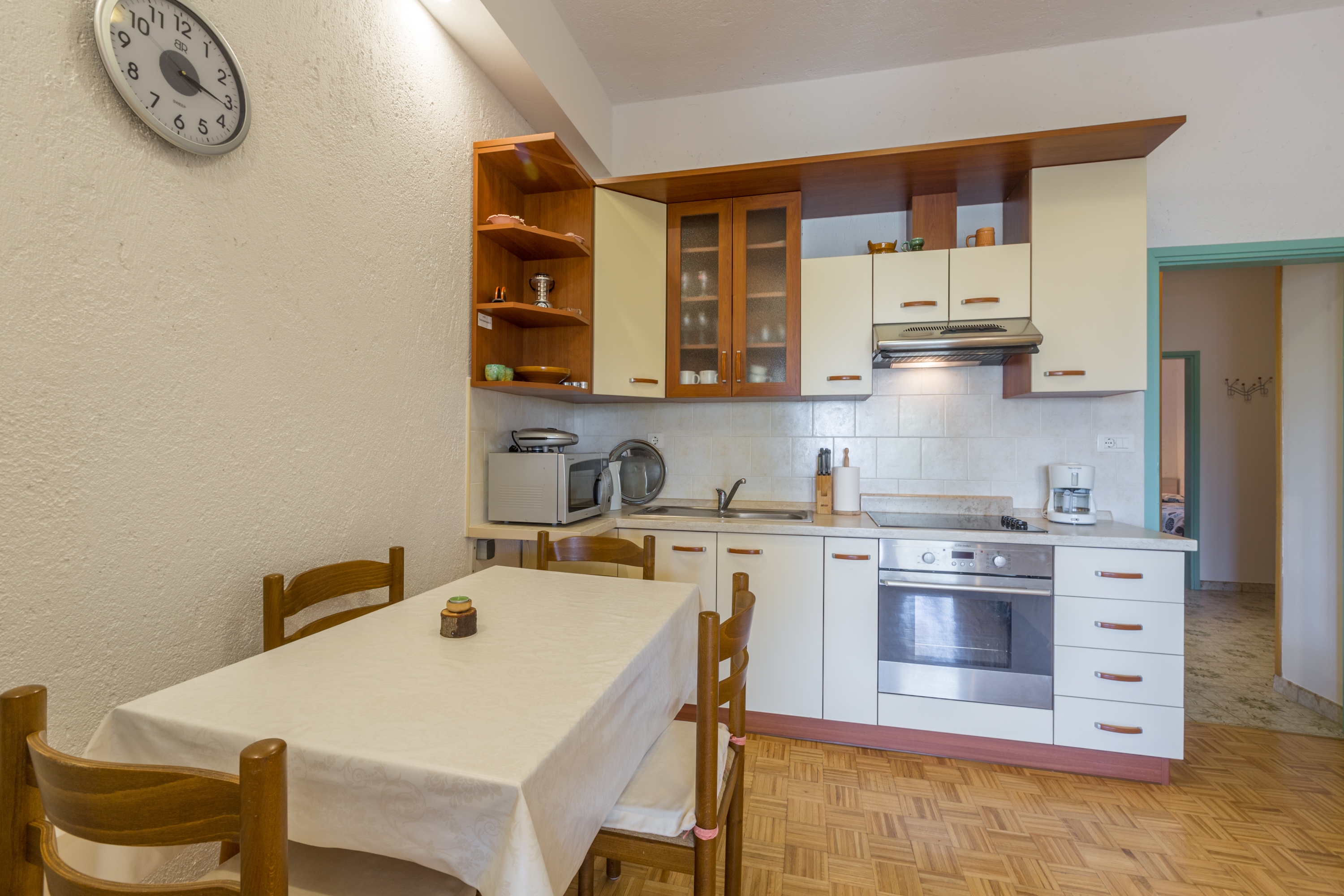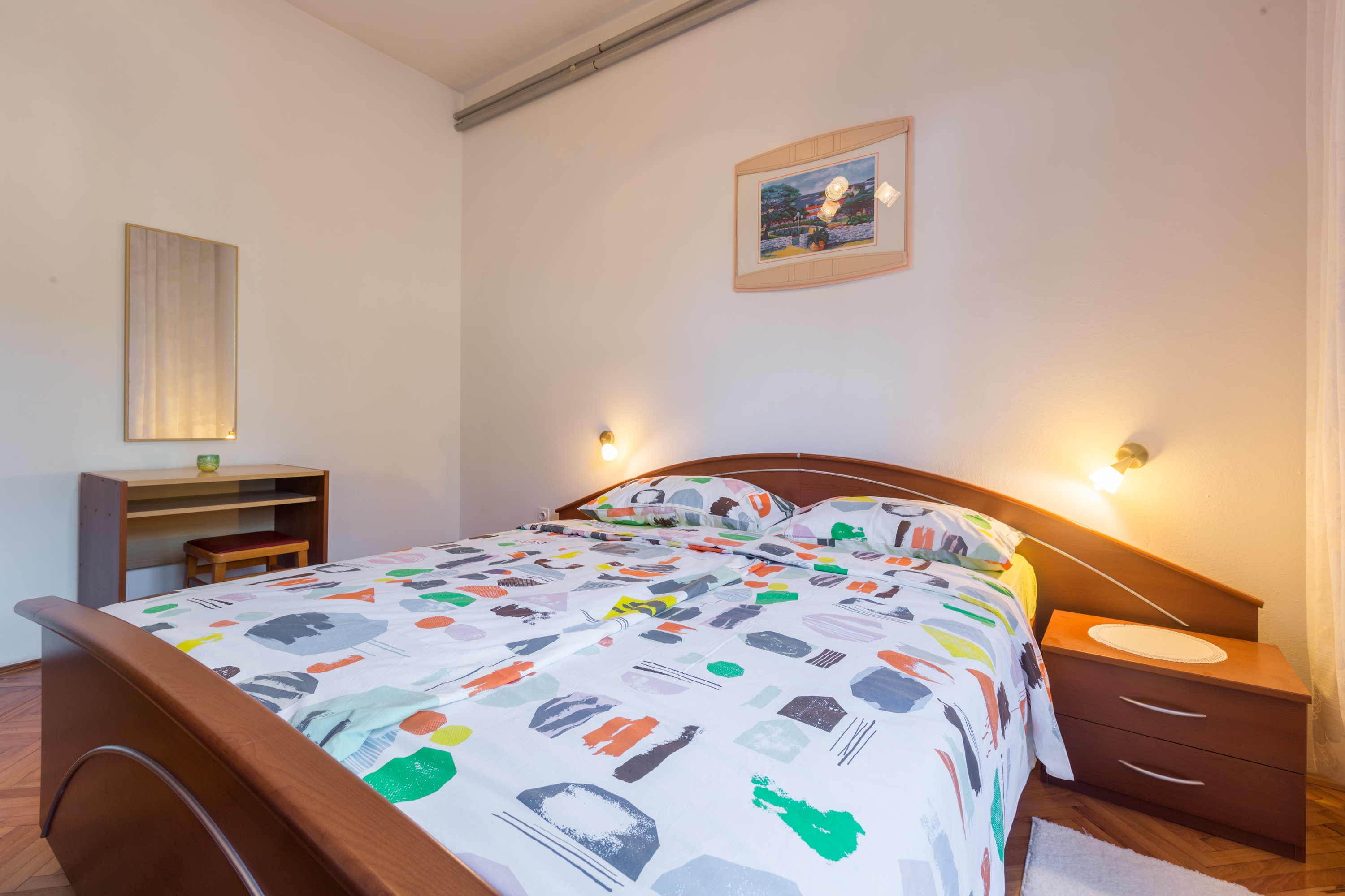 Apartment can accommodate 4 guests. Beds are situated in 2 sleeping rooms, within 43m2. Guests can use a private terrace to enjoy the warm summer evenings. Food can be prepared using barbecue which is shared with other guests too. This accommodation unit welcomes pets at an additional charge. INCLUDED IN THE PRICE: tourist tax, final cleaning, air-conditioning, parking, internet, laundry, baby cot, iron, ironing board, hairdryer. OBLIGATORY ADDITIONAL COSTS: short stay fee (surcharge depending on a number of booked nights: 30% - 1, 20% - 2, 10% - 3). OPTIONAL ADDITIONAL COSTS: pets (€8.00 per night). The availability of additional services for your chosen dates of stay, as well as their prices (if none are listed) must be checked ahead of time. Any additional services not shown in the price calculation are payable directly to the property owner and only if used by the visitor.