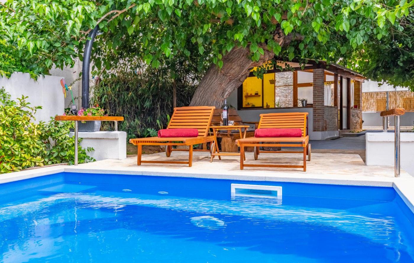 The villa with a terrace and pool views features 2 bedrooms, a living room, a flat-screen TV, an equipped kitchen with a toaster and a fridge, and 1 bathroom with a shower. Towels and bed linen are provided in the villa. The property has an outdoor dining area.
