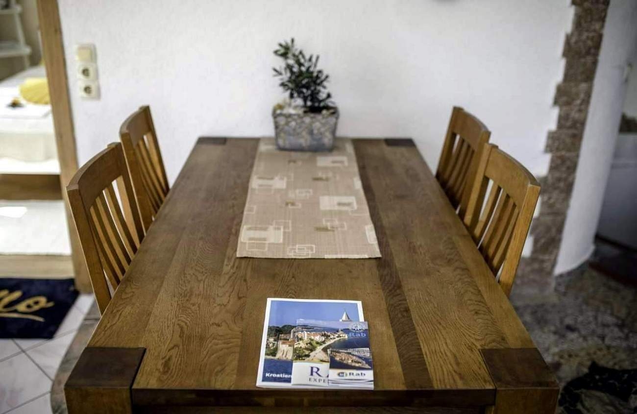 House 22226 in the town of Banjol, Rab - Kvarner has accommodation units of type Apartment (1) and is 1.4 km away from the sea. The nearest beach to this accommodation is a sand beach. You will be the houses only guests during your holiday, as there are no other rooms or apartments. The hosts will be in the house during your holiday. The house owner is under no obligation to accept additional persons and pets that were not stated in the reservation request and it is necessary to report them in advance.AMENITIES Courtyard (20m2, Sitting area), Parking lot (Number of parking spaces: 2, Distance from the house: In the courtyard), Barbecue: shared, WiFi Internet LOCATION AND ACCESS The facility is not located near the road Main road between the property and the beach Car access possible: Yes The facility is situated in quiet surroundings The facility is partly surrounded by vegetation DISTANCES Sea: 1.4 km Beach: 1.4 km Center: 3 km Shop: 1.4 km Urgent medical care: 3 km Pharmacy: 2.3 km Exchange office: 2.5 km ATMBank machine: 1.4 km Tourist info: 1.8 km Ferry port: 10 km Bus station: 2.5 km Gas station: 2 km Farmers market: 2.4 km