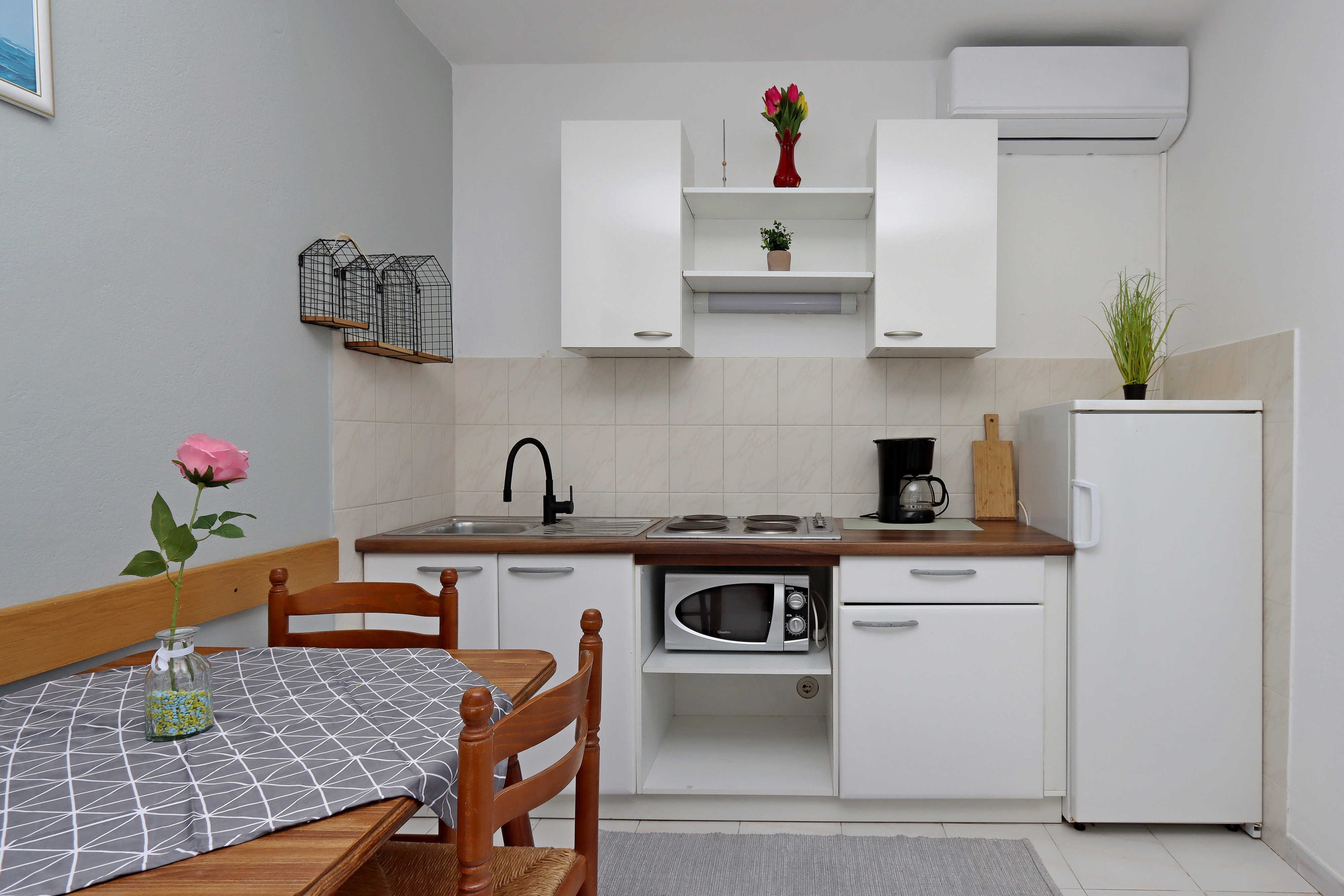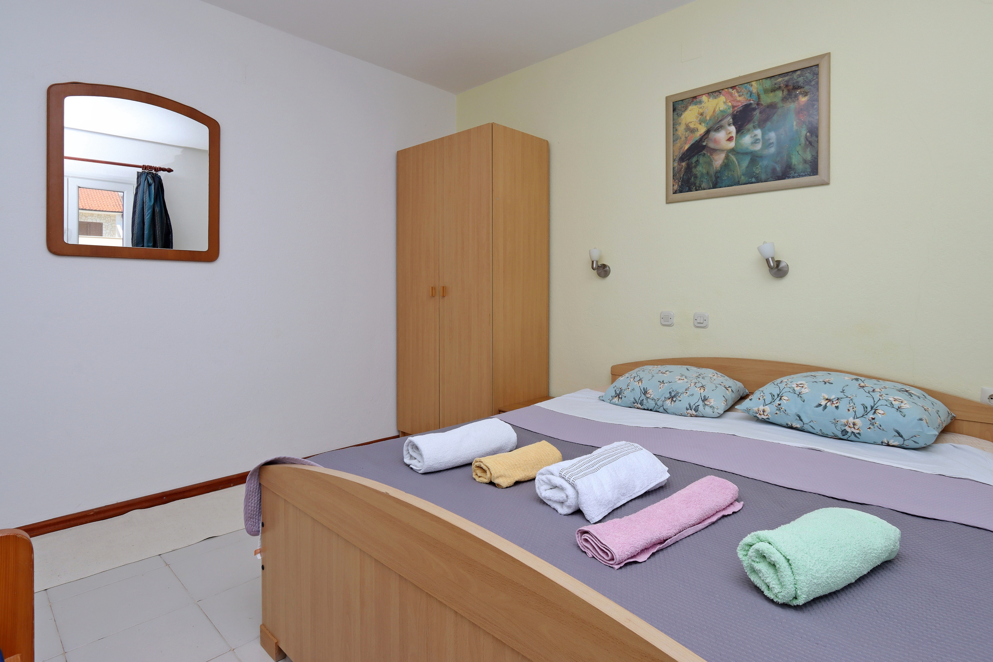 Apartment can accommodate 3 guests. Beds are situated in 1 sleeping rooms, within 23m2. Guests can use a private terrace to enjoy the warm summer evenings. The apartment offers the sea view. Food can be prepared using barbecue which is shared with other guests too. This accommodation unit welcomes pets at an additional charge. INCLUDED IN THE PRICE: tourist tax, final cleaning, air-conditioning, parking, internet, iron, hairdryer, sunshade. OBLIGATORY ADDITIONAL COSTS: short stay fee (surcharge depending on a number of booked nights: 30% - 1, 20% - 2, 10% - 3). OPTIONAL ADDITIONAL COSTS: boat mooring (€5.00 per night), pets (€7.00 per night), additional bed (€5.00 per night). The availability of additional services for your chosen dates of stay, as well as their prices (if none are listed) must be checked ahead of time. Any additional services not shown in the price calculation are payable directly to the property owner and only if used by the visitor.