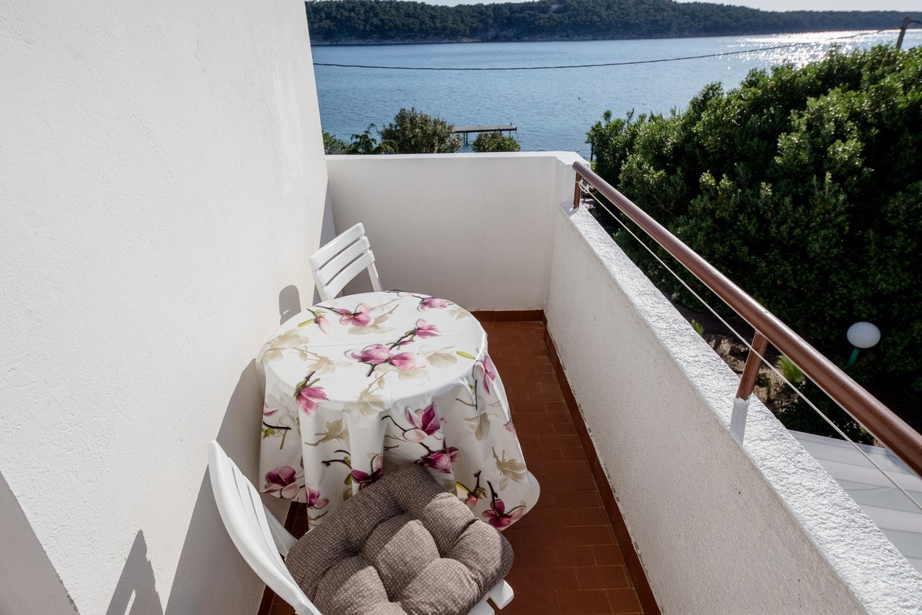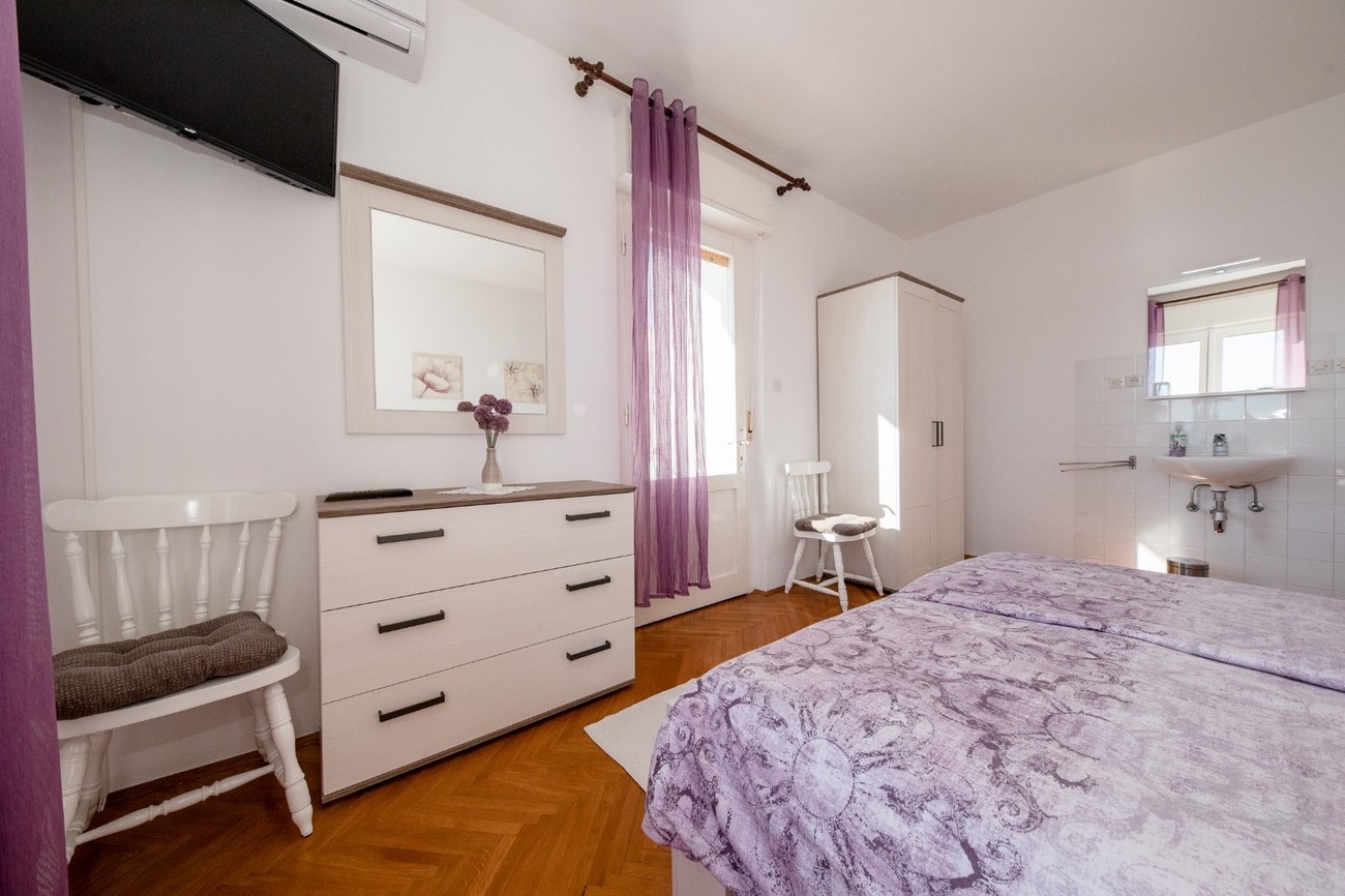 Room can accommodate 2 guests. Beds are situated in 1 sleeping rooms, within 20m2. Guests can use a private balcony to enjoy the warm summer evenings. The room offers the sea view. Food can be prepared using barbecue which is shared with other guests too. This accommodation unit welcomes pets at an additional charge. Reserved accommodation unit is a room with its own bathroom and there is no usage of kitchen. INCLUDED IN THE PRICE: tourist tax, final cleaning, air-conditioning, central heating, parking, internet. OBLIGATORY ADDITIONAL COSTS: short stay fee (surcharge depending on a number of booked nights: 30% - 1, 20% - 2, 10% - 3). OPTIONAL ADDITIONAL COSTS: breakfast (€10.00, a 50% discount for children aged 4 to 12 years, Children up to age 4 free of charge), laundry (€5.00 washing), boat mooring (€5.00 per night), pets (€10.00 per night). The availability of additional services for your chosen dates of stay, as well as their prices (if none are listed) must be checked ahead of time. Any additional services not shown in the price calculation are payable directly to the property owner and only if used by the visitor.