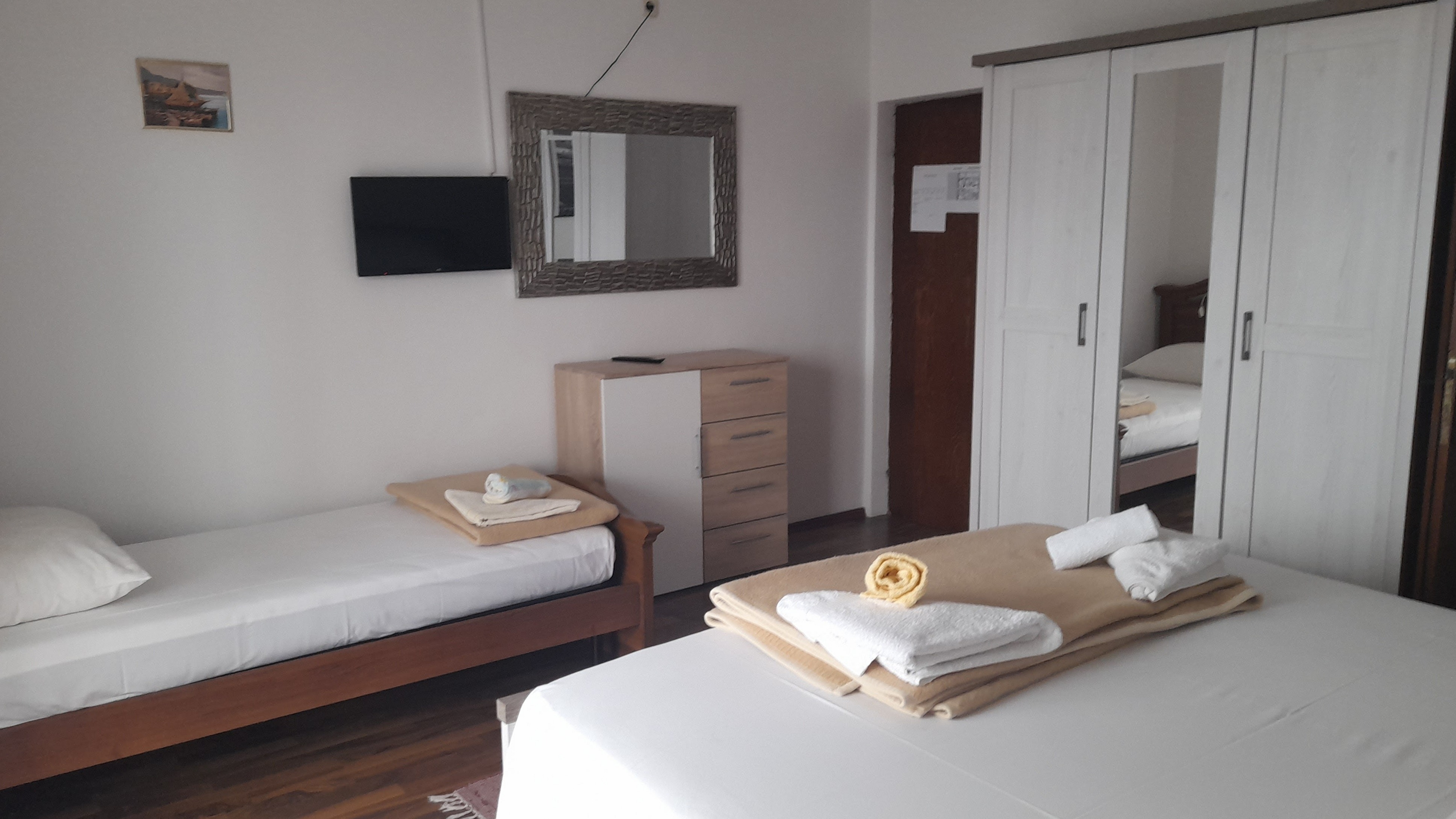 Room can accommodate 3 guests. Beds are situated in 1 sleeping rooms, within 19m2. Use of shared kitchen is possible. Guests can use a private terrace to enjoy the warm summer evenings. The room offers the sea view. Food can be prepared using barbecue which is shared with other guests too. This accommodation unit welcomes pets at an additional charge. Reserved accommodation unit is a room with its own bathroom and shared kitchen at no additional charge. INCLUDED IN THE PRICE: tourist tax, final cleaning, shared kitchen, parking, internet. OBLIGATORY ADDITIONAL COSTS: short stay fee (surcharge depending on a number of booked nights: 30% - 1, 20% - 2, 10% - 3). OPTIONAL ADDITIONAL COSTS: pets (€5.00 per night). The availability of additional services for your chosen dates of stay, as well as their prices (if none are listed) must be checked ahead of time. Any additional services not shown in the price calculation are payable directly to the property owner and only if used by the visitor. Discounts to the base price: free day 14=13 (for reservations of 14 or more days you get one free day for the stay until 31122026).