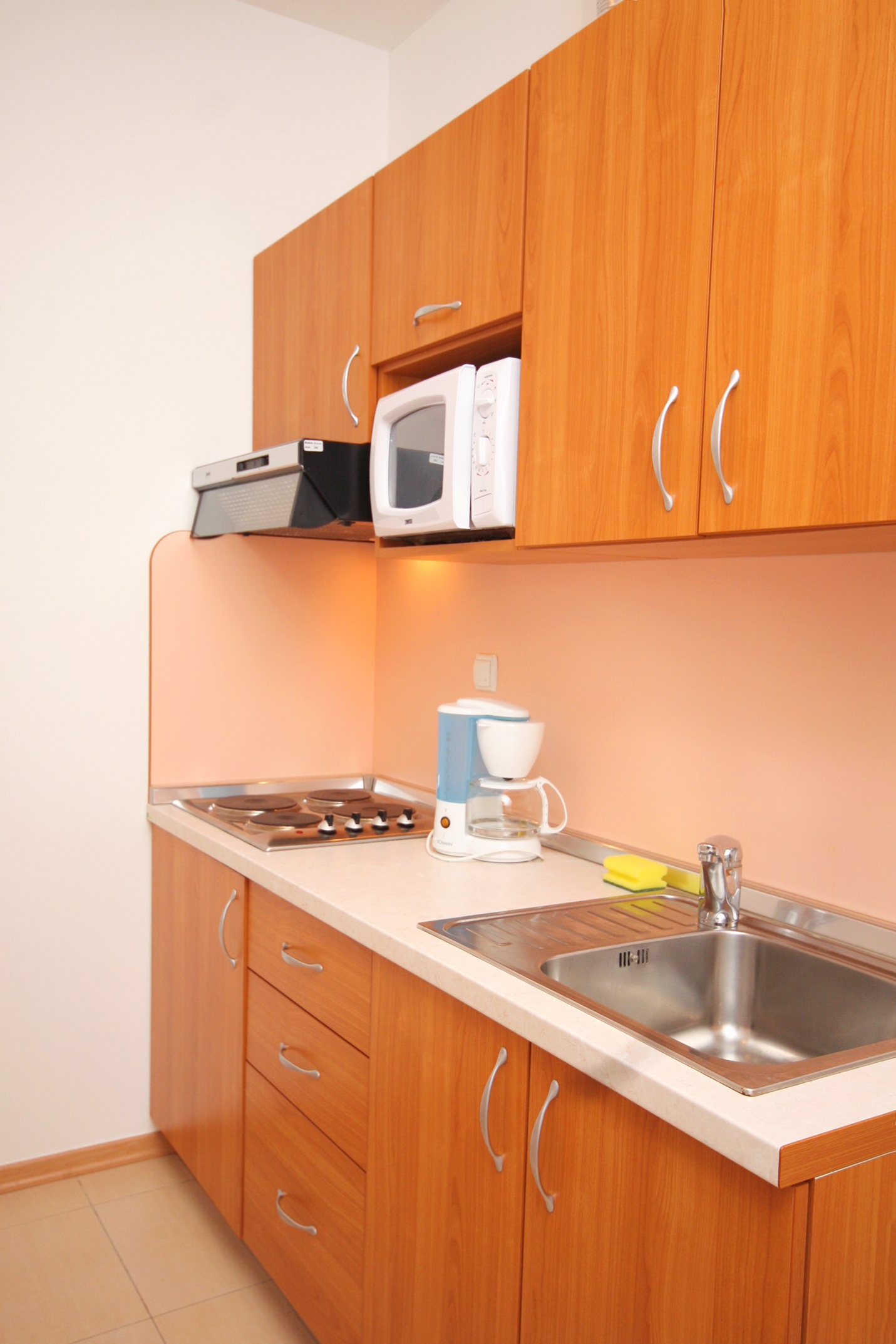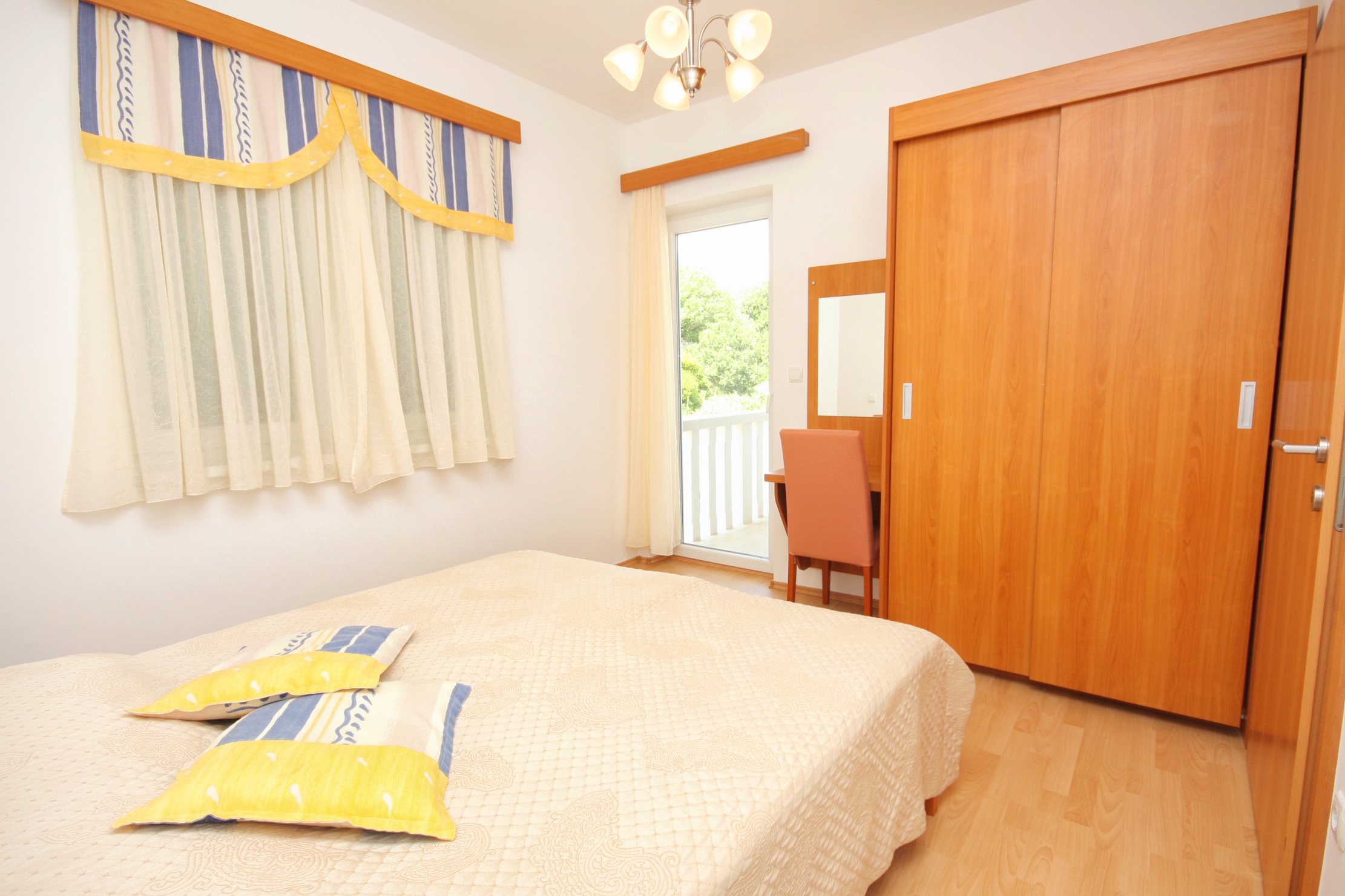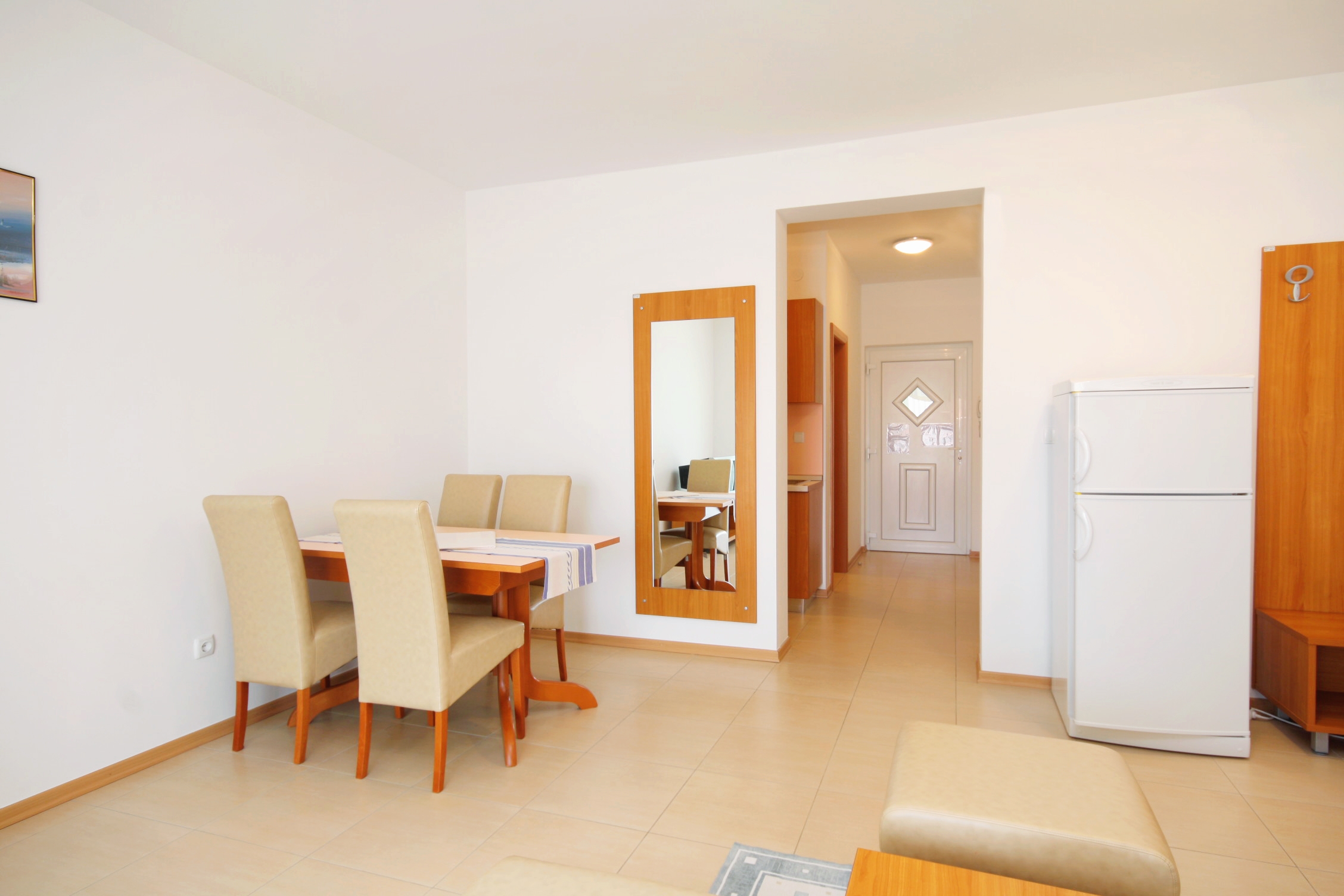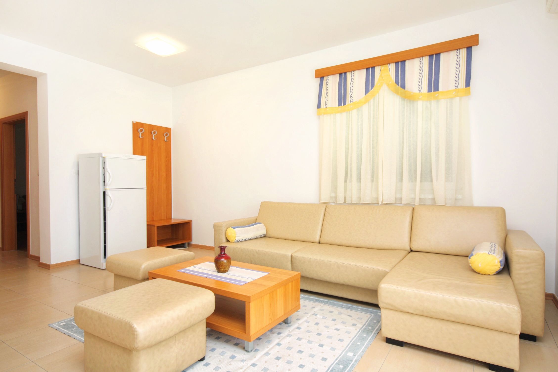 Apartment can accommodate 4 guests. Beds are situated in 1 sleeping rooms, but also in the living room, within 46m2. Guests can use a private terrace to enjoy the warm summer evenings. The apartment offers the sea view. Food can be prepared using barbecue which is shared with other guests too. Shared pool is on disposal during stay. For the booked accommodation unit the deposit is paid directly to the owner upon check-in (deposit amount is displayed on the website) INCLUDED IN THE PRICE: final cleaning, air-conditioning, pool, parking, internet, hairdryer. OBLIGATORY ADDITIONAL COSTS: tourist tax (adults €0.93 - €1.90 nightperson, discount for children aged 12 - 17), deposit (€100.00 one-time payment). The availability of additional services for your chosen dates of stay, as well as their prices (if none are listed) must be checked ahead of time. Any additional services not shown in the price calculation are payable directly to the property owner and only if used by the visitor.