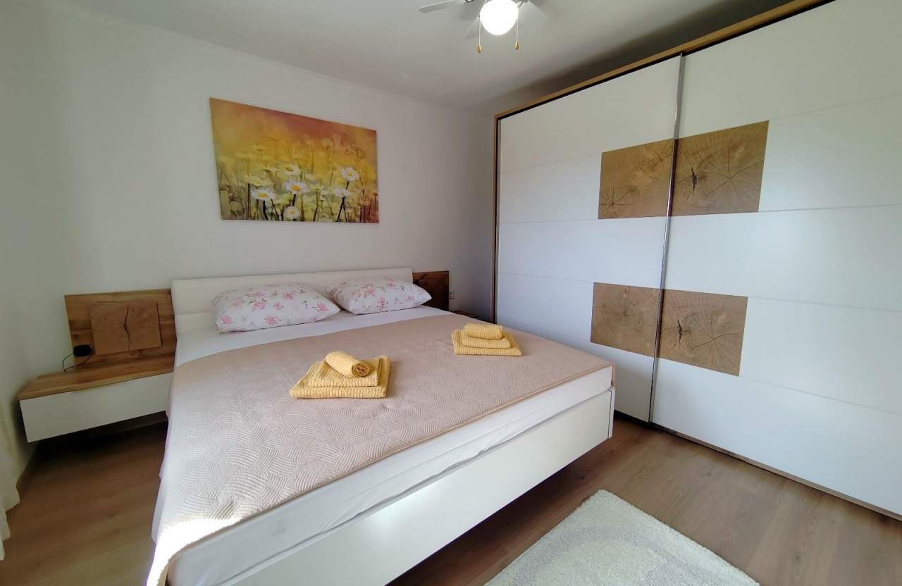 House can accommodate 4 guests. Beds are situated in 2 sleeping rooms, within 61m2. Guests can use a private terrace to enjoy the warm summer evenings. The house offers the sea view. For full enjoyment and relaxation there is a private barbecue for this accommodation guests only. INCLUDED IN THE PRICE: tourist tax, final cleaning, air-conditioning, central heating, parking, internet, hairdryer. OBLIGATORY ADDITIONAL COSTS: short stay fee (surcharge depending on a number of booked nights: 30% - 1, 20% - 2, 10% - 3). The availability of additional services for your chosen dates of stay, as well as their prices (if none are listed) must be checked ahead of time. Any additional services not shown in the price calculation are payable directly to the property owner and only if used by the visitor.