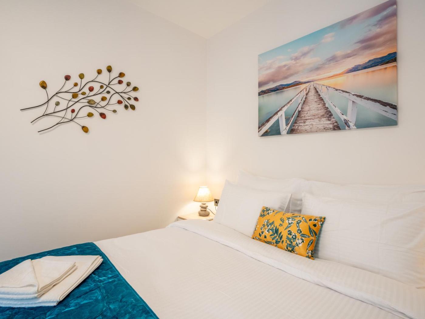 One-Bedroom Premium Apartment. This apartment features 1 living room, 1 separate bedroom and 1 bathroom with a shower and free toiletries. In the well-fitted kitchen, guests will find a stovetop, a dishwasher, kitchenware and an oven. The air-conditioned apartment features a flat-screen TV with streaming services, a washing machine, a tea and coffee maker, a dining area as well as sea views. The unit has 2 beds.