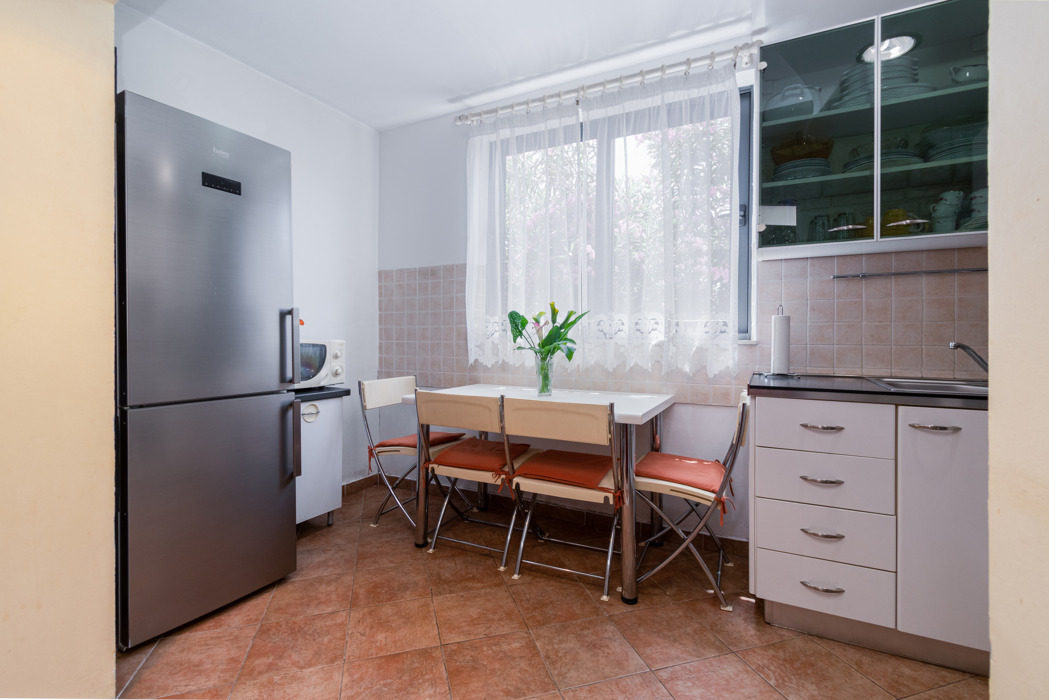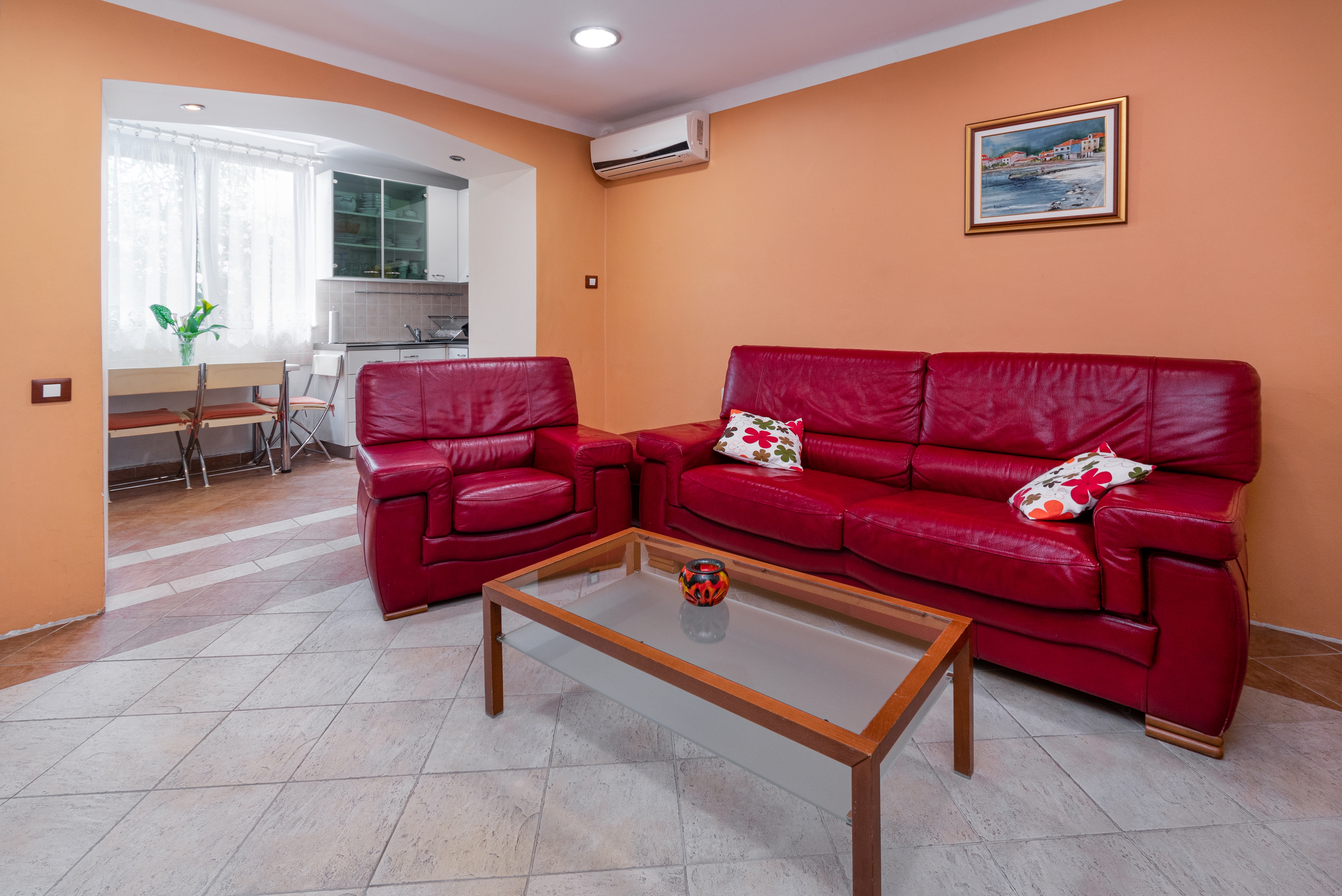 Apartment can accommodate 5 guests. Beds are situated in 2 sleeping rooms, but also in the living room, within 57m2. Guests can use a private terrace to enjoy the warm summer evenings. INCLUDED IN THE PRICE: tourist tax, final cleaning, air-conditioning, internet, iron, ironing board, hairdryer. OPTIONAL ADDITIONAL COSTS: 1 bed for children (€8.00 personnight). The availability of additional services for your chosen dates of stay, as well as their prices (if none are listed) must be checked ahead of time. Any additional services not shown in the price calculation are payable directly to the property owner and only if used by the visitor. Discounts to the base price: free day 21=19 (for reservations of 21 or more days you get 2 free days for the stay until 31122026).