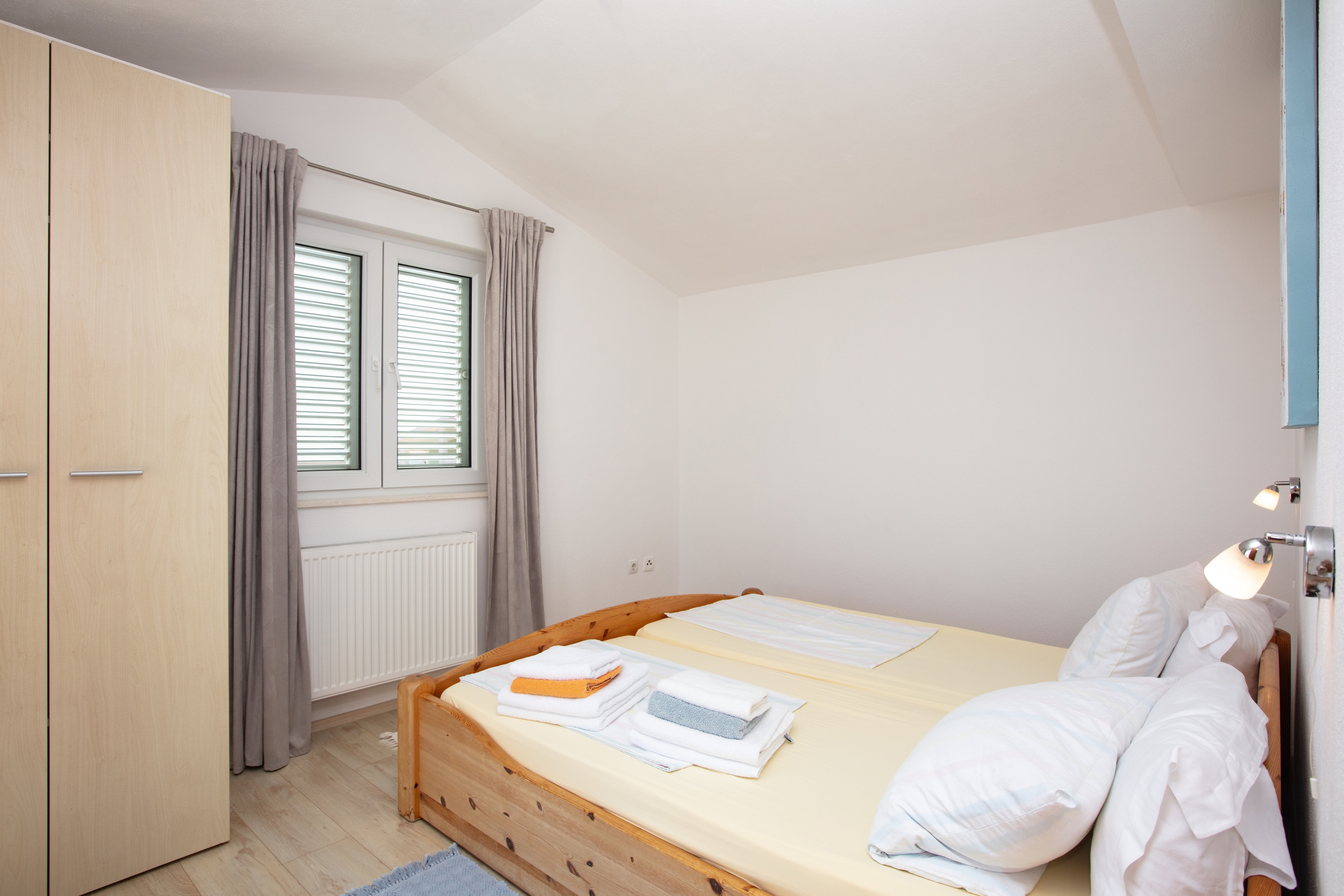 Apartment can accommodate 5 guests. Beds are situated in 2 sleeping rooms, but also in the living room, within 47m2. Guests can use a private terrace to enjoy the warm summer evenings. The apartment offers the sea view. Food can be prepared using barbecue which is shared with other guests too. INCLUDED IN THE PRICE: tourist tax, final cleaning, air-conditioning, central heating, parking, internet, iron, ironing board, hairdryer. OBLIGATORY ADDITIONAL COSTS: short stay fee (surcharge depending on a number of booked nights: 30% - 1, 20% - 2, 10% - 3). OPTIONAL ADDITIONAL COSTS: laundry (€5.00 washing), boat mooring (€3.00 per night). The availability of additional services for your chosen dates of stay, as well as their prices (if none are listed) must be checked ahead of time. Any additional services not shown in the price calculation are payable directly to the property owner and only if used by the visitor.