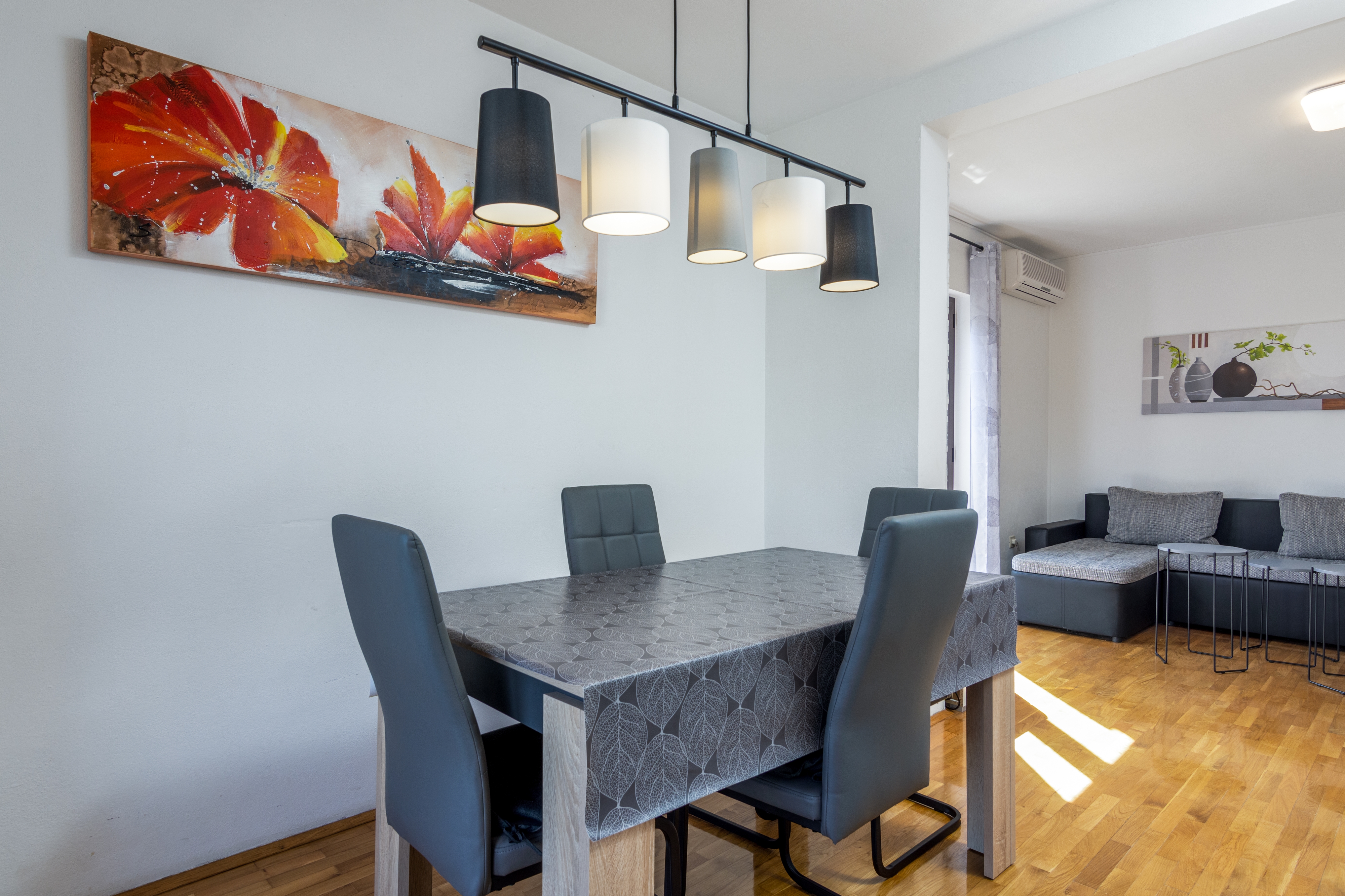 Apartment can accommodate 4 guests. Beds are situated in 3 sleeping rooms, within 71m2. Guests can use a private terrace to enjoy the warm summer evenings. INCLUDED IN THE PRICE: tourist tax, final cleaning, air-conditioning, parking, internet, iron, ironing board, hairdryer. OPTIONAL ADDITIONAL COSTS: laundry (€5.00 washing). The availability of additional services for your chosen dates of stay, as well as their prices (if none are listed) must be checked ahead of time. Any additional services not shown in the price calculation are payable directly to the property owner and only if used by the visitor. Discounts to the base price: free day 14=13 (for reservations of 14 or more days you get one free day for the stay until 31122026).