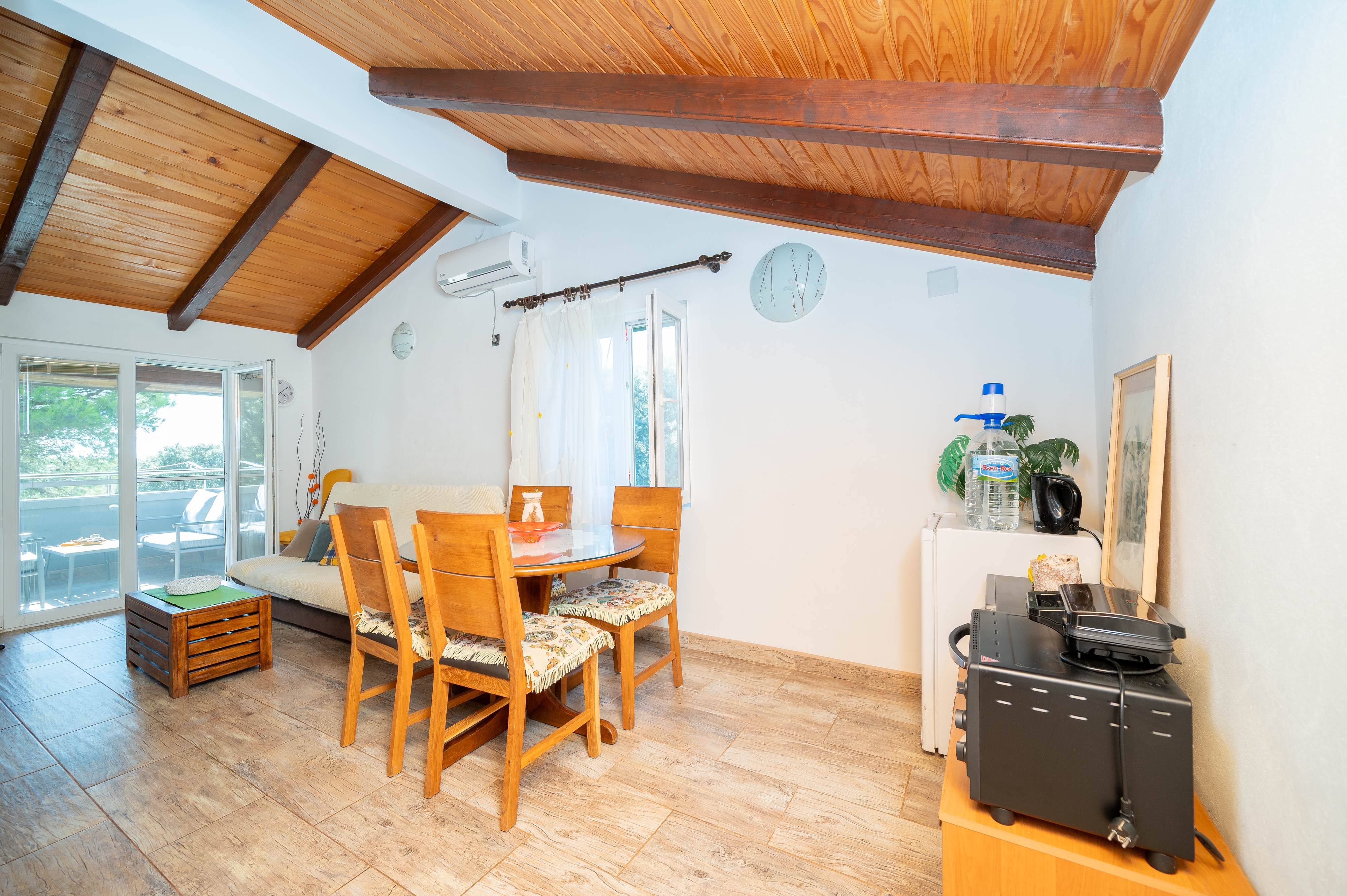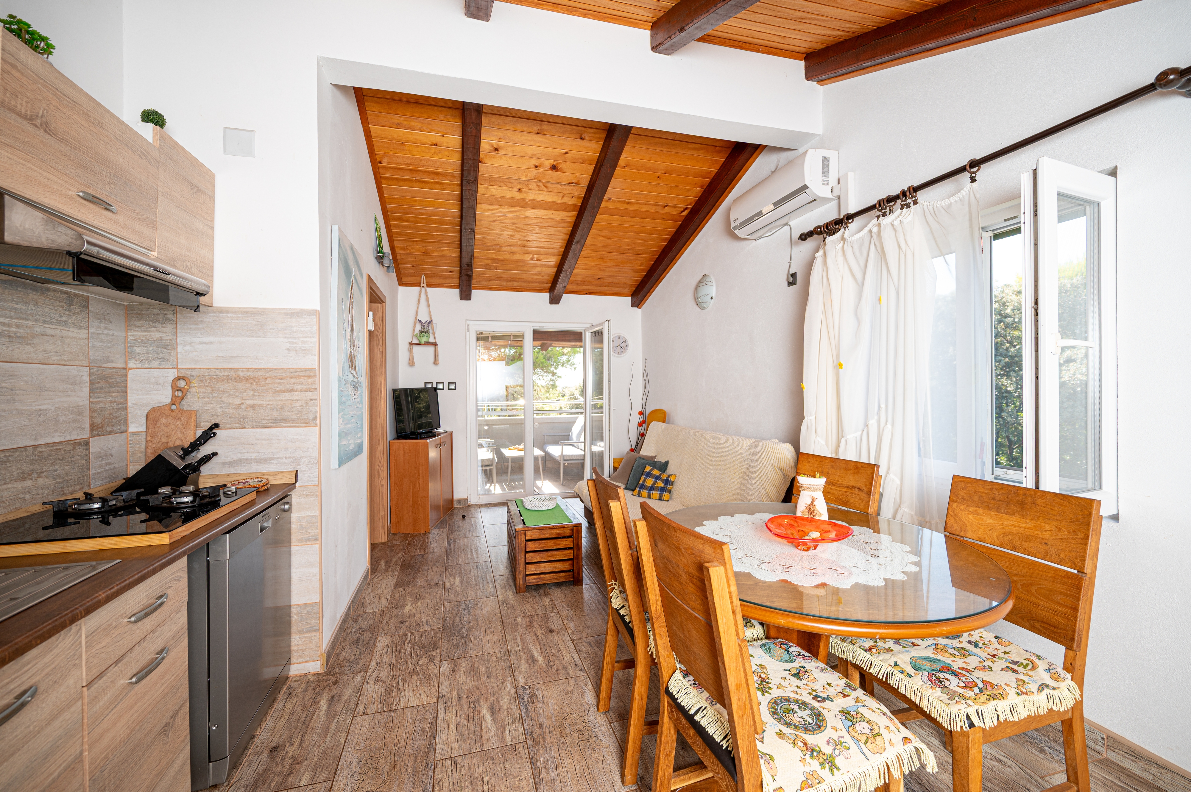 Apartment can accommodate 4 guests. Beds are situated in 1 sleeping rooms, but also in the living room, within 39m2. Guests can use a private terrace to enjoy the warm summer evenings. Food can be prepared using barbecue which is shared with other guests too. INCLUDED IN THE PRICE: tourist tax, final cleaning, air-conditioning, internet, laundry, boat mooring, iron, ironing board, hairdryer. The availability of additional services for your chosen dates of stay, as well as their prices (if none are listed) must be checked ahead of time. Any additional services not shown in the price calculation are payable directly to the property owner and only if used by the visitor. Discounts to the base price: free day 14=13 (for reservations of 14 or more days you get one free day for the stay until 31122026).