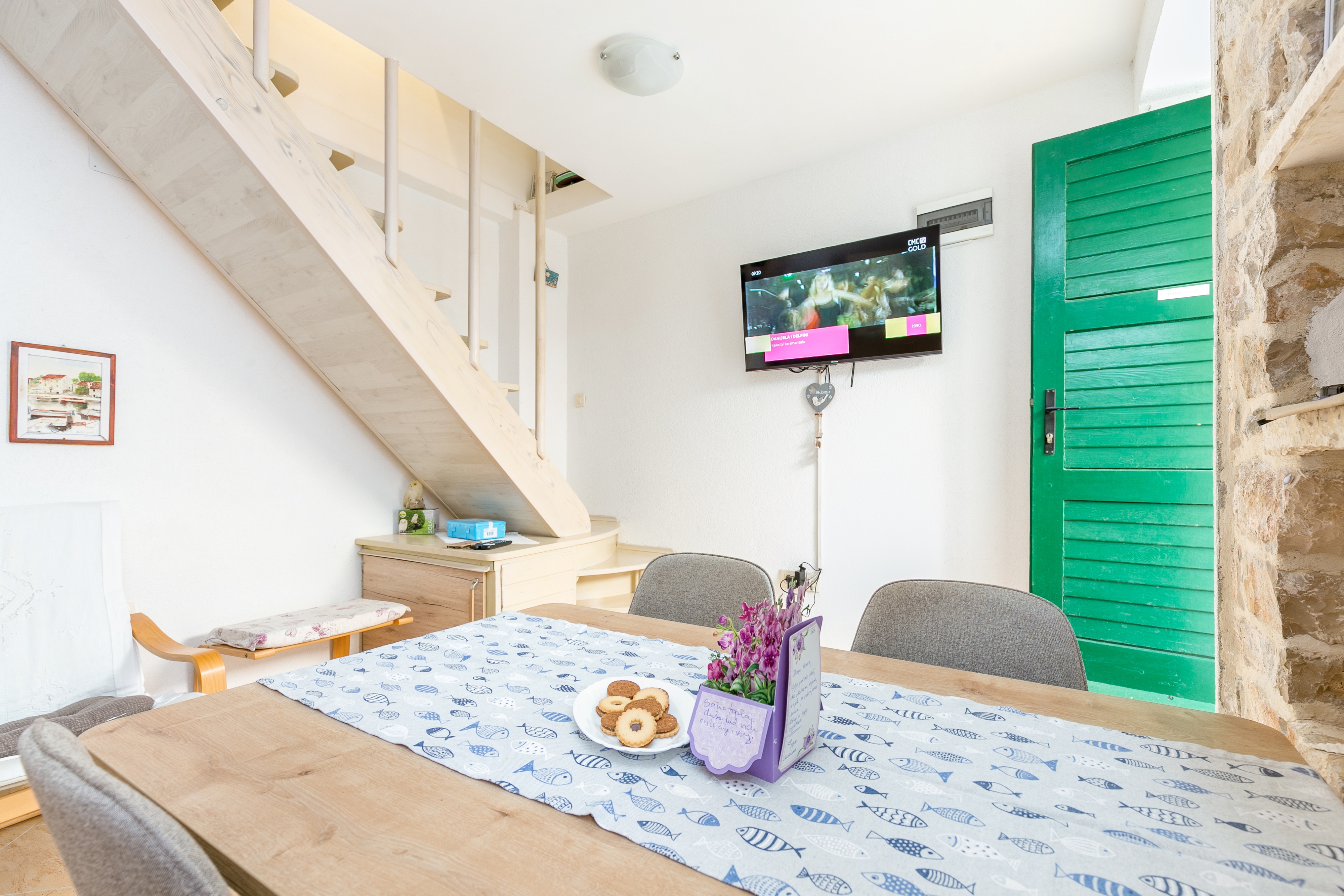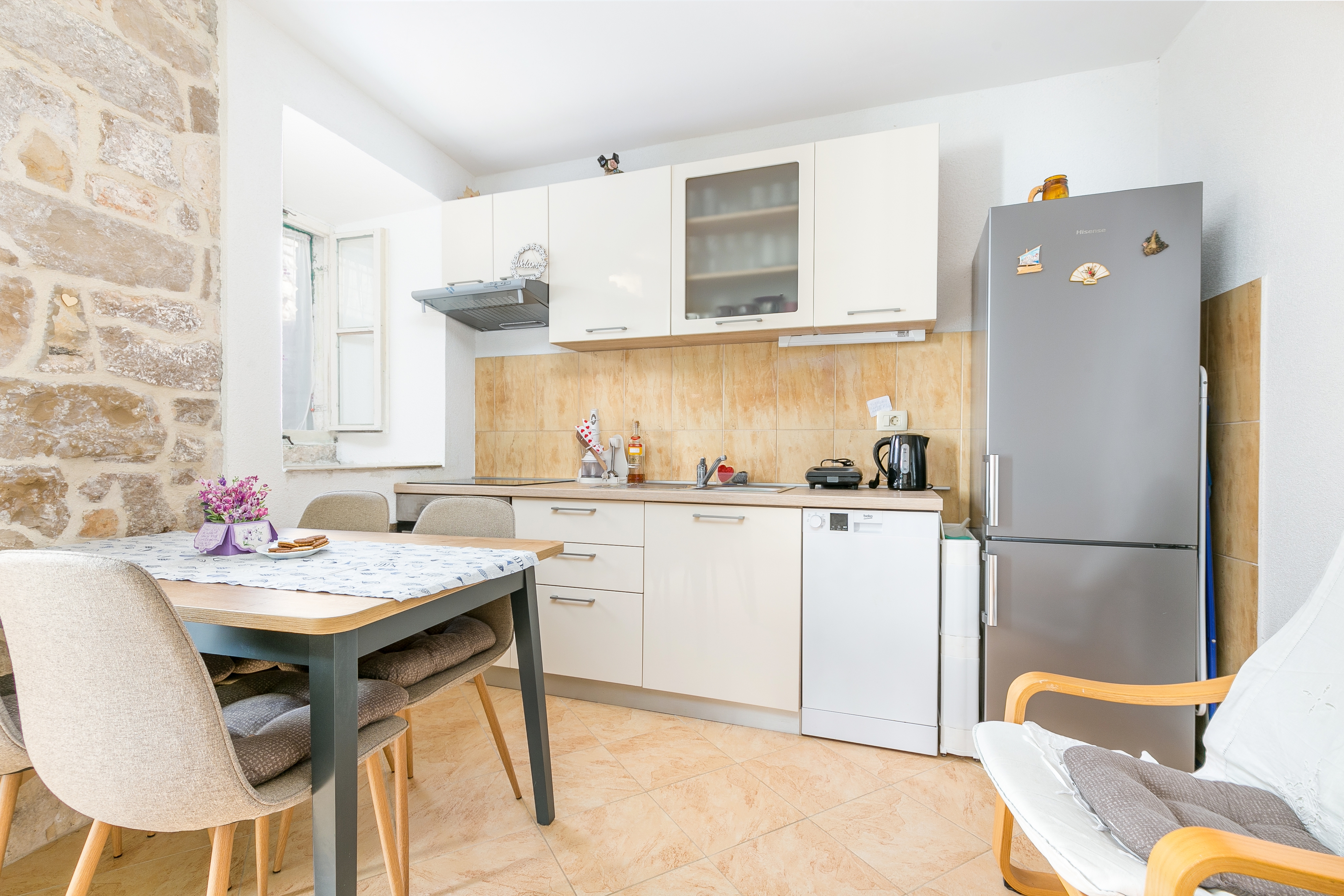 House 23838 in the town of Maslinica, Šolta - Central Dalmatia is 20 m far from the sea. The nearest beach to this accommodation is a concrete slabs beach. No other guests will be present in the house during your holiday. The hosts will not be present in the house during the length of your holiday. The house owner is under no obligation to accept additional persons and pets that were not stated in the reservation request and it is necessary to report them in advance.AMENITIES Infield (Well-kept), WiFi Internet, Hairdryer, Iron LOCATION AND ACCESS Facility is situated near a local road Local road between the property and the beach Number of stairs from the property to the beach: 10 Car access possible: No, Distance to which you can approach with a vehicle: 20 m The facility is situated in relatively quiet surroundings DISTANCES Sea: 20 m Beach: 180 m Center: 7 km Shop: 180 m Pharmacy: 7.3 km ATMBank machine: 70 m Tourist info: 20 m Gas station: 9.5 km