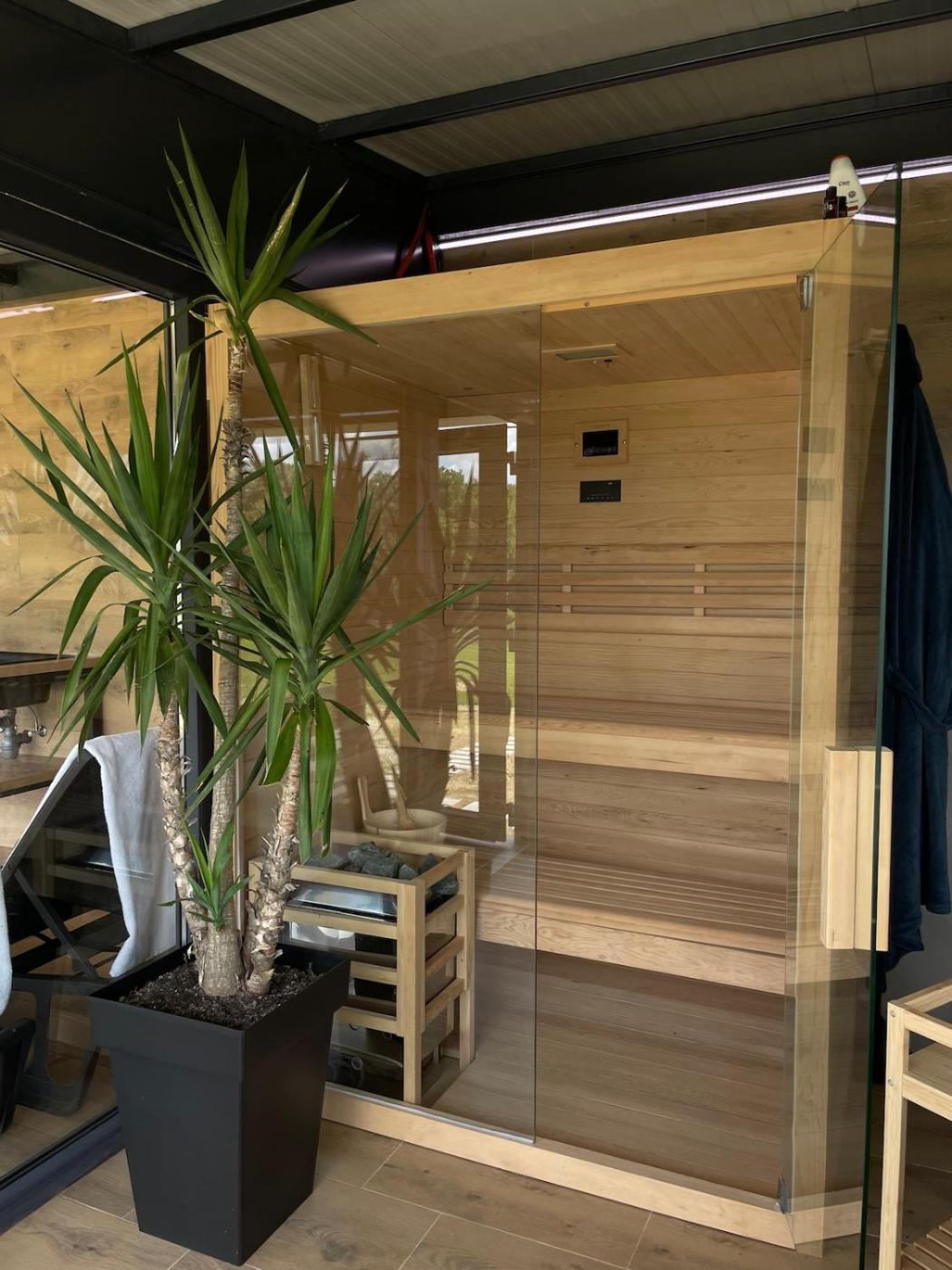 Three-Bedroom House. This holiday homes special features are the hot tub and the sauna. The air-conditioned holiday home features 3 bedrooms, 1 bathroom and a kitchen. The holiday homes kitchen is available for cooking and storing food. Featuring a terrace with garden views, this holiday home also provides a washing machine and a flat-screen TV. The unit offers 3 beds.