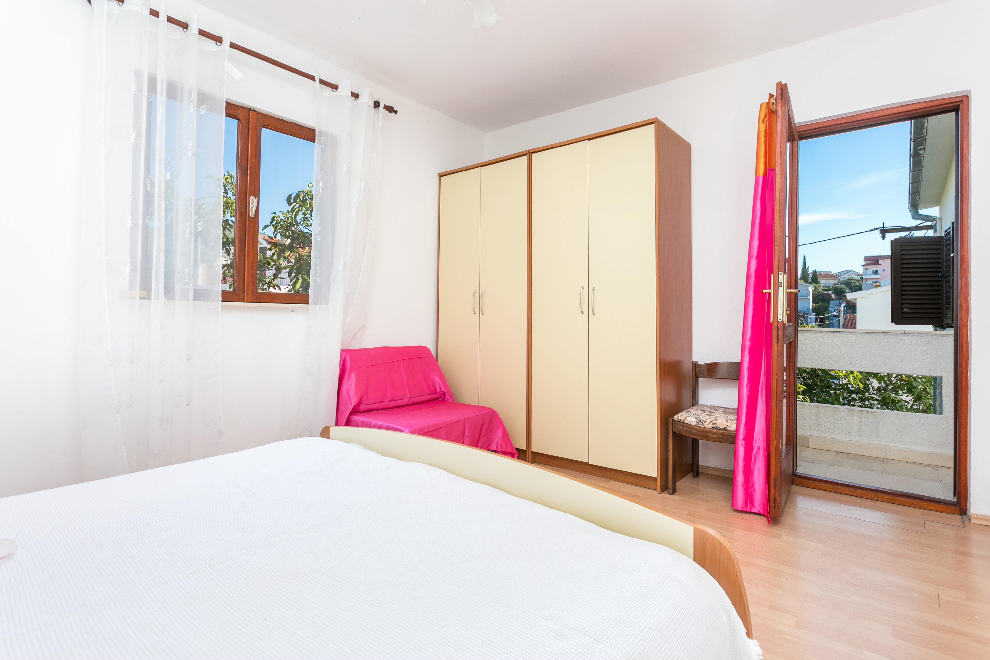 House 1038 in the town of Seget Vranjica, Trogir - Central Dalmatia has accommodation units of type Apartment (3) and is 150 m away from the sea. The nearest beach to this accommodation is a concrete slabs beach. As the house is dividedseveral accommodation units, other guests will most likely be present during your stay. The owners will be present in the house during your stay. The house owner is under no obligation to accept additional persons and pets that were not stated in the reservation request and it is necessary to report them in advance.AMENITIES Courtyard (200m2), Parking lot (Number of parking spaces: 3, Distance from the house: In the courtyard), Barbecue: shared, WiFi Internet, Laundry service, Hairdryer, Iron, Baby cot LOCATION AND ACCESS Number of stairs from the property to the beach: 20 Car access possible: Yes The facility is situated in relatively quiet surroundings The property is surrounded by greenery DISTANCES Sea: 150 m Beach: 150 m Center: 6 km Shop: 180 m Urgent medical care: 5.5 km