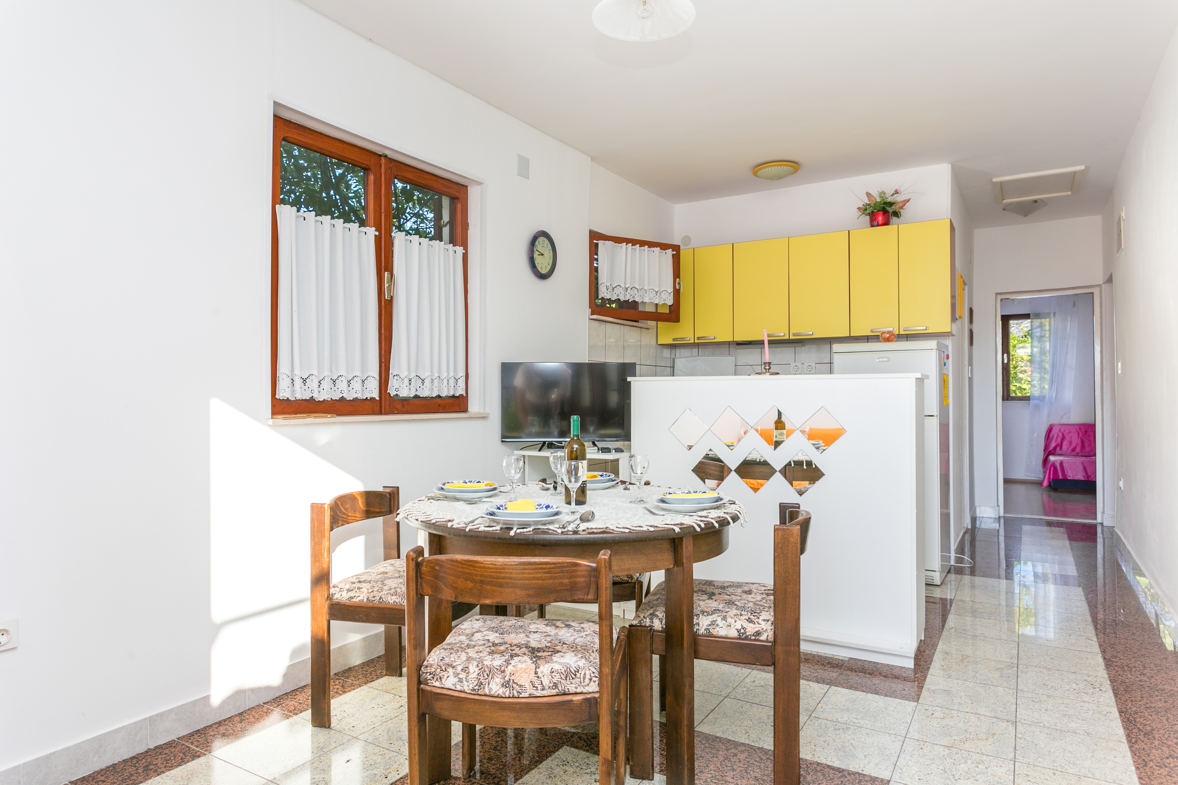 Apartment can accommodate 5 guests. Beds are situated in 2 sleeping rooms, within 48m2. Guests can use a private terrace to enjoy the warm summer evenings. The apartment offers the sea view. Food can be prepared using barbecue which is shared with other guests too. This accommodation unit welcomes pets at an additional charge. INCLUDED IN THE PRICE: tourist tax, final cleaning, air-conditioning, parking, internet, baby cot, iron, hairdryer. OPTIONAL ADDITIONAL COSTS: laundry (€8.00 washing), pets (€10.00 per night). The availability of additional services for your chosen dates of stay, as well as their prices (if none are listed) must be checked ahead of time. Any additional services not shown in the price calculation are payable directly to the property owner and only if used by the visitor.