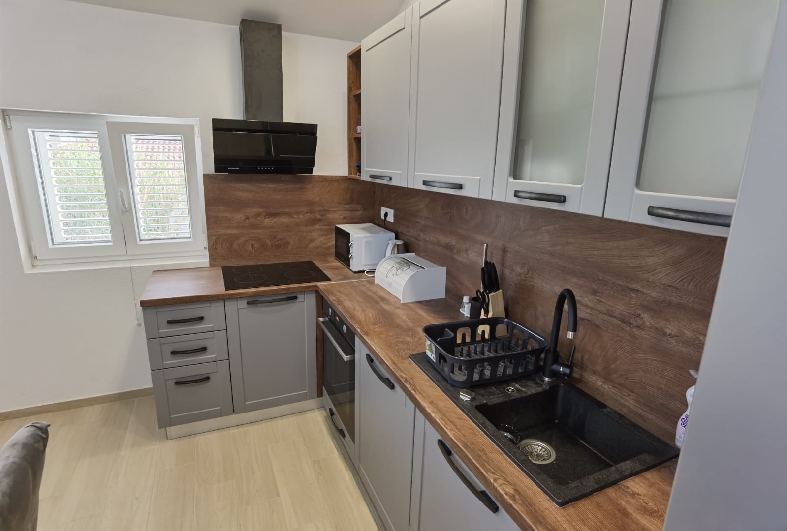 Accommodation units of type Apartment (1) can be found in house 19580 in the town of Ugljan, Ugljan - North Dalmatia. The house is 10 m away from the sea and is categorized as "Facilities near a beach". The nearest beach to this accommodation is a pebble beach. The house contains no other apartments, meaning you will be the only guests. The owners will reside in the house during your stay. The house owner is under no obligation to accept additional persons and pets that were not stated in the reservation request and it is necessary to report them in advance.AMENITIES Courtyard (200m2, Area suitable for children, Sitting area), Parking lot (Number of parking spaces: 2, Distance from the house: In the courtyard), WiFi Internet, Hairdryer, Sunchairs, Baby cot LOCATION AND ACCESS The facility is not located near the road There is no road between the property and the beach The property is located by the beach Car access possible: Yes, Macadam road: 25 m The facility is situated in relatively quiet surroundings The property is surrounded by greenery DISTANCES Sea: 10 m Beach: 10 m Center: 22 km Shop: 1.3 km Exchange office: 1.7 km ATMBank machine: 1.5 km Tourist info: 1.3 km Ferry port: 12 km Gas station: 12 km Farmers market: 1.3 km
