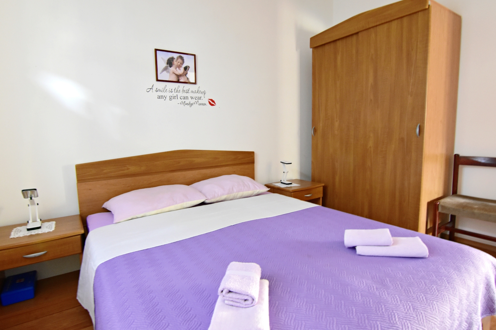 Apartment can accommodate 4 guests. Beds are situated in 1 sleeping rooms, but also in the living room, within 41m2. Guests can use a private terrace to enjoy the warm summer evenings. Food can be prepared using barbecue which is shared with other guests too. This accommodation unit welcomes pets at an additional charge. INCLUDED IN THE PRICE: tourist tax, final cleaning, air-conditioning, parking, internet. OPTIONAL ADDITIONAL COSTS: pets (€10.00 per night). The availability of additional services for your chosen dates of stay, as well as their prices (if none are listed) must be checked ahead of time. Any additional services not shown in the price calculation are payable directly to the property owner and only if used by the visitor.