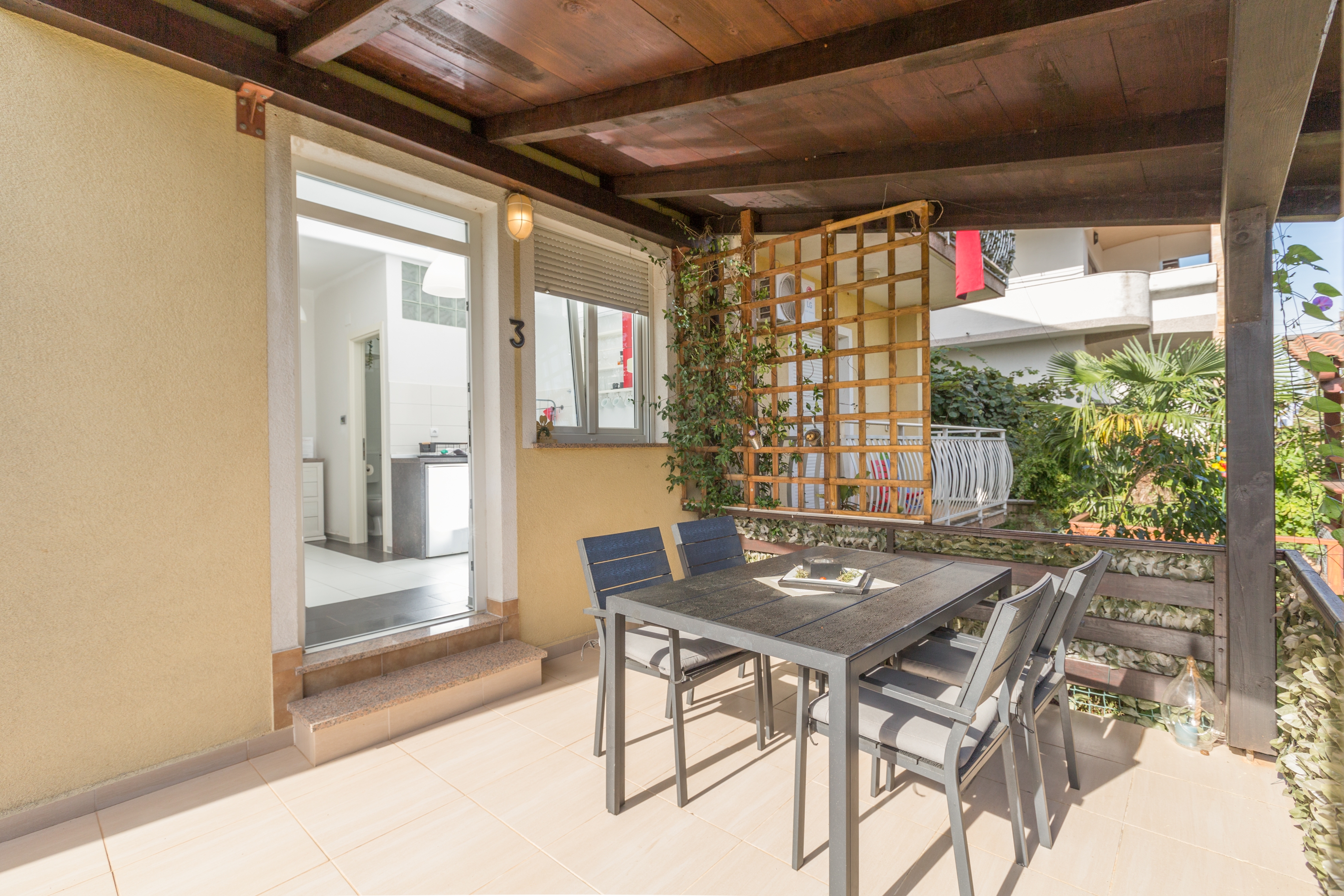 Apartment can accommodate 3 guests. Beds are situated in 1 sleeping rooms, within 26m2. Guests can use a private terrace to enjoy the warm summer evenings. Food can be prepared using barbecue which is shared with other guests too. This accommodation unit welcomes pets at an additional charge. INCLUDED IN THE PRICE: tourist tax, final cleaning, air-conditioning, parking, internet, baby cot, iron, ironing board, hairdryer. OBLIGATORY ADDITIONAL COSTS: short stay fee (surcharge depending on a number of booked nights: 30% - 1, 20% - 2, 10% - 3). OPTIONAL ADDITIONAL COSTS: pets (€5.00 per night). The availability of additional services for your chosen dates of stay, as well as their prices (if none are listed) must be checked ahead of time. Any additional services not shown in the price calculation are payable directly to the property owner and only if used by the visitor. Discounts to the base price: free day 14=13 (for reservations of 14 or more days you get one free day for the stay until 31122026).