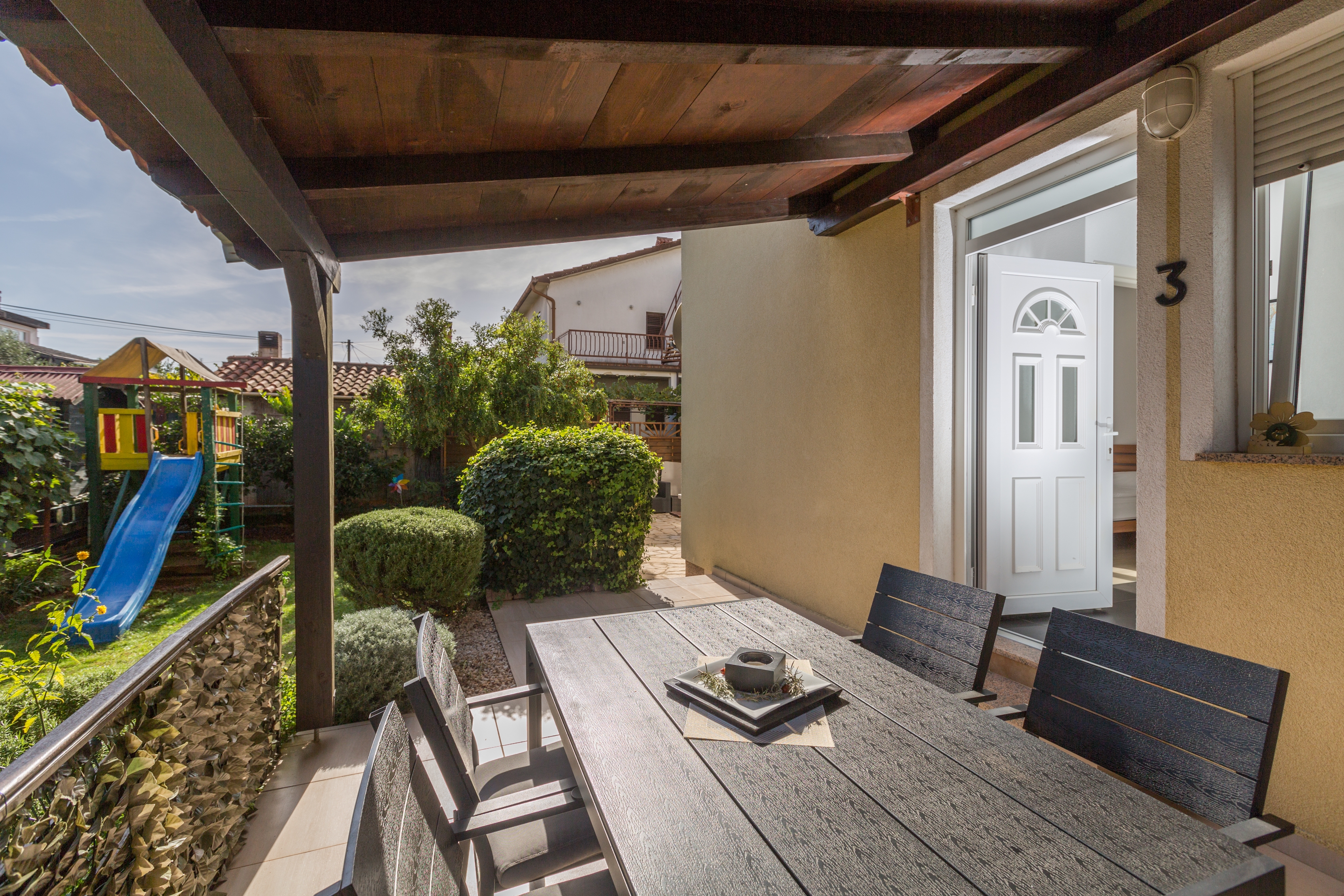 Accommodation units of type Apartment (2) can be found in house 2523 in the town of Umag, Umag - Istria. The house is 1 km away from the sea and is categorized as "For families with kids". The nearest beach to this accommodation is a sand beach. Other guests will may be found in the other apartments which are a part of this house. Your hosts will not be staying in the house during your holiday. The house owner is under no obligation to accept additional persons and pets that were not stated in the reservation request and it is necessary to report them in advance.AMENITIES Infield (Well-kept), Courtyard (100m2, Area suitable for children, Sitting area), Parking lot (Number of parking spaces: 5, Distance from the house: In the courtyard), Barbecue: shared, WiFi Internet, Hairdryer, Iron, Ironing board, Baby cot LOCATION AND ACCESS Facility is situated near a local road Main road between the property and the beach Car access possible: Yes The facility is not located in quiet surroundings The facility is partly surrounded by vegetation DISTANCES Sea: 1 km Beach: 1.8 km Center: 1.3 km Shop: 400 m Urgent medical care: 1.2 km Pharmacy: 850 m Exchange office: 1.15 km ATMBank machine: 950 m Tourist info: 1.05 km
