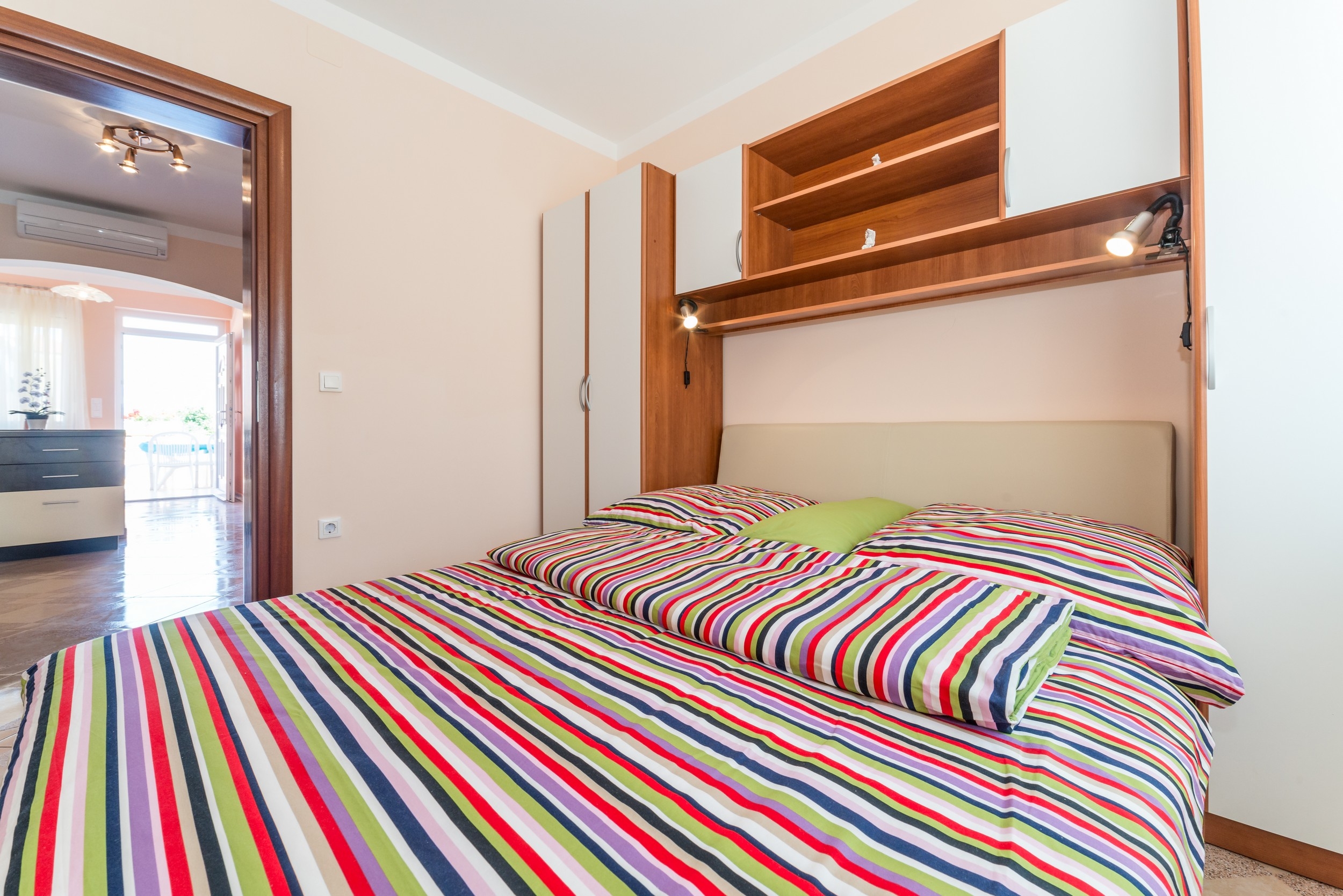 Apartment can accommodate 5 guests. Beds are situated in 2 sleeping rooms, but also in the living room, within 52m2. Guests can use a private terrace to enjoy the warm summer evenings. Food can be prepared using barbecue which is shared with other guests too. INCLUDED IN THE PRICE: tourist tax, final cleaning, air-conditioning, parking, internet, hairdryer. OBLIGATORY ADDITIONAL COSTS: short stay fee (surcharge depending on a number of booked nights: 30% - 1, 20% - 2, 10% - 3). The availability of additional services for your chosen dates of stay, as well as their prices (if none are listed) must be checked ahead of time. Any additional services not shown in the price calculation are payable directly to the property owner and only if used by the visitor.