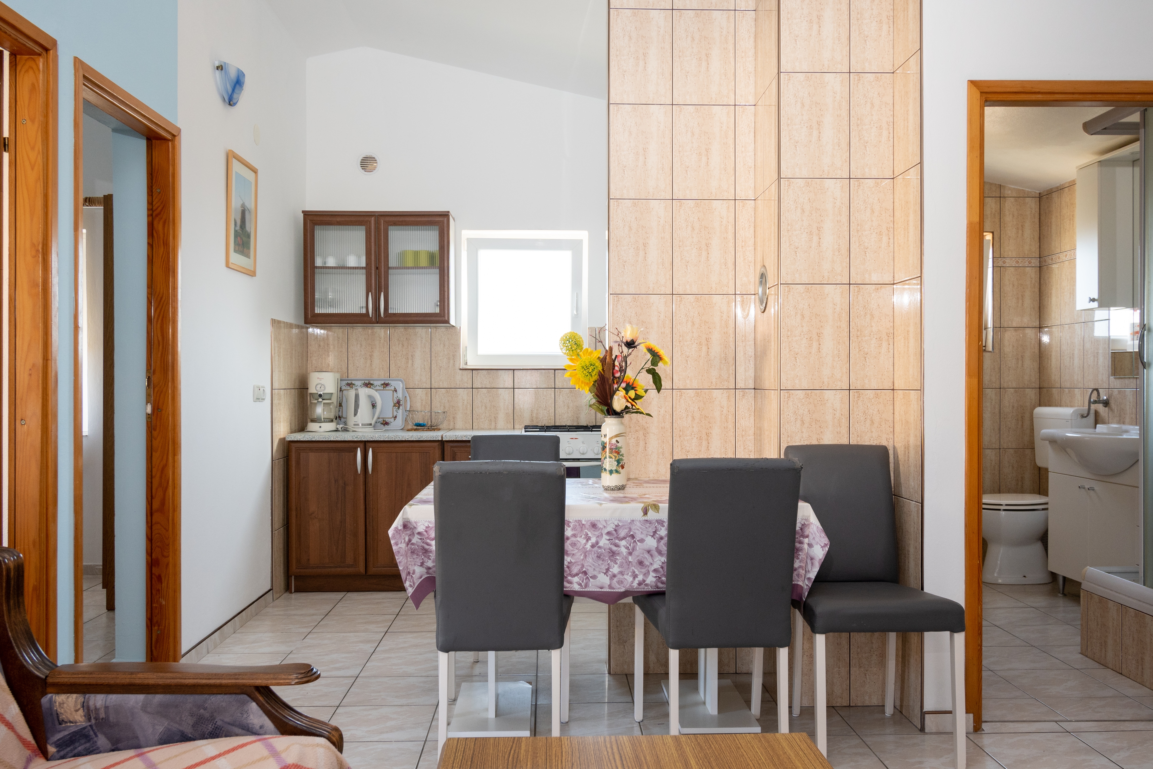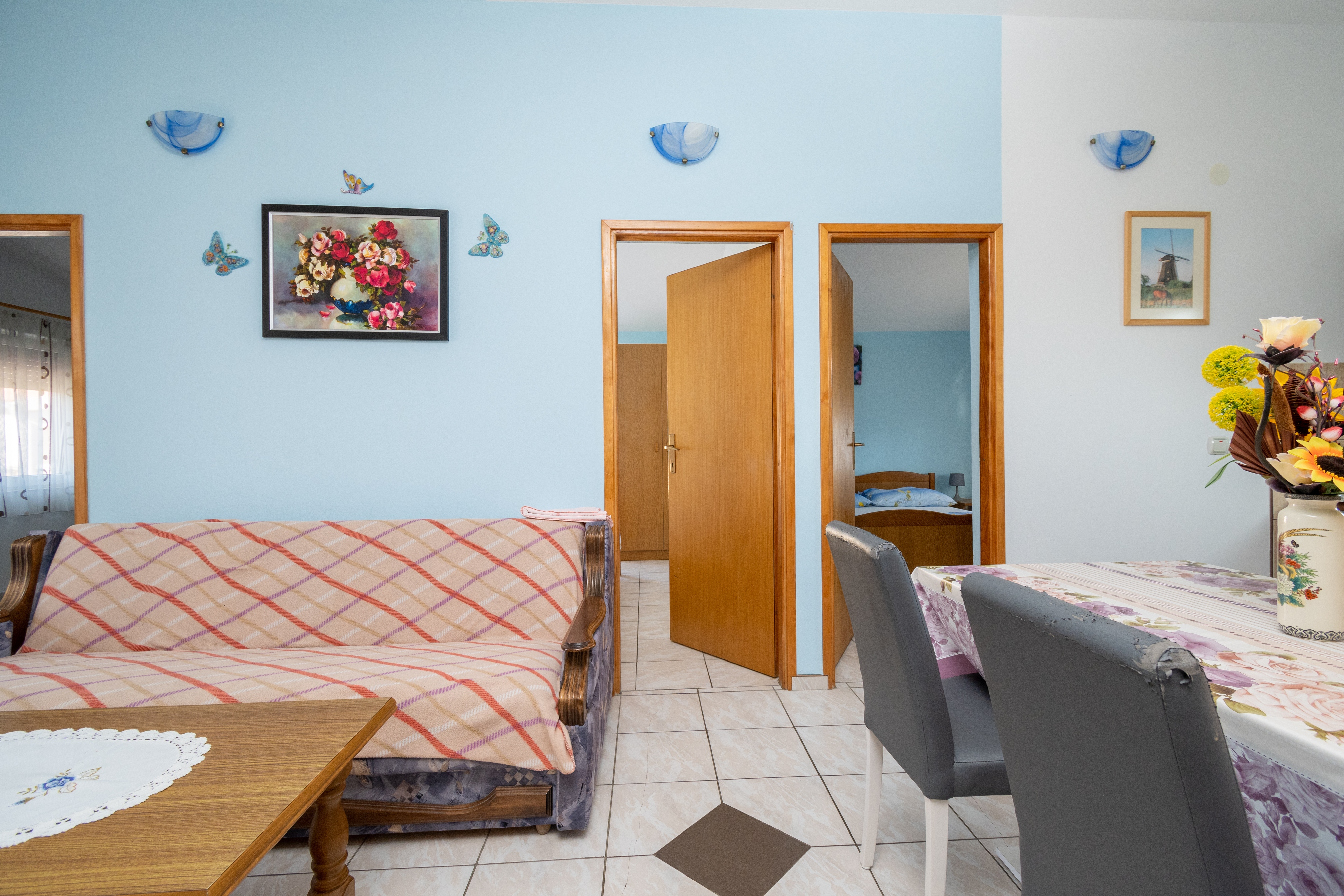 Apartment can accommodate 5 guests. Beds are situated in 3 sleeping rooms, within 50m2. Guests can use a private terrace to enjoy the warm summer evenings. The apartment offers the sea view. Food can be prepared using barbecue which is shared with other guests too. INCLUDED IN THE PRICE: tourist tax, final cleaning, parking, internet. OPTIONAL ADDITIONAL COSTS: air-conditioning (€10.00 per night). The availability of additional services for your chosen dates of stay, as well as their prices (if none are listed) must be checked ahead of time. Any additional services not shown in the price calculation are payable directly to the property owner and only if used by the visitor.