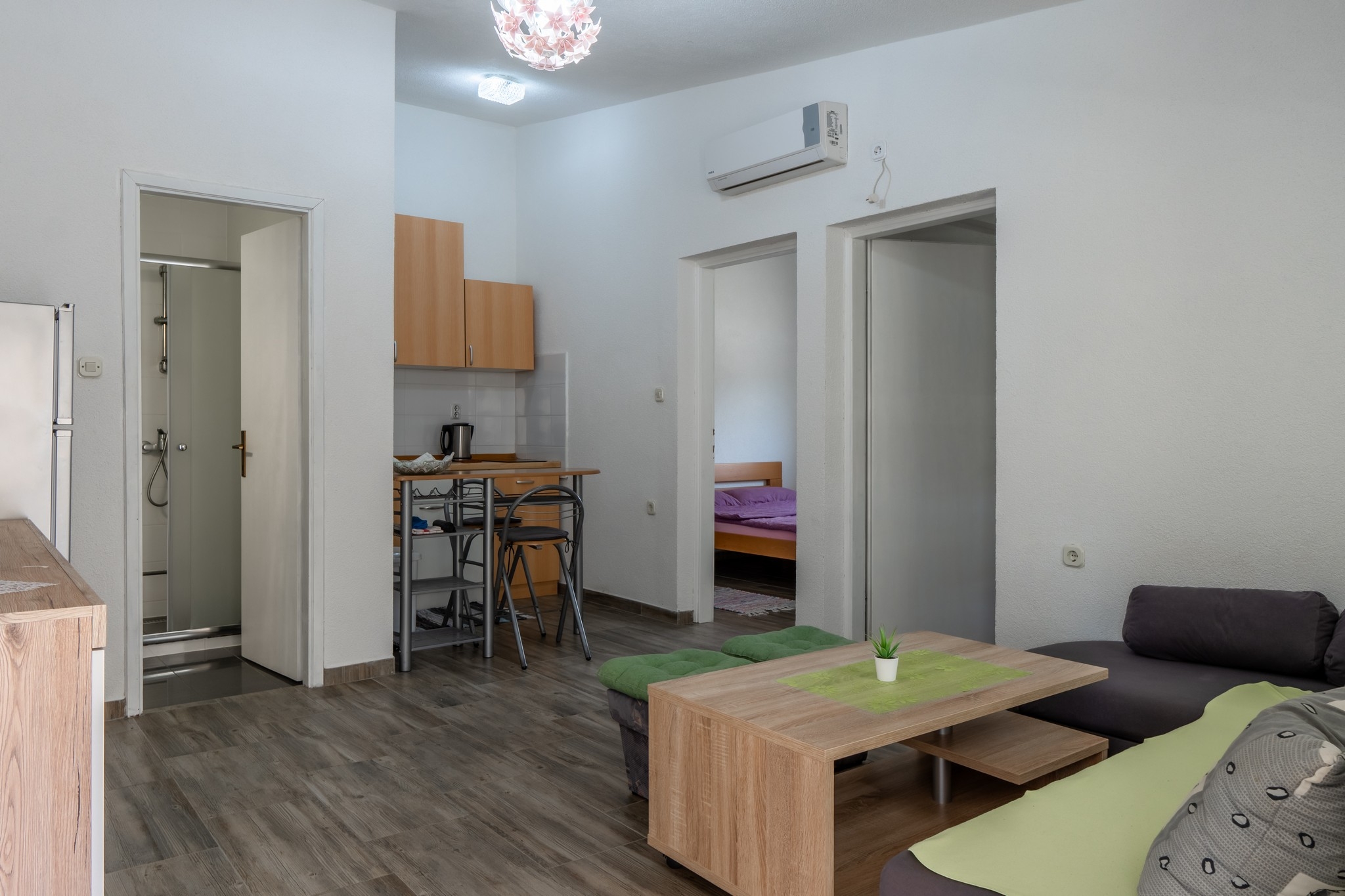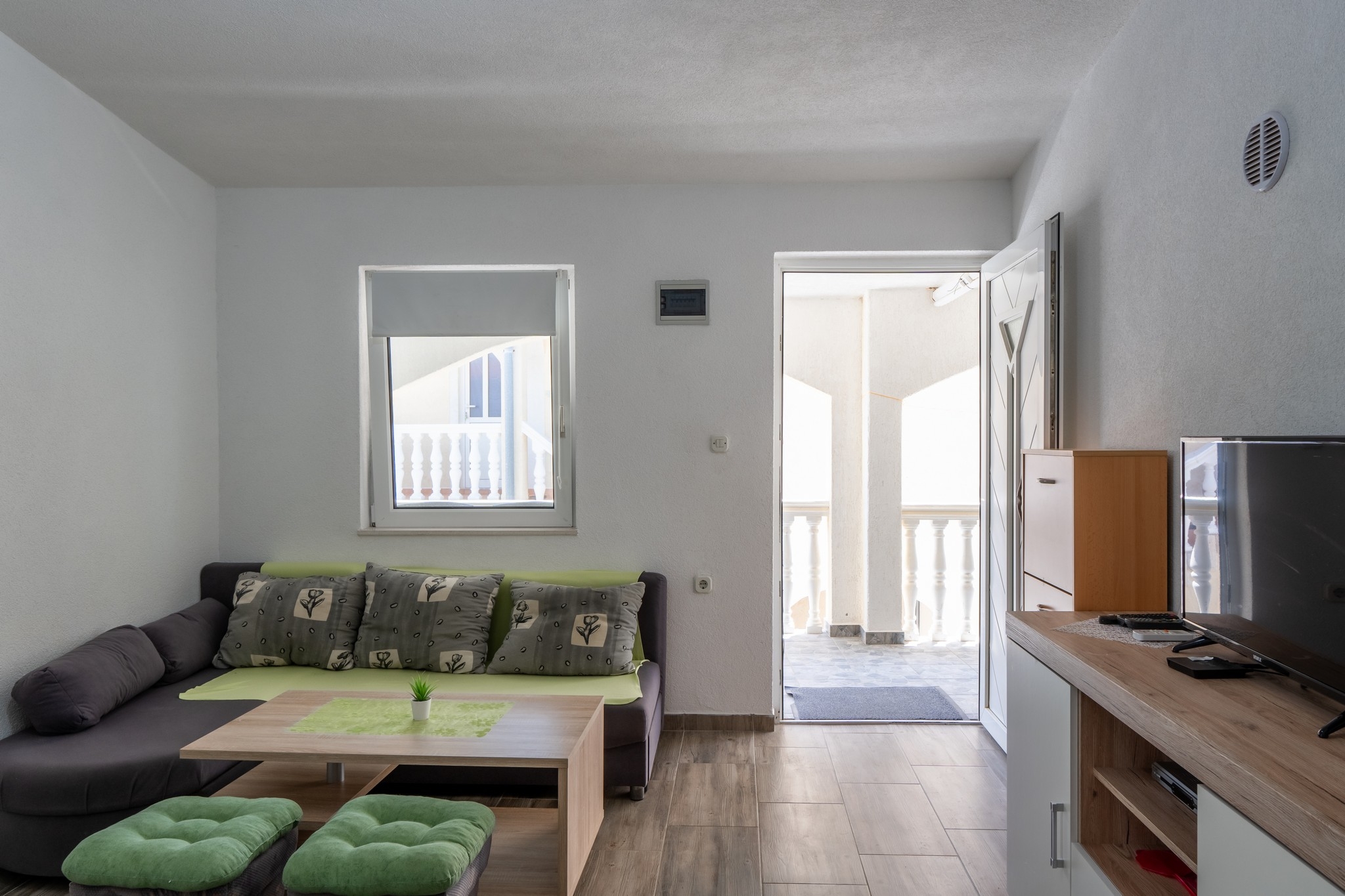 Apartment can accommodate 4 guests. Beds are situated in 2 sleeping rooms, within 41m2. Guests can use a private balcony to enjoy the warm summer evenings. Food can be prepared using barbecue which is shared with other guests too. INCLUDED IN THE PRICE: tourist tax, final cleaning, air-conditioning, parking, internet, hairdryer. The availability of additional services for your chosen dates of stay, as well as their prices (if none are listed) must be checked ahead of time. Any additional services not shown in the price calculation are payable directly to the property owner and only if used by the visitor.