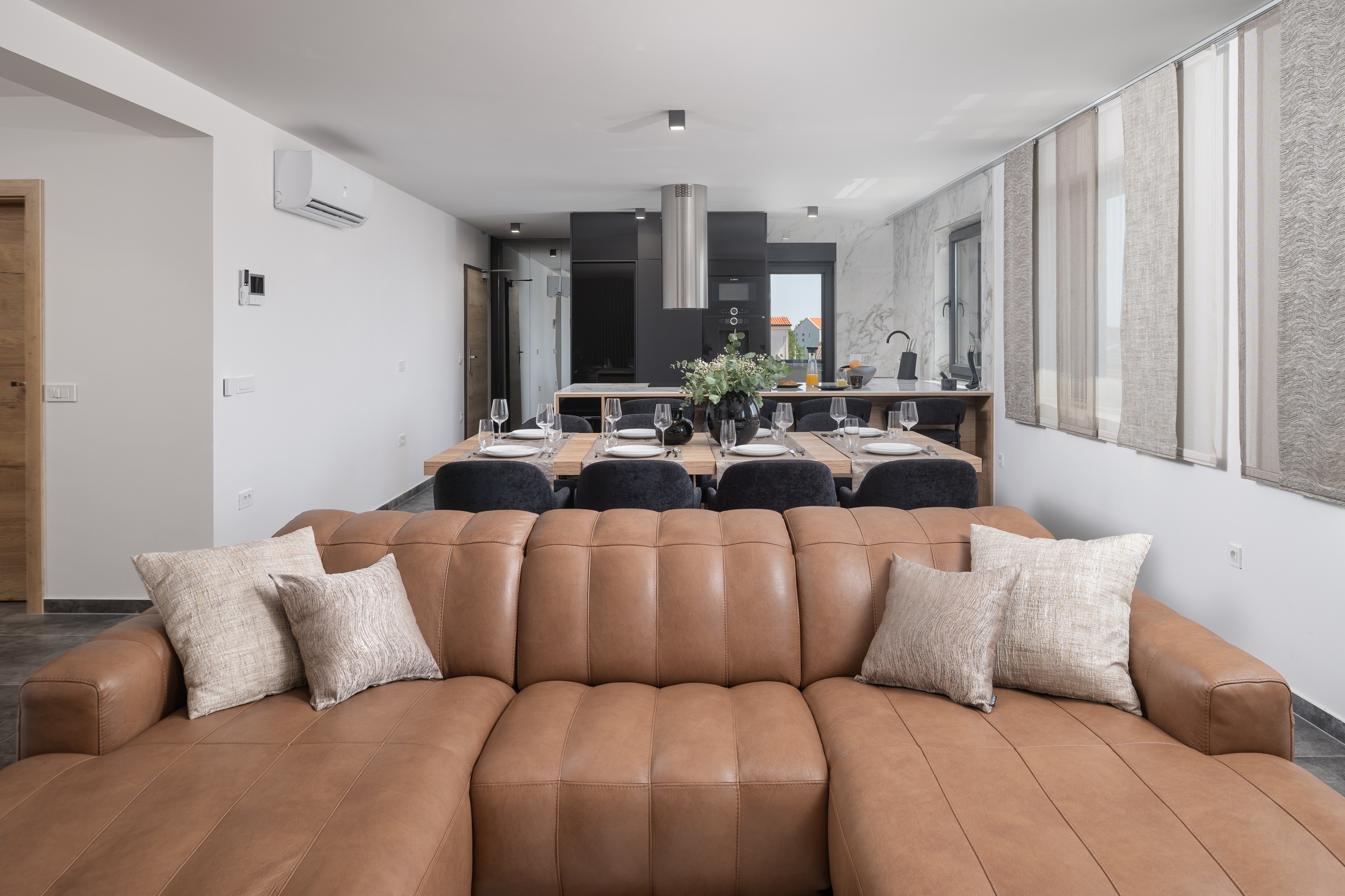 Apartment can accommodate 5 guests. Beds are situated in 2 sleeping rooms, but also in the living room, within 86m2. Guests can use a private terrace to enjoy the warm summer evenings. The apartment offers the sea view. Food can be prepared using barbecue which is shared with other guests too. For the booked accommodation unit the deposit is paid directly to the owner upon check-in (deposit amount is displayed on the website) INCLUDED IN THE PRICE: tourist tax, final cleaning, air-conditioning, parking, internet, baby cot, iron, ironing board, hairdryer, portable barbecue. OBLIGATORY ADDITIONAL COSTS: deposit (€300.00 one-time payment), short stay fee (surcharge depending on a number of booked nights: 30% - 1, 20% - 2, 10% - 3). The availability of additional services for your chosen dates of stay, as well as their prices (if none are listed) must be checked ahead of time. Any additional services not shown in the price calculation are payable directly to the property owner and only if used by the visitor.