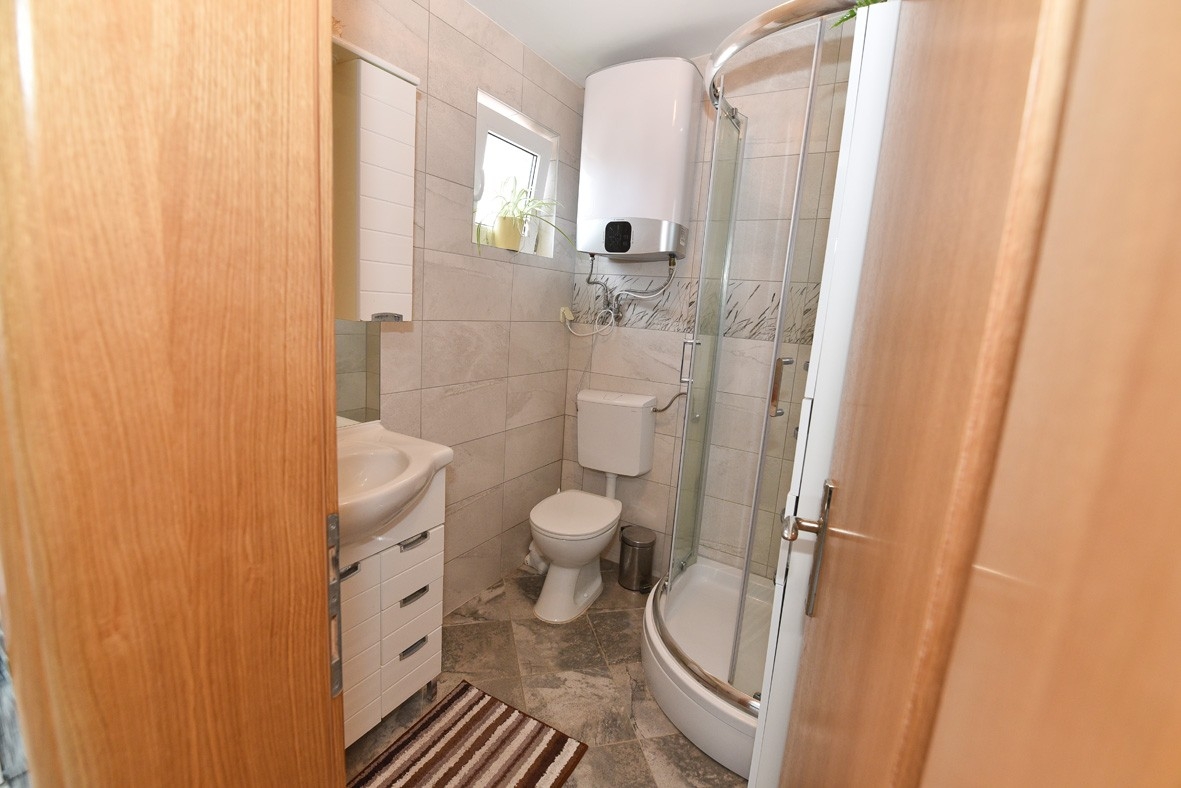 Apartment can accommodate 5 guests. Beds are situated in 2 sleeping rooms, but also in the living room, within 65m2. Guests can use a private terrace to enjoy the warm summer evenings. The apartment offers the sea view. Food can be prepared using barbecue which is shared with other guests too. INCLUDED IN THE PRICE: tourist tax, final cleaning, air-conditioning, parking, internet, baby cot, hairdryer, sunshade, sunchairs. OBLIGATORY ADDITIONAL COSTS: short stay fee (surcharge depending on a number of booked nights: 30% - 1, 20% - 2, 10% - 3). The availability of additional services for your chosen dates of stay, as well as their prices (if none are listed) must be checked ahead of time. Any additional services not shown in the price calculation are payable directly to the property owner and only if used by the visitor.
