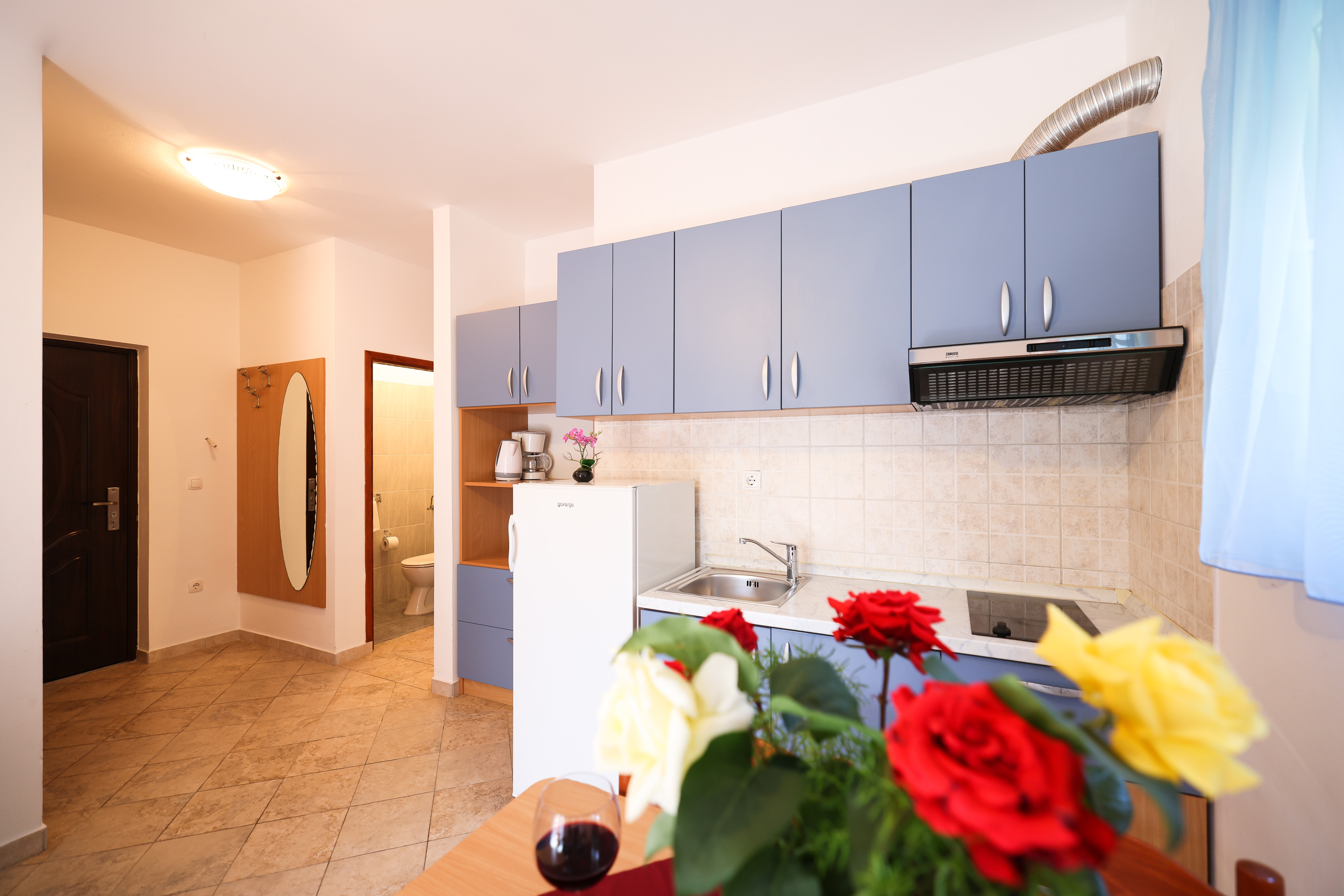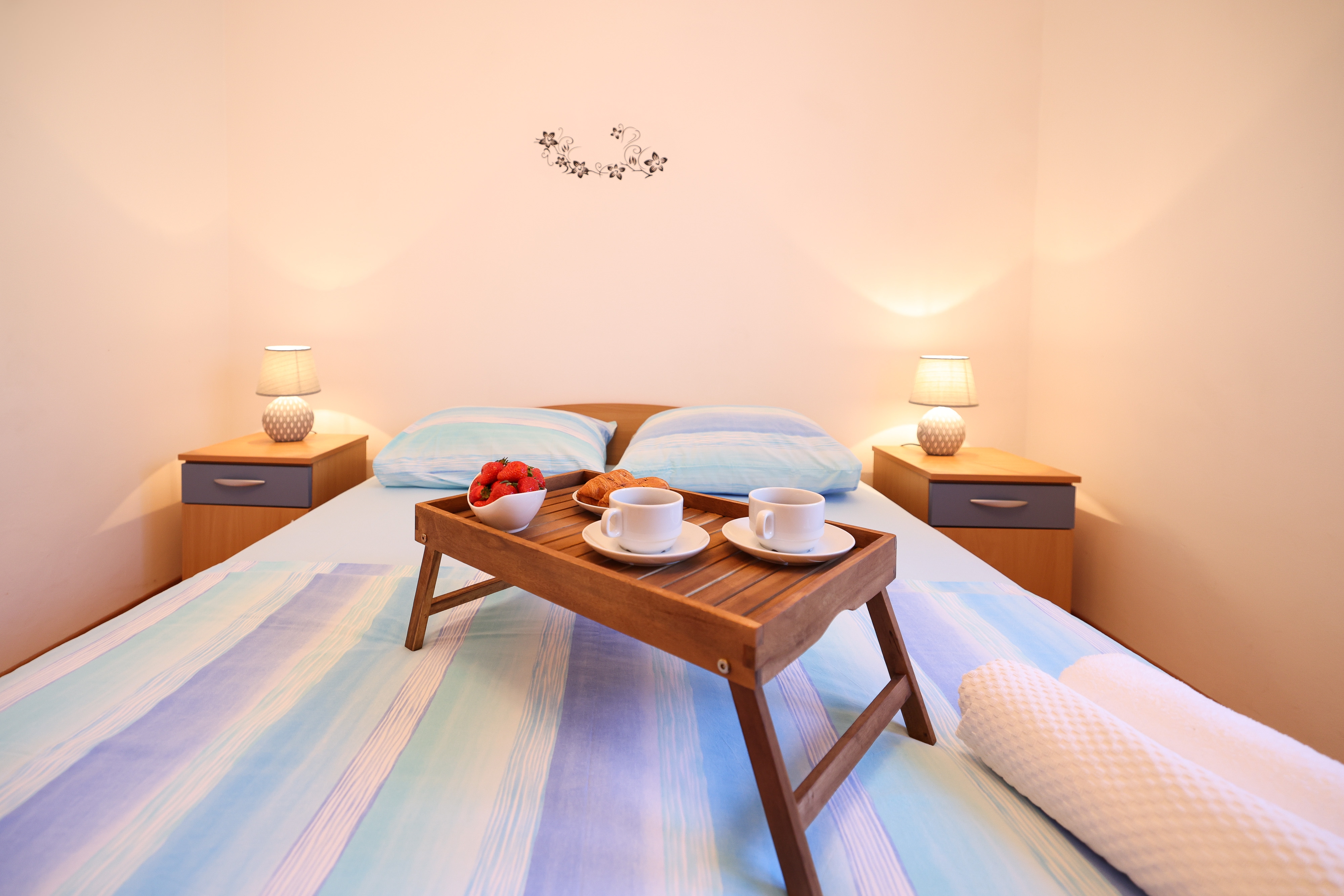 Apartment can accommodate 6 guests. Beds are situated in 2 sleeping rooms, but also in the dining room, within 48m2. Guests can use a private balcony to enjoy the warm summer evenings. Food can be prepared using barbecue which is shared with other guests too. This accommodation unit welcomes pets at an additional charge. INCLUDED IN THE PRICE: tourist tax, final cleaning, air-conditioning, parking, internet, iron, ironing board. OPTIONAL ADDITIONAL COSTS: pets (€10.00 per night). The availability of additional services for your chosen dates of stay, as well as their prices (if none are listed) must be checked ahead of time. Any additional services not shown in the price calculation are payable directly to the property owner and only if used by the visitor.
