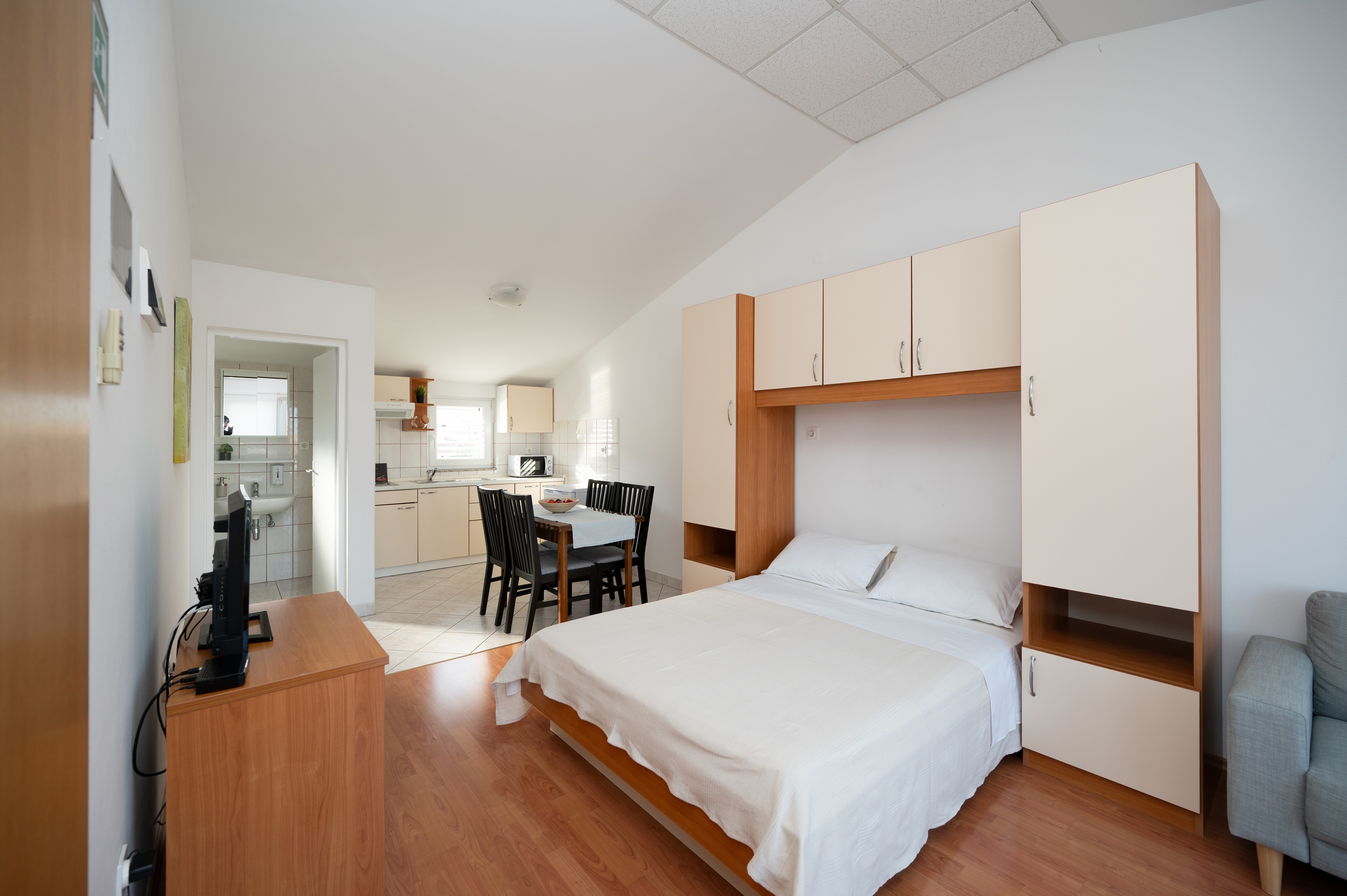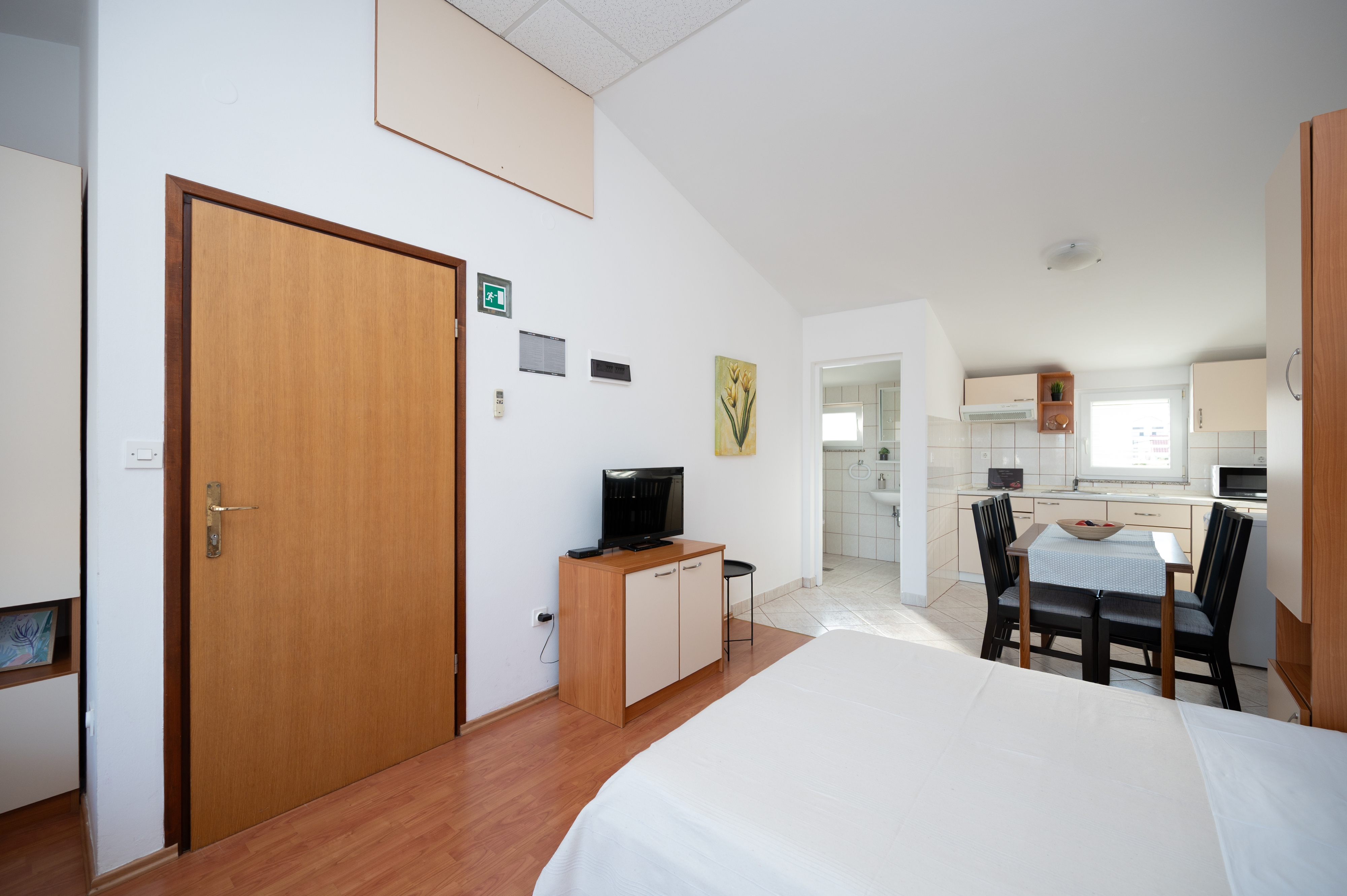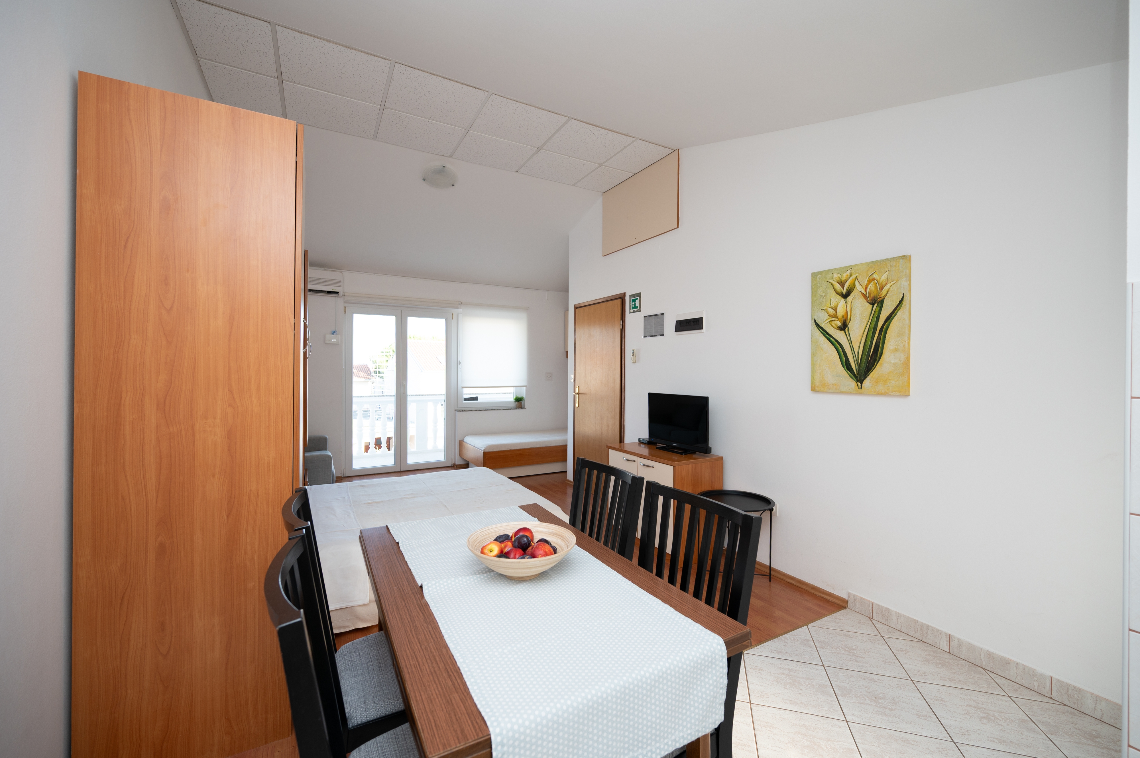 Studio flat can accommodate 3 guests. Beds are situated in 1 sleeping rooms, within 25m2. Guests can use a private balcony to enjoy the warm summer evenings. The studio offers the sea view. Food can be prepared using barbecue which is shared with other guests too. This accommodation unit welcomes pets at an additional charge. INCLUDED IN THE PRICE: tourist tax, final cleaning, parking, internet, hairdryer. OBLIGATORY ADDITIONAL COSTS: short stay fee (surcharge depending on a number of booked nights: 30% - 1, 20% - 2, 10% - 3). OPTIONAL ADDITIONAL COSTS: air-conditioning (€0.62 per hour), boat (€250.00 per night), pets (€5.00 per night). The availability of additional services for your chosen dates of stay, as well as their prices (if none are listed) must be checked ahead of time. Any additional services not shown in the price calculation are payable directly to the property owner and only if used by the visitor.
