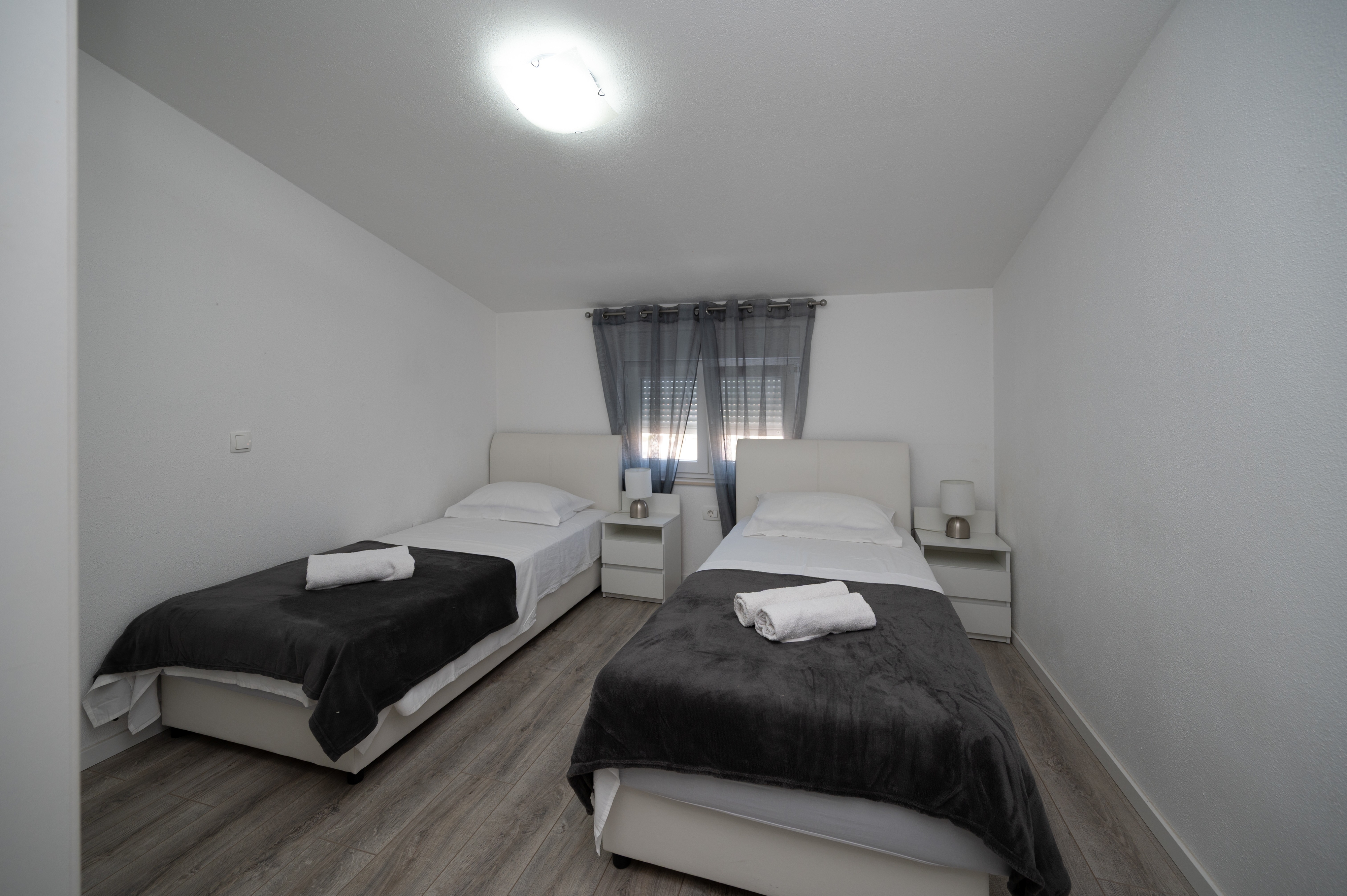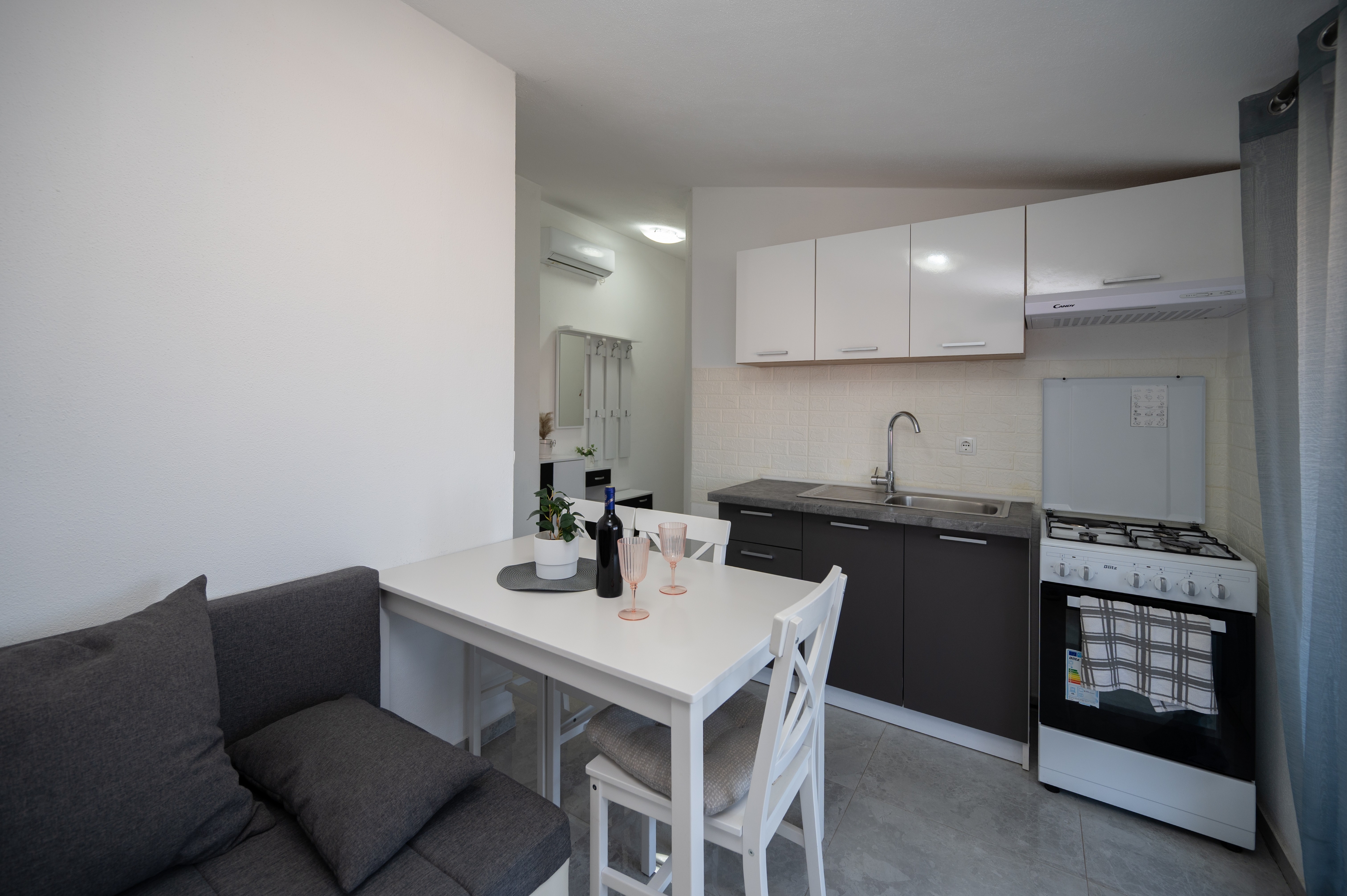 Apartment can accommodate 4 guests. Beds are situated in 1 sleeping rooms, but also in the living room, within 39m2. Guests can use a private balcony to enjoy the warm summer evenings. Food can be prepared using barbecue which is shared with other guests too. INCLUDED IN THE PRICE: tourist tax, final cleaning, air-conditioning, parking, internet, iron, ironing board, hairdryer. OBLIGATORY ADDITIONAL COSTS: short stay fee (surcharge depending on a number of booked nights: 30% - 1, 20% - 2, 10% - 3). The availability of additional services for your chosen dates of stay, as well as their prices (if none are listed) must be checked ahead of time. Any additional services not shown in the price calculation are payable directly to the property owner and only if used by the visitor. Discounts to the base price: free day 14=13 (for reservations of 14 or more days you get one free day for the stay until 31122026).