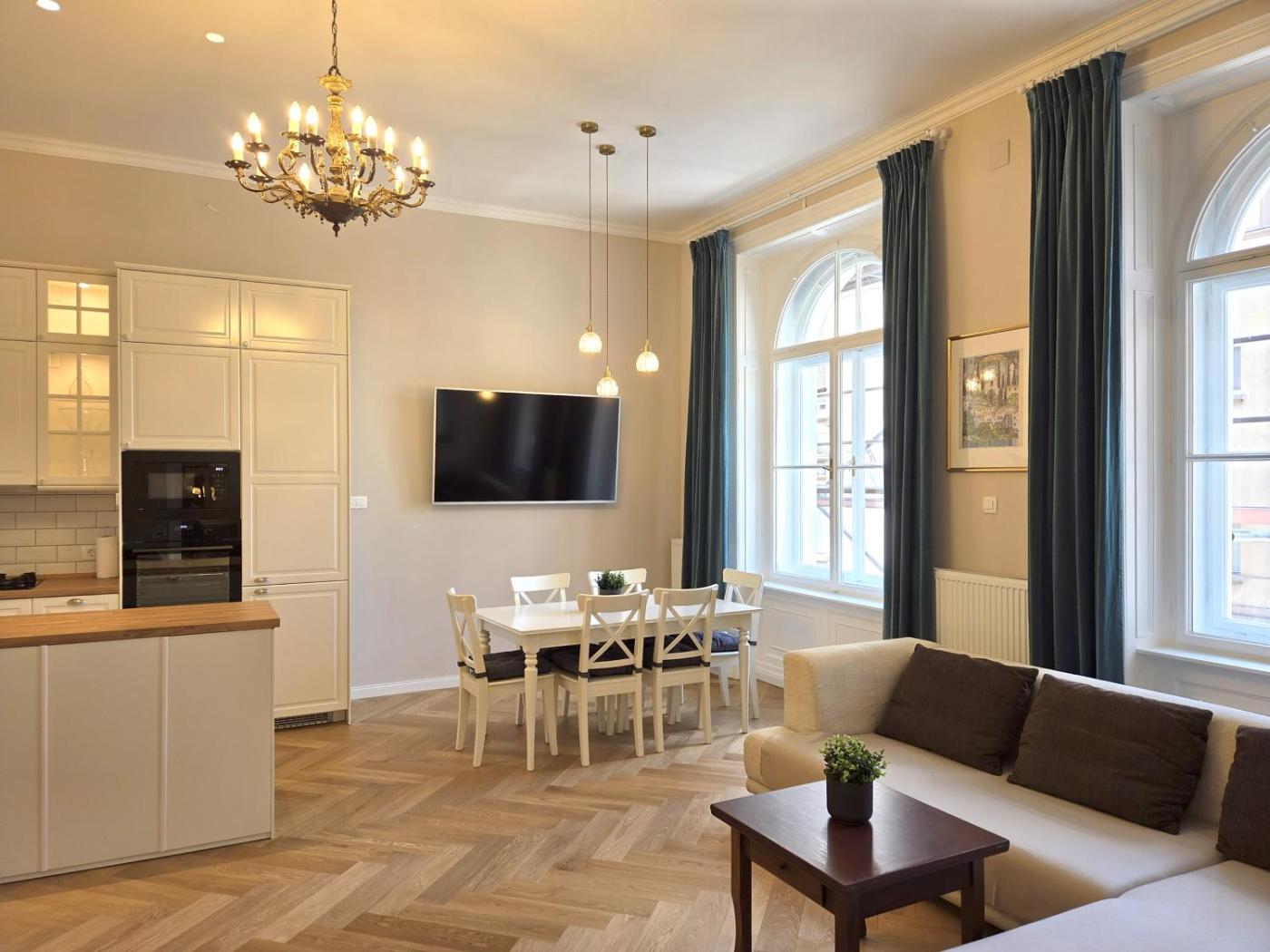 Two-Bedroom Apartment. In the well-equipped kitchen, guests will find a stovetop, a refrigerator, a dishwasher and kitchenware. The spacious air-conditioned apartment features a flat-screen TV with streaming services, a washing machine, a private entrance, a tea and coffee maker as well as city views. The unit has 3 beds.