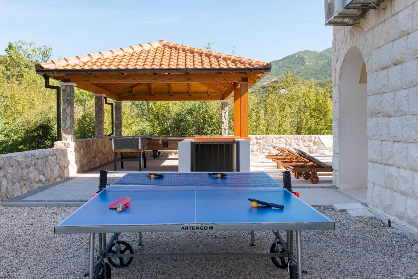 Featuring air-conditioned accommodation with a private pool, pool view and a patio, Villa Salvia is located in Zagvozd. This property offers access to a balcony, a pool table, free private parking and free WiFi. The villa has an outdoor fireplace and a sauna.