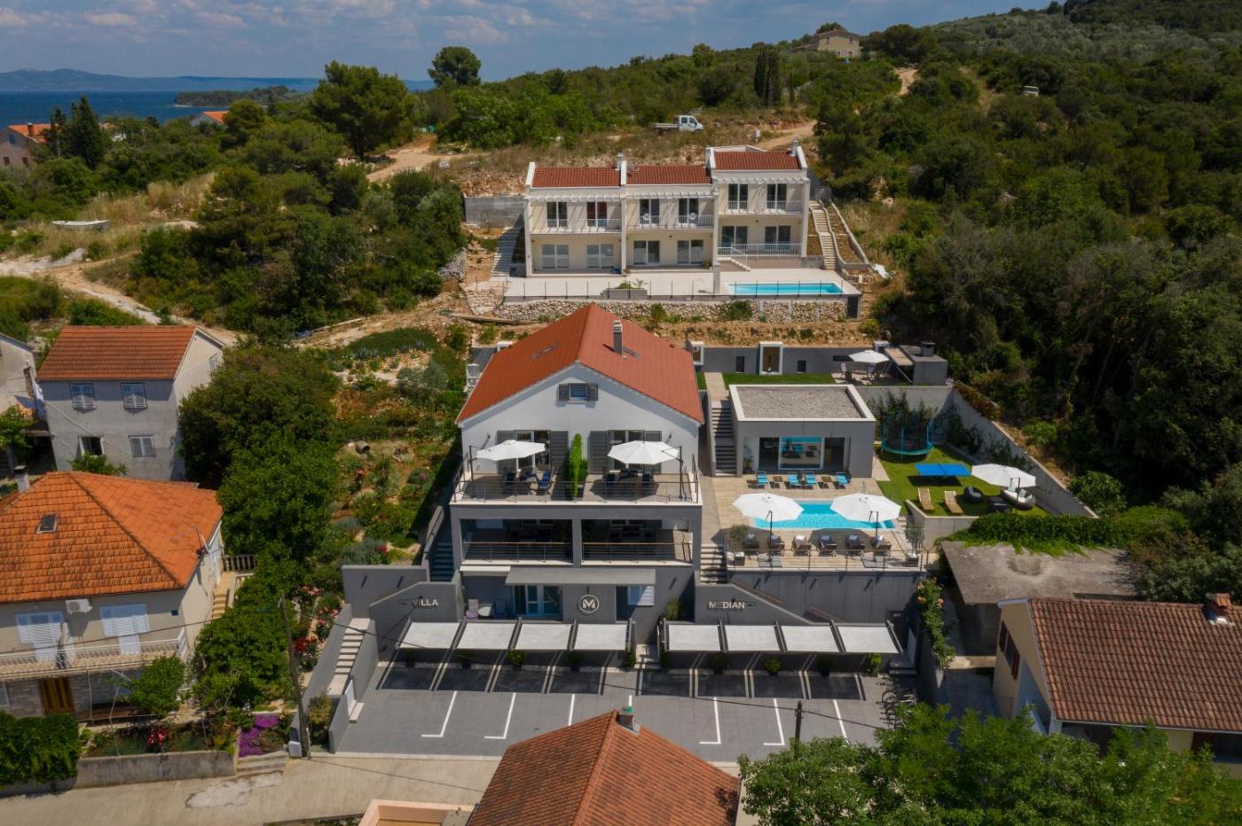 Villa Median features air-conditioned accommodation in Žman. This beachfront property offers access to a balcony, table tennis, free private parking and free WiFi. The apartment has a pool with a view with a fence, as well as a sauna and a shared kitchen.